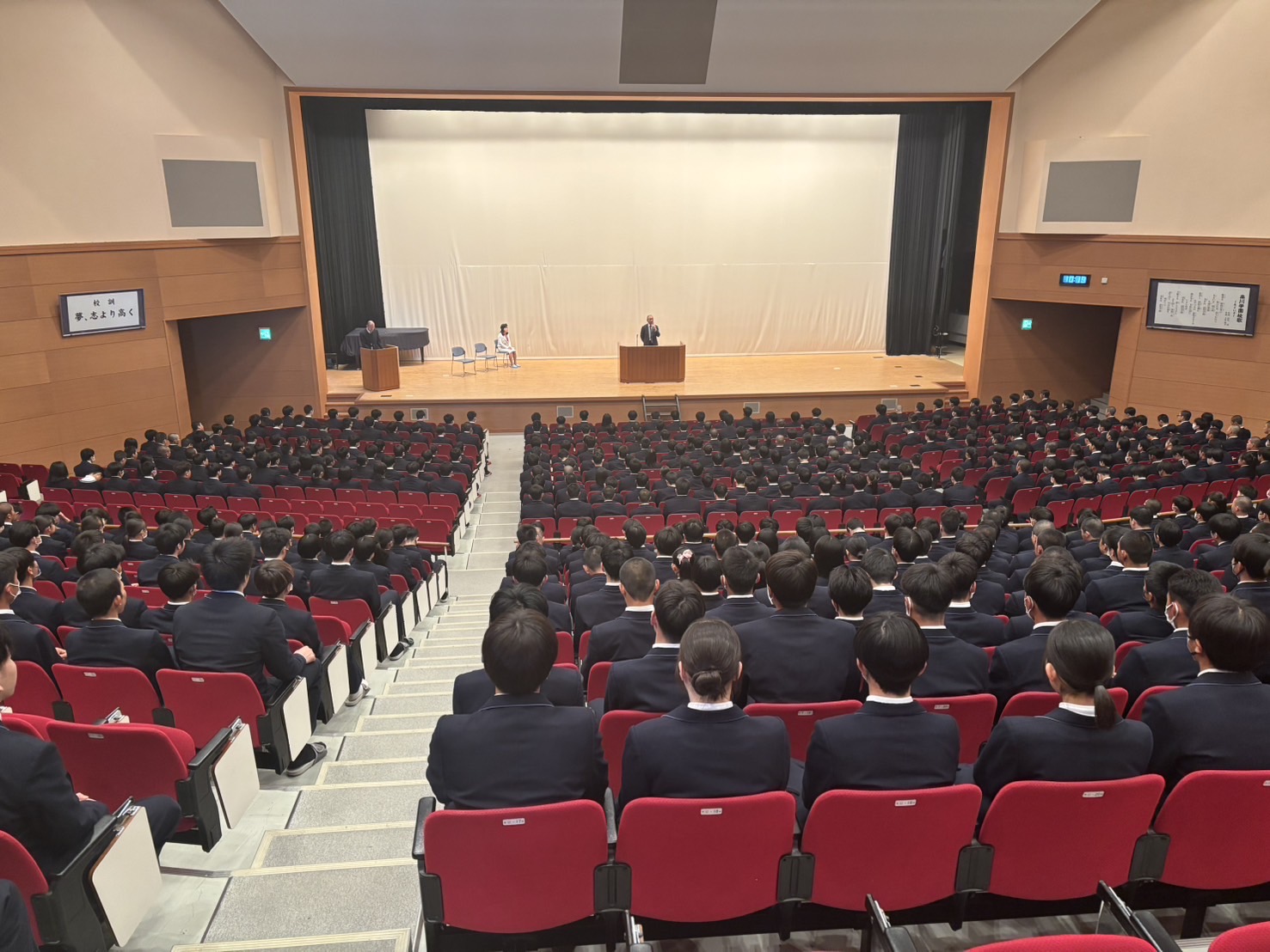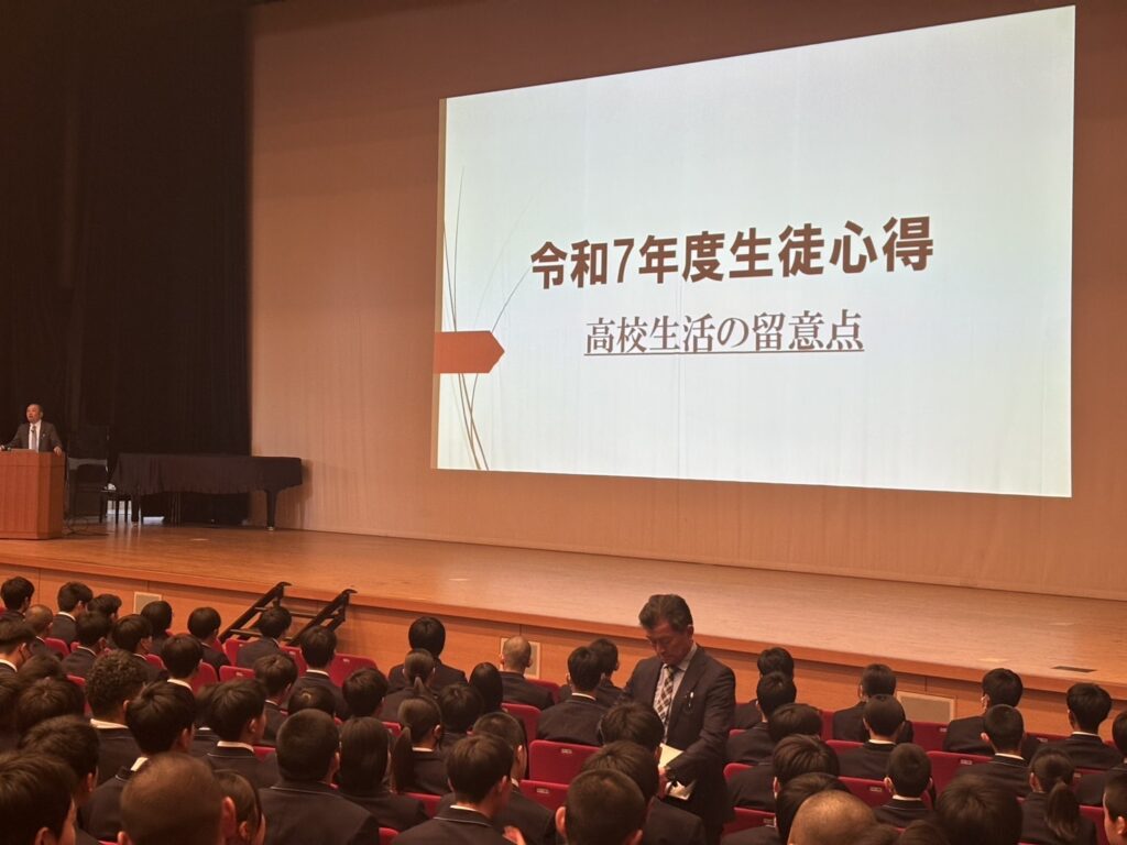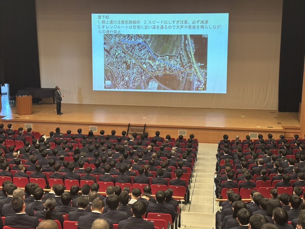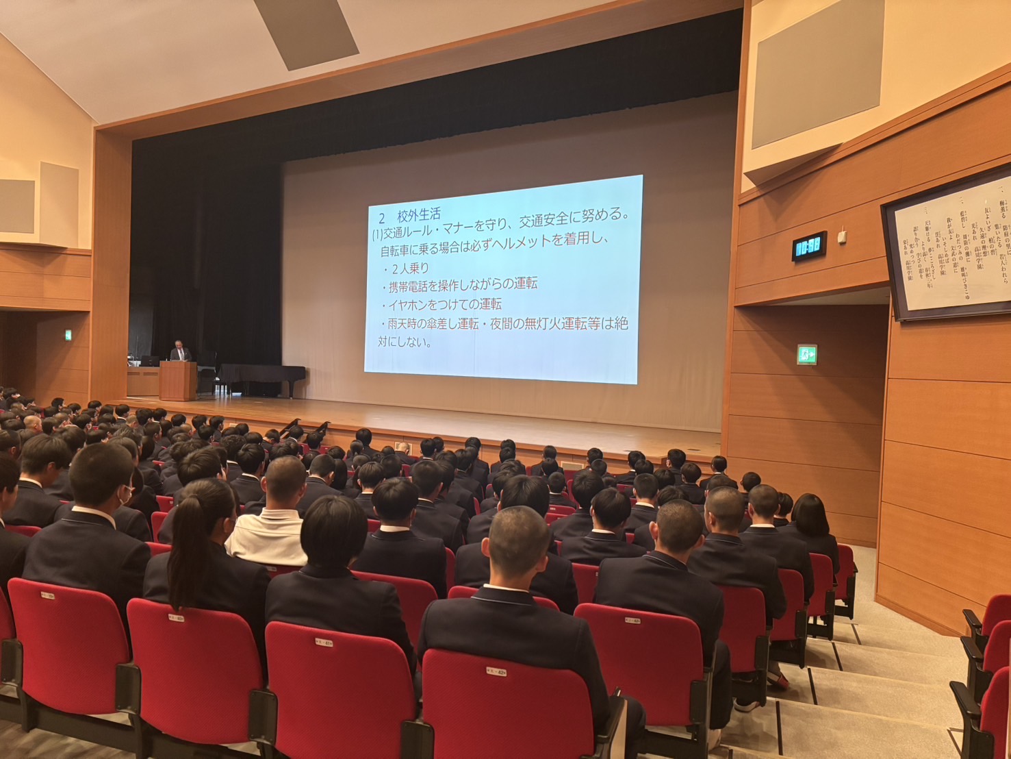 集会では、生徒指導部長から学校生活や登下校のマナーについて話がありました。
