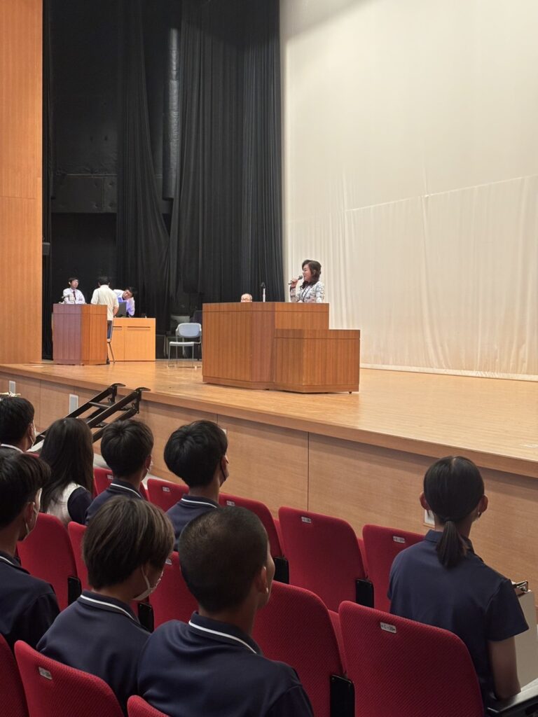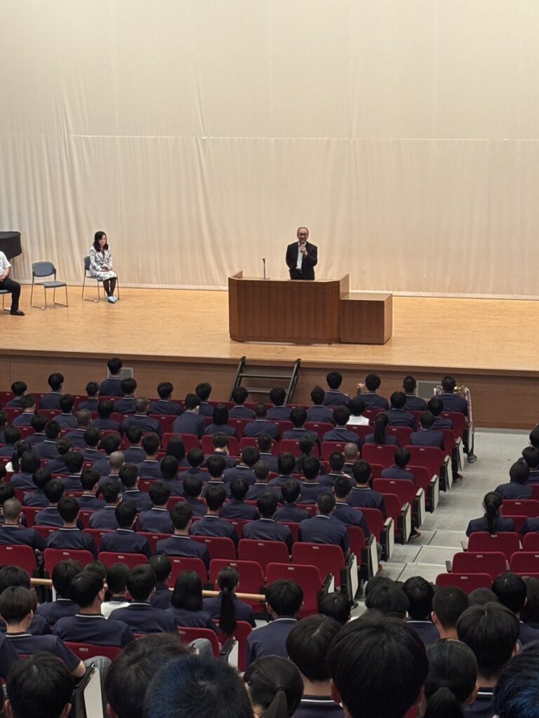 1学期が始まって2か月が経ちましたが、1年生は仲間ができましたでしょうか。仲間と勉強を頑張ってほしいと思います。部活動をしている生徒が多いと思いますので、時間を有効に使わないといけません。授業の時に集中してしっかり聴いて理解度を深めることで、部活動にも集中できると思います。勉強することで教養が身に付きます。社会に出た時に間違った判断をしないために、今教養を身に付けることが重要になります。部活だけでなく、勉強を頑張ってほしいと思います。高校男子サッカー部が取り組んでいる挨拶運動、素晴らしいですね。気持ちのよい挨拶は、人に与える印象がとてもよくなります。そして、相手も気分がよくなります。いつも当たり前に気持ちの良い挨拶ができている高川学園の生徒はすごいと思います。「夢、志より高く」目標設定は少し高めに、夢に向かって頑張っていってください。若い人たちは伸びしろはいくらでもあります。人間関係、特に仲間を大切にしてほしいと思います。試合に勝つためには、一人では勝てません。試合に出ていない人も分析をしたりと、仲間と協力して試合に臨んでいるはずです。人間は、一人では生きていけません。人に助けてもらって生きています。周囲の人への感謝の気持ちを忘れないようにしてください。私も毎週徳島から通っていますが、運転をしてくれる人、同行してくれる人がいて通うことができています。人生は助け合いです。いい仲間を作ることが重要だと思います。インターハイ予選が始まります。暑さに負けずに頑張ってください。