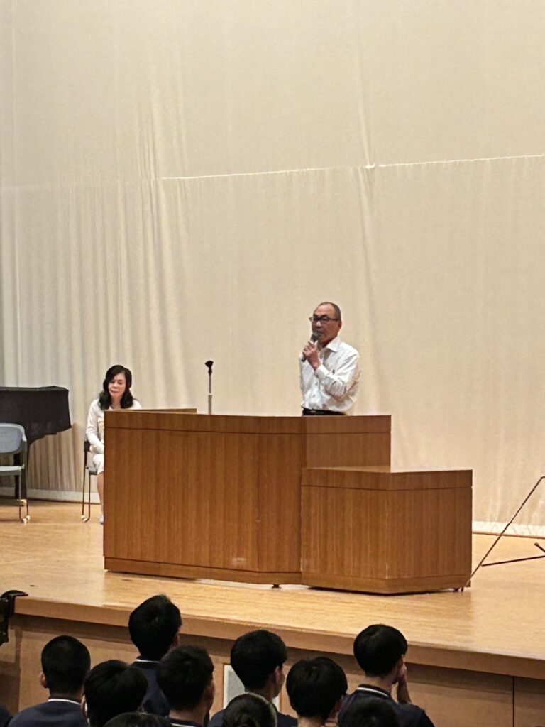 昨夜から今朝にかけて食堂の清掃をしました。床、窓、空調の換気口などの清掃でしたが、掃除の前後には寮生が椅子や机の移動をしてくれました。ありがとうございました。食堂は色々な人が使う場所ですが、特に寮生がメインで使っています。この機会にきれいに使ってほしいと思います。毎食後、食堂の方はテーブルを消毒し、掃除をしてくれています。当たり前だと思わず使ってください。先日、理事長と食堂で食事をし終えて席を立った時、生徒から声をかけられました。「僕を覚えていますか。」と言われて、最初は分からなかったけれどだんだん思い出しました。入学前に、親子で夜間個別相談会に来てくれた生徒でした。その生徒は「あの時の校長先生の言葉に背中を押されて高川学園に入学しました。」と言ってくれました。他の高校にも受かっている生徒でした。「学校生活は楽しくて、他の学校ではなく高川学園に来たことをとても良かったと思う。」と言ってくれてとても嬉しく思いました。人間はあらゆる場面で迷う時があります。決断するとき、背中を押してくれる何かがあるといいなと思います。日頃から人の言葉をしっかりと聴くことの大切さを考えてほしいです。学校生活では、このような集会の場で理事長先生や私、また普段は学級担任や教科担任から色々な話をされると思います。そのなかでも部活動をしている生徒なら、特に部活動の先生の話はヒントが多いのではないでしょうか。人生のヒントになる言葉がきっとあると思います。みんながそれに気づくかどうかが大事です。常に自分事として話を聞いていないと、なかなかいい言葉に出会えません。夜間個別相談会に来てくれた生徒は、きっと私の話の中から、大切な言葉を聞き取ってくれたのだと思います。私にも似たような経験があります。硬式野球部監督の松本先生は部活が終わった後で、日々レポートを書いていて、私は必ず目を通しています。その中に「軸」という言葉が出てきました。その時松本先生は、当然野球に関する内容の中で「軸」と書かれていました。私はその「軸」という言葉が心に残りました。誰でも時として迷うと思います。でも「軸」があれば迷ってもいいのではないでしょうか。「軸」がないと周りに振りまわされてしまいます。人間が生きていくために大切なのは「軸」だと思います。高校3年間はとても大事な時期であり、今後の人生が決まると言っていい時間です。大いに迷ってもいいと思いますが、大人の話をたくさん聞いて、生きていくためのヒントを見つけてほしいものです。ヒントは、人それぞれ違うと思うし、そう思いながら今後は話を聞いてほしいと思います。