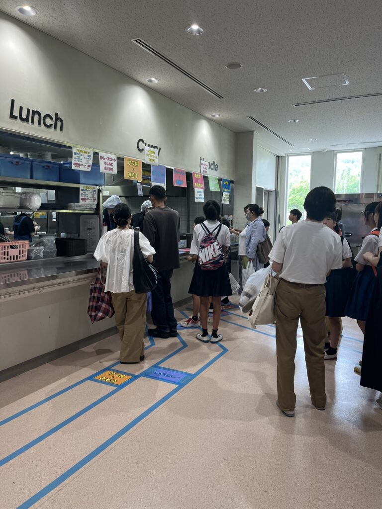 閉会行事の後は、食堂で学食体験でした。学食体験では、定番メニューや新メニューの中から人気商品をセットにして提供させていただきました。食堂「ダイニングブラザーズ」は高川グループ直営なので、生徒の希望を聞きながら定期的にメニューの入れ替えをしています。今回は全部で6種類から選んでいただきましたが、特に新メニューのチャーハンと唐揚げのセットが人気でした。