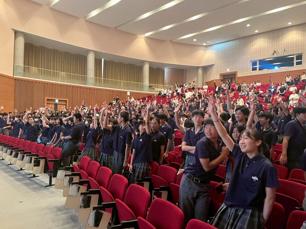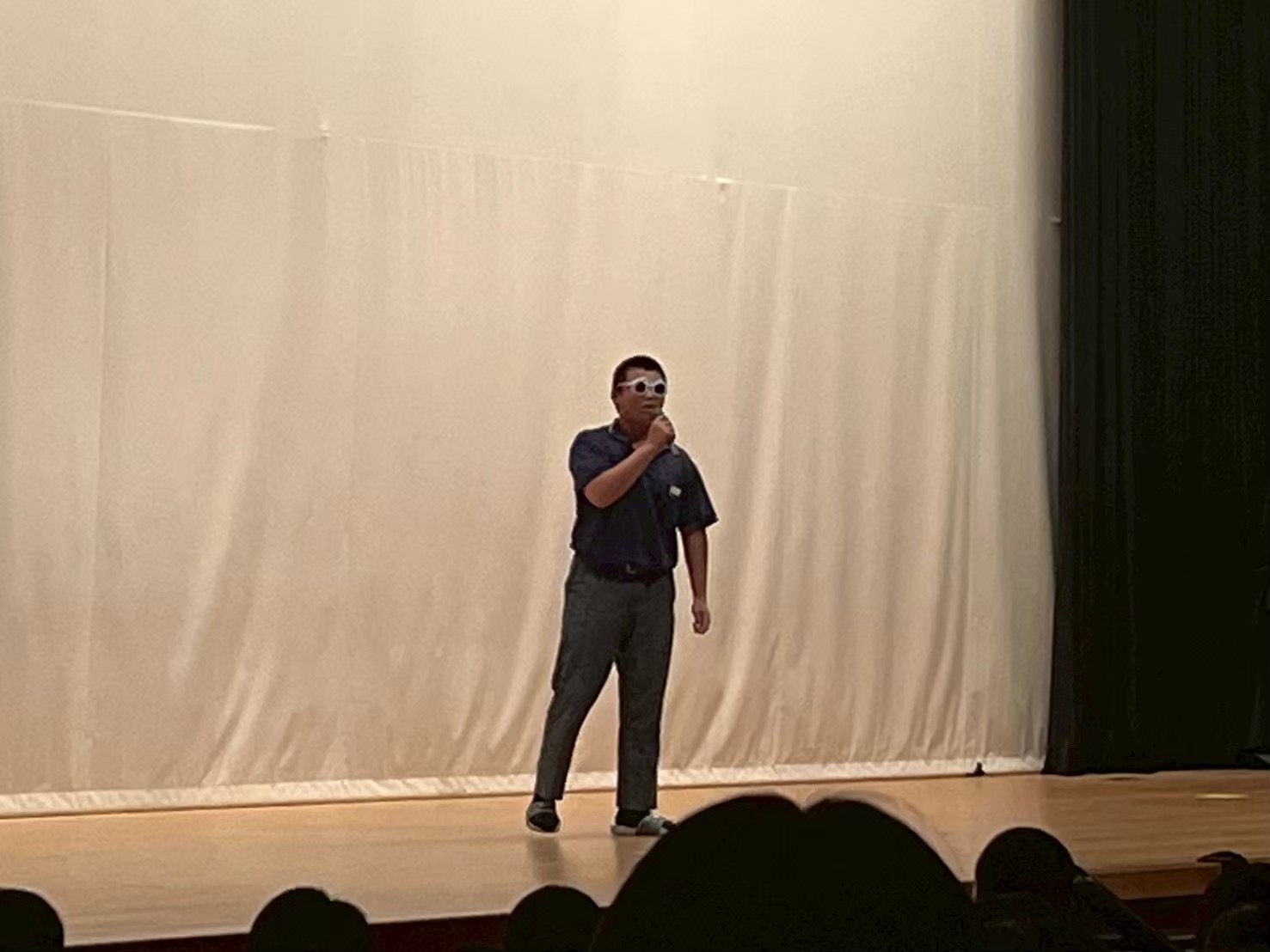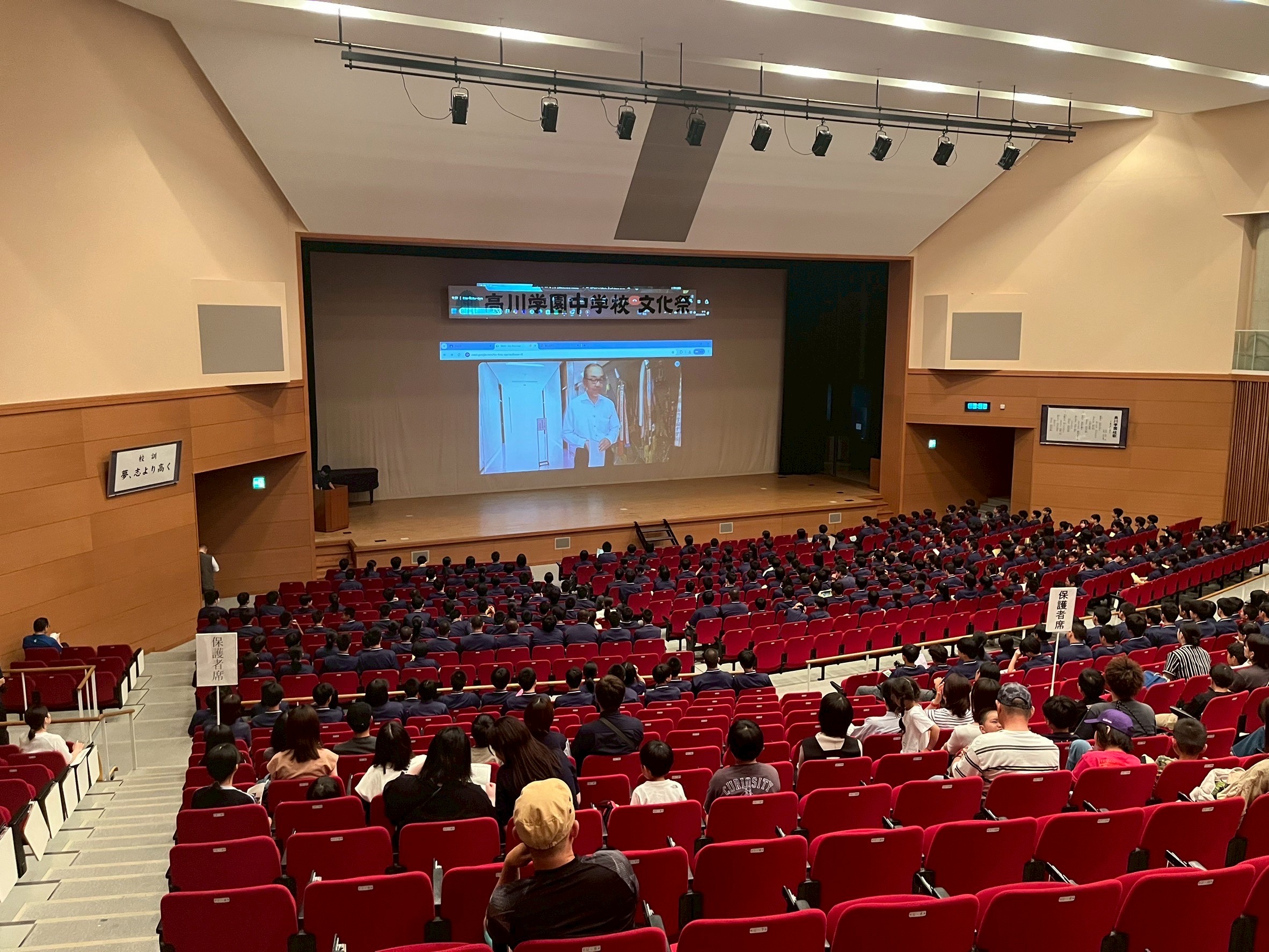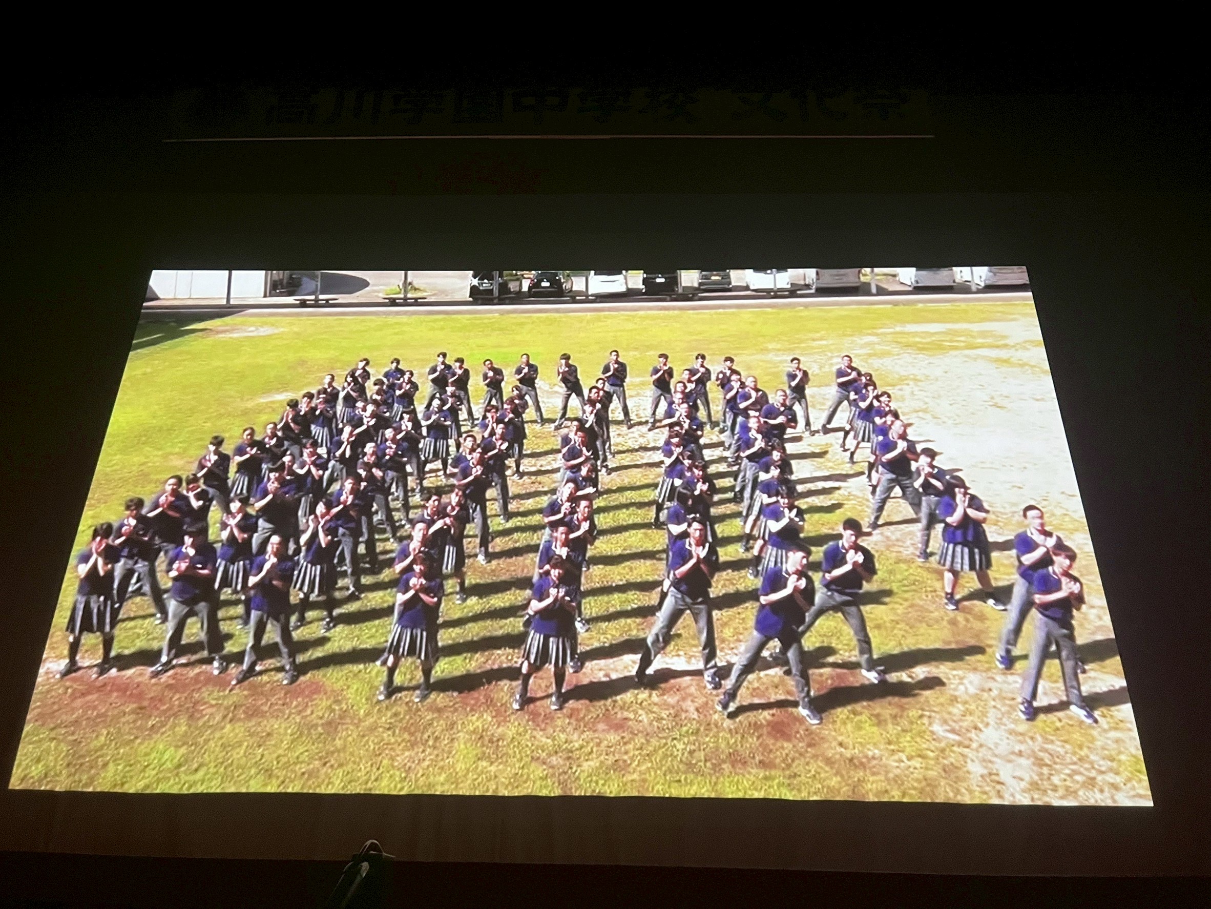 オープニングでは、校長先生が校長室から自分の学生時代の思い出について語りながら歩いて移動する動画が映し出され・・・講堂に登場!という凝った演出がありました。