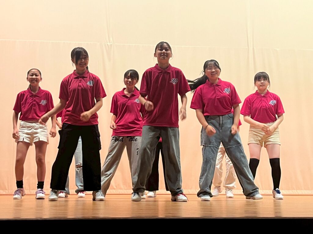 昨年度から練習している曲と、この日の為に追加で練習した新しい曲の2曲を踊りました。初ステージの生徒もいましたが、堂々と踊りました。