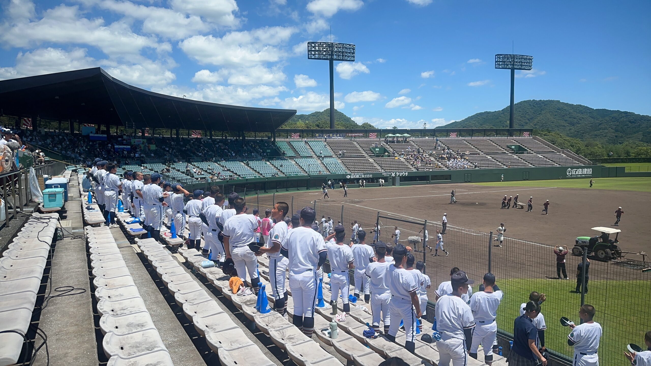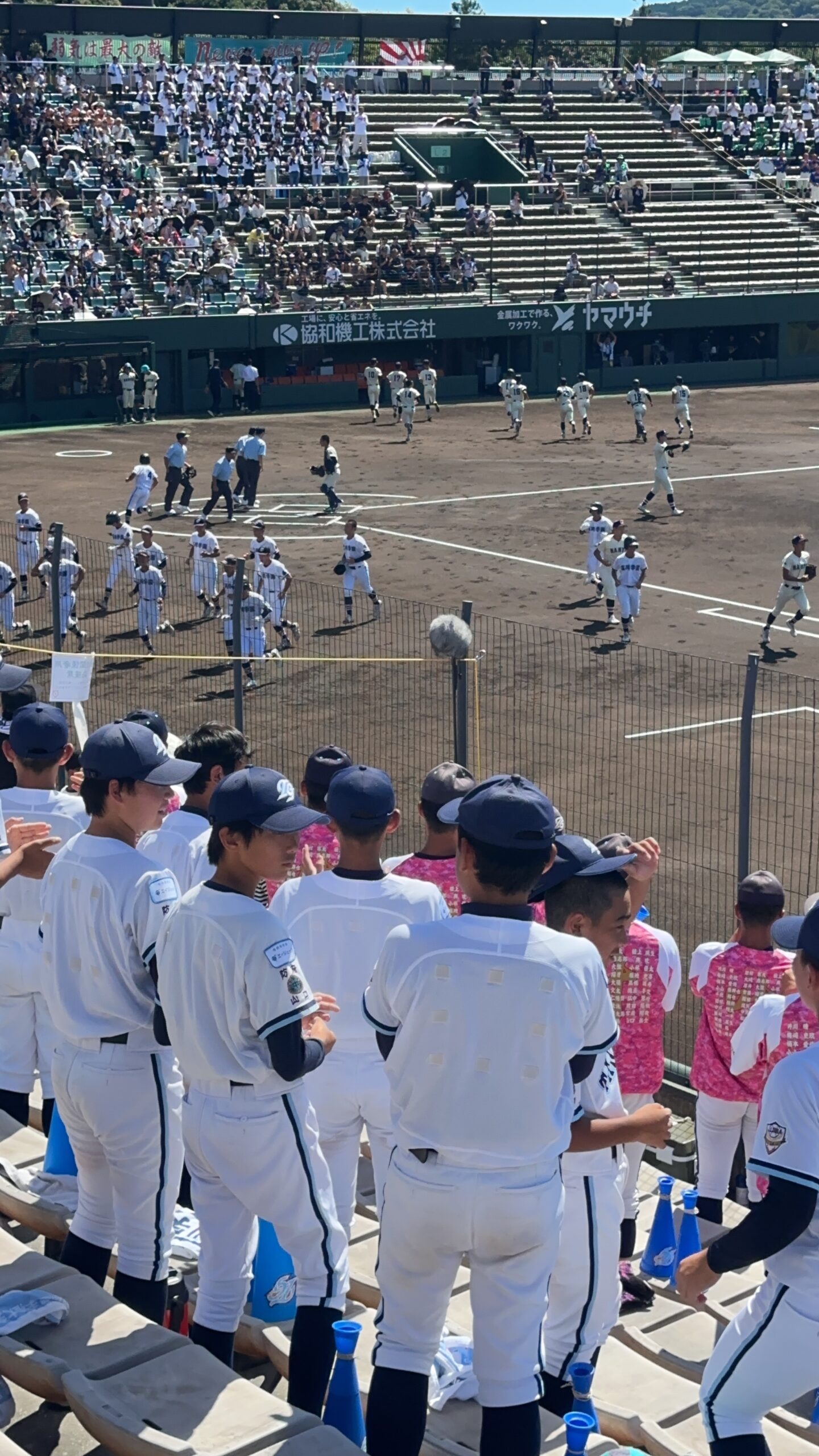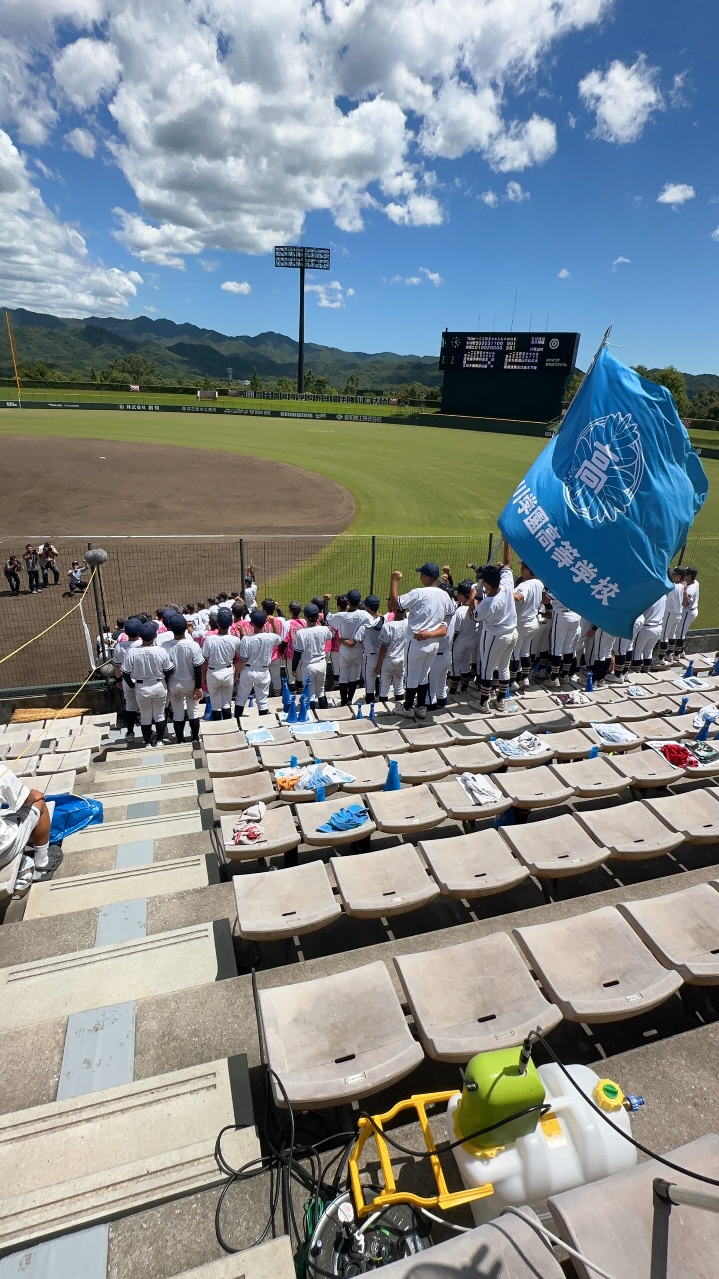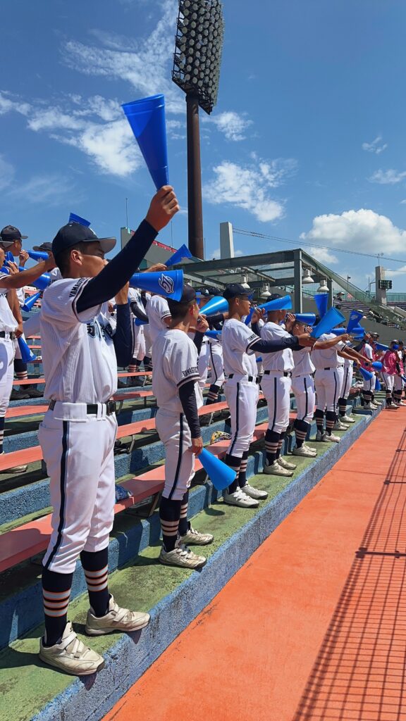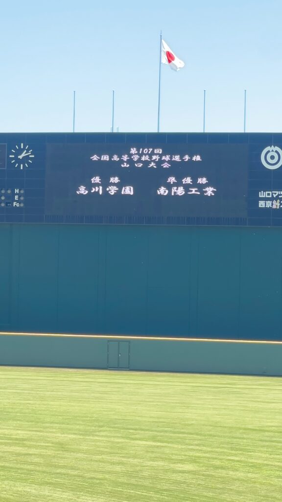 7月16日(水)から27日(日)にかけて第107回全国高等学校野球選手権大会山口大会が行われました。高川学園は4年ぶりの甲子園出場を目指して戦いました。例年通り、高校1年生は全員応援なので、2日間応援練習をして初戦に臨みました。大応援団の声援が野球部に勢いをつけたに違いありません。その後の試合も順調に勝ち進みました。決勝まで圧倒的な強さで勝ち進み、甲子園の切符を手に入れました。硬式野球部、そして応援団のみんな、よく頑張りました!決勝が終わって学校に戻ると、甲子園ムード一色!甲子園でどこまで活躍してくれるか楽しみです。
