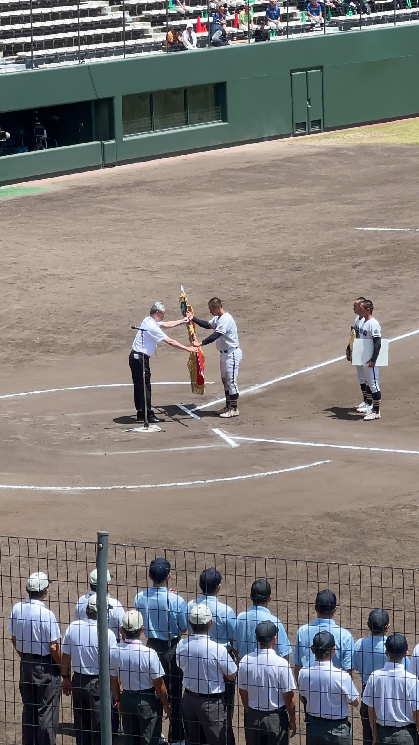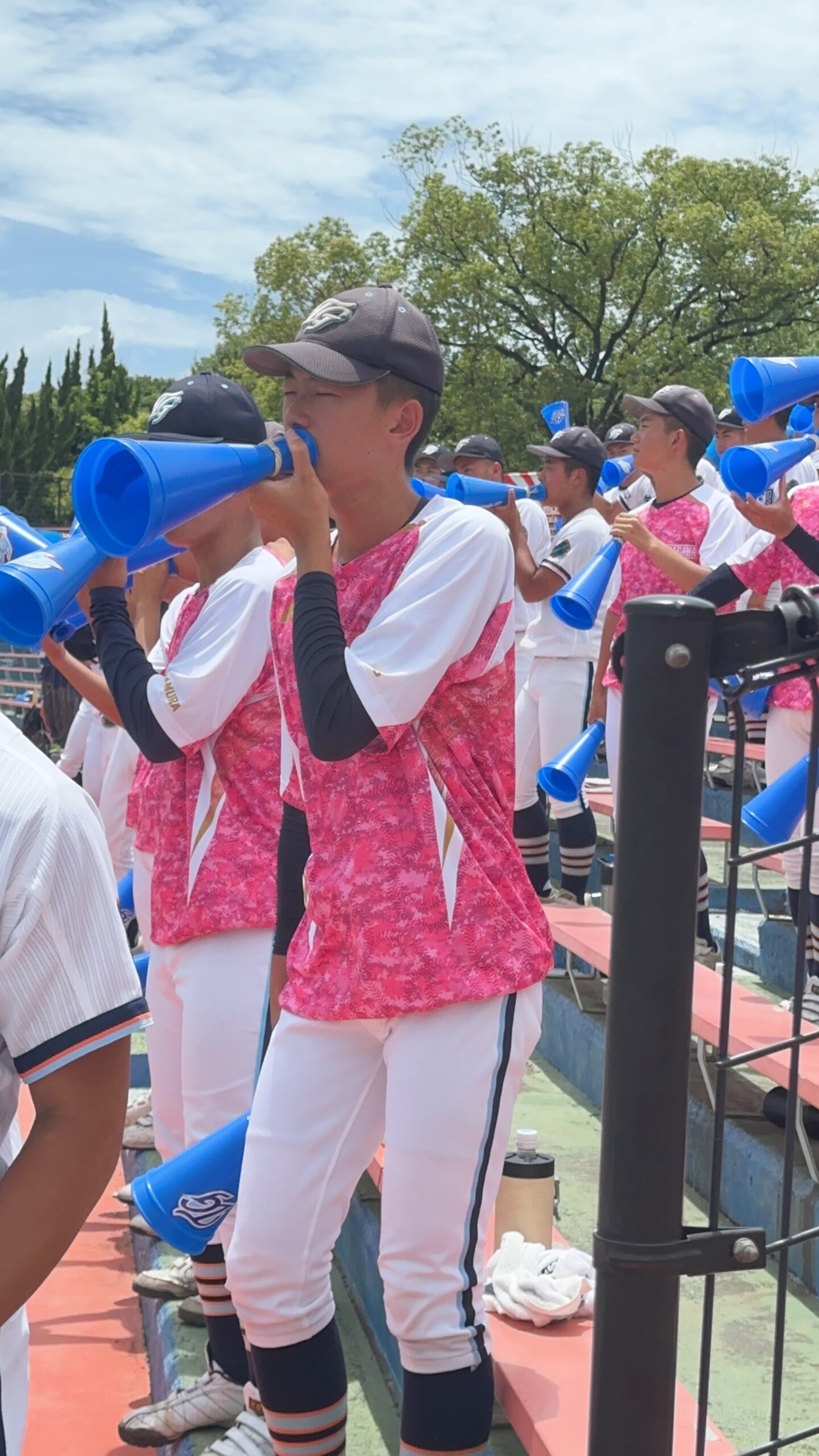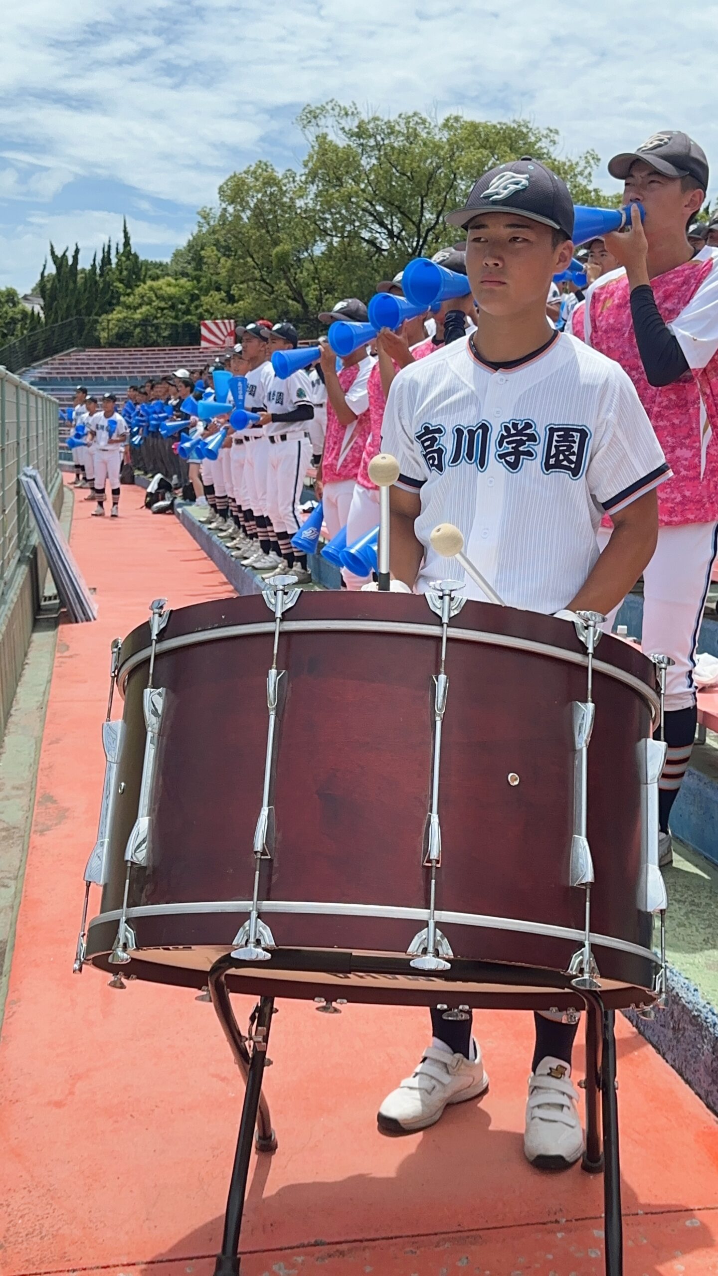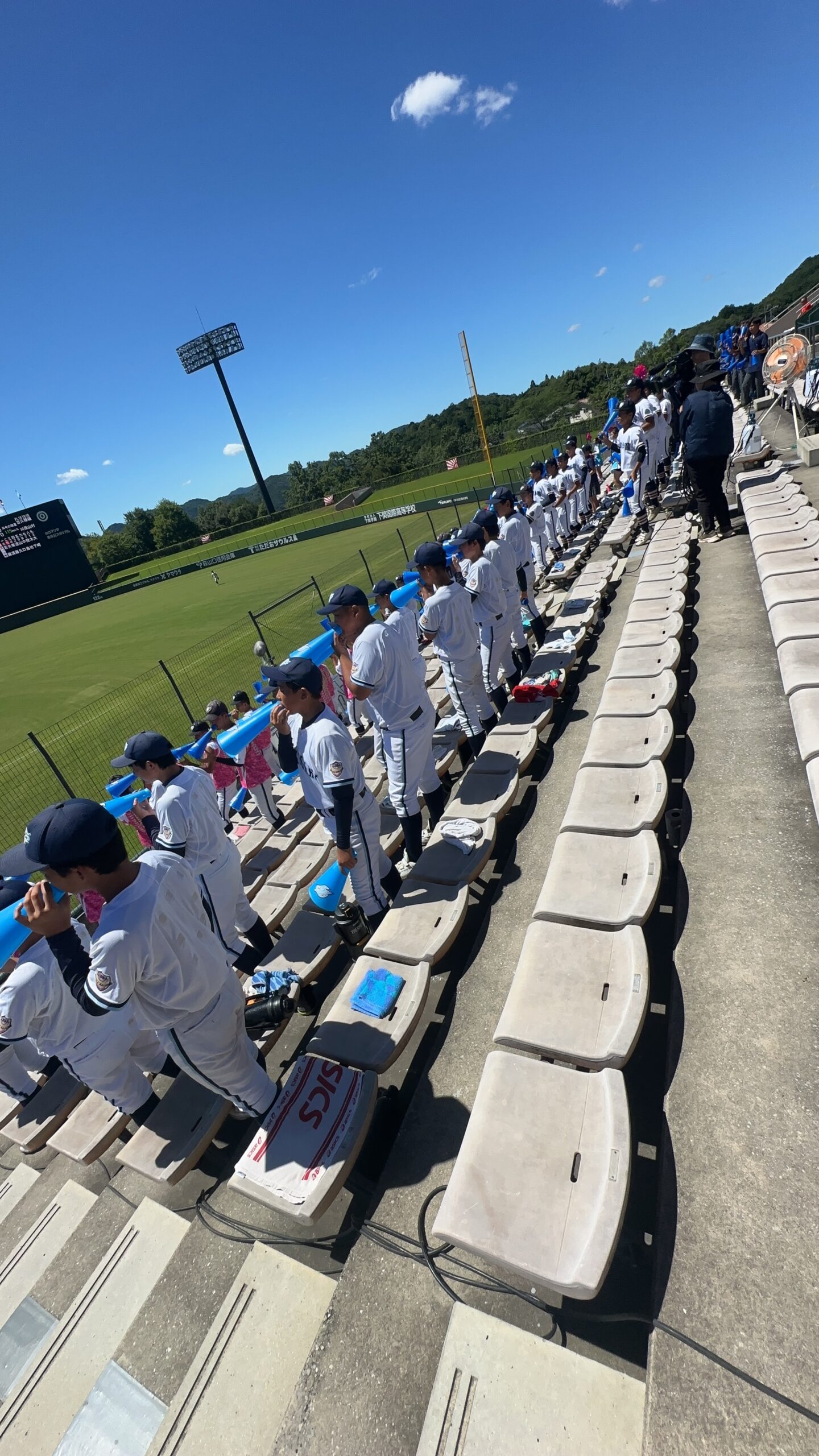 7月16日(水)から27日(日)にかけて第107回全国高等学校野球選手権大会山口大会が行われました。高川学園は4年ぶりの甲子園出場を目指して戦いました。例年通り、高校1年生は全員応援なので、2日間応援練習をして初戦に臨みました。大応援団の声援が野球部に勢いをつけたに違いありません。その後の試合も順調に勝ち進みました。決勝まで圧倒的な強さで勝ち進み、甲子園の切符を手に入れました。硬式野球部、そして応援団のみんな、よく頑張りました!決勝が終わって学校に戻ると、甲子園ムード一色!甲子園でどこまで活躍してくれるか楽しみです。