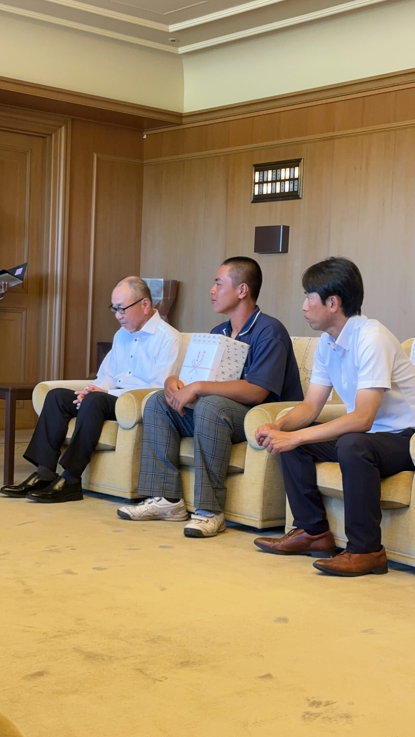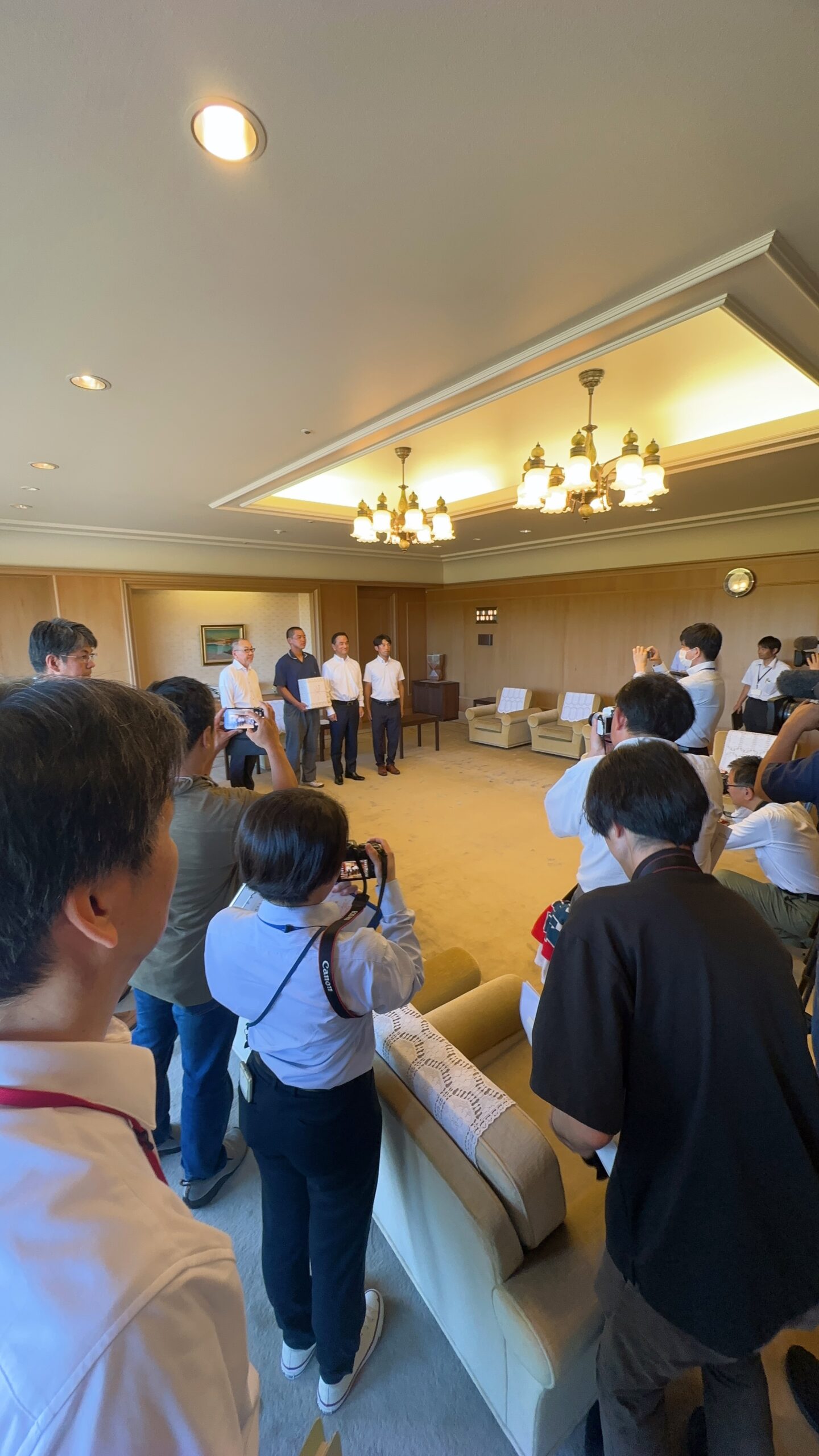 7月29日(火)、第107回全国高等学校野球選手権大会山口大会で優勝し、山口県代表として甲子園に出場することが決まったため、山口県庁を来庁し、村岡県知事に報告をさせていただきました。