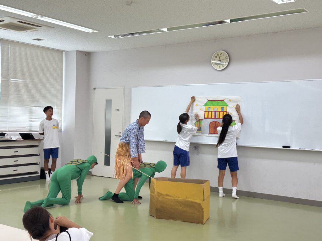 家庭科の育児分野で毎年実施している実習です。防府市内の乳幼児を子育てされているママさんパパさんにお越しいただいています。初日は中学3年3組でした。はじめに、劇「浦島太郎」を披露しました。無事に劇をやり終えました。その後は、ふれあいタイムです。天気が良かったので、外遊びをして楽しみました。月齢が低く室内遊びをする子もいました。遊んでお腹が空いたら、離乳食を食べさせてあげました。中学生のふれあい体験は来週まであと4日間行われます。参加される皆さんの為に、楽しい出し物を用意してお待ちしております!