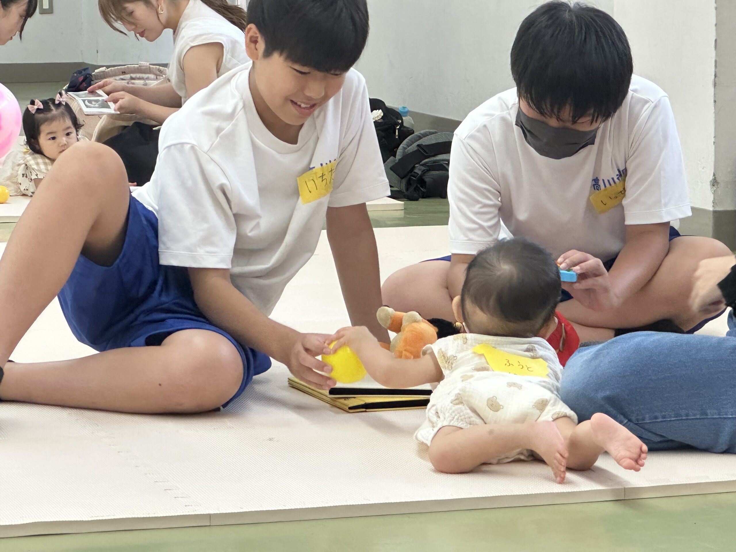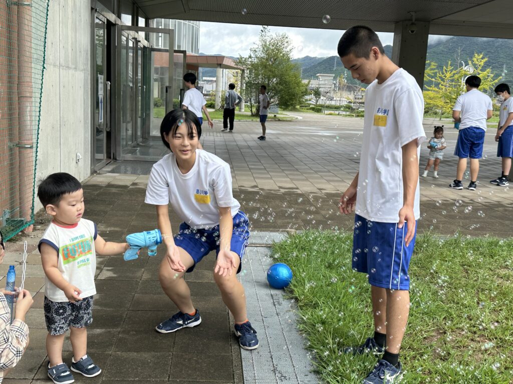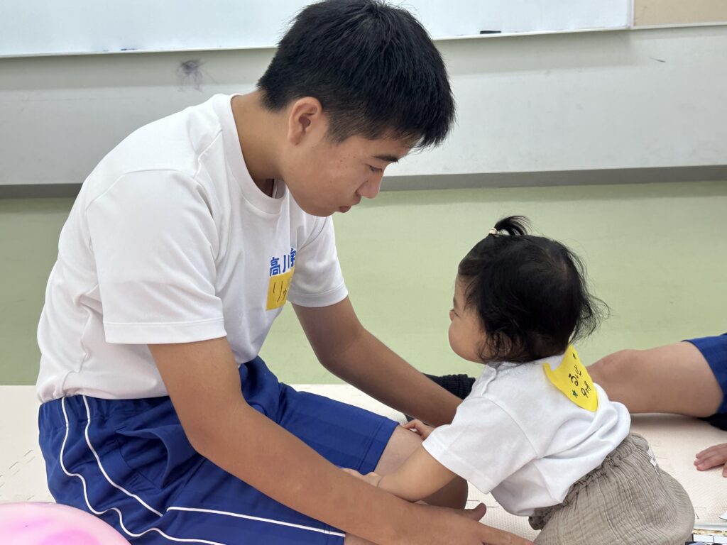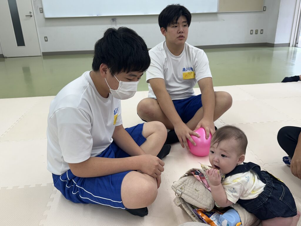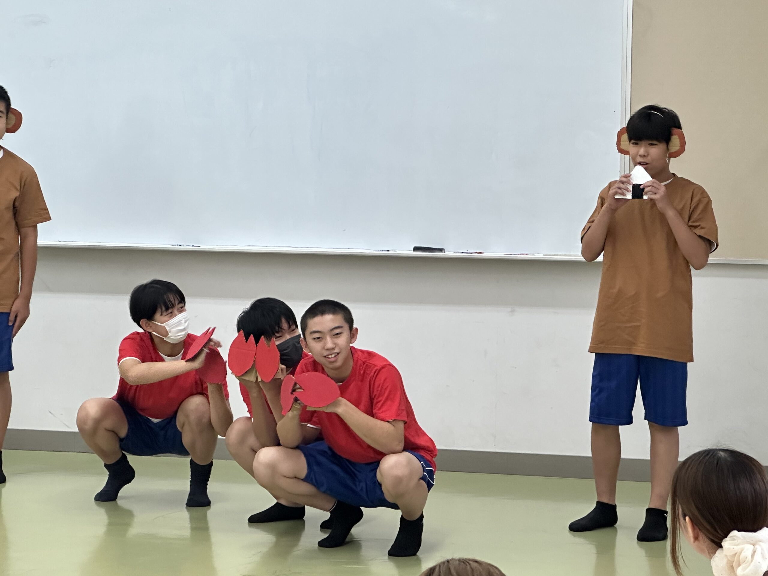 9月18日(木)に乳幼児とのふれあい体験を実施しました。3日目は3年2組でした。クラスの出し物は劇「さるかに合戦」。かにの爪、かるの耳、ふんのお面、栗のお面・・・段ボールの手作りがかわいいですね。出し物の後はふれあいタイム。朝から天候が悪かったので心配していましたが、ちょうど雨があがり外遊びができました。短い時間でしたが、お父さんお母さんから子育てについて色々な話を聞くことができ、楽しい時間を過ごすことができました。来週もやりますので、ぜひご参加ください。