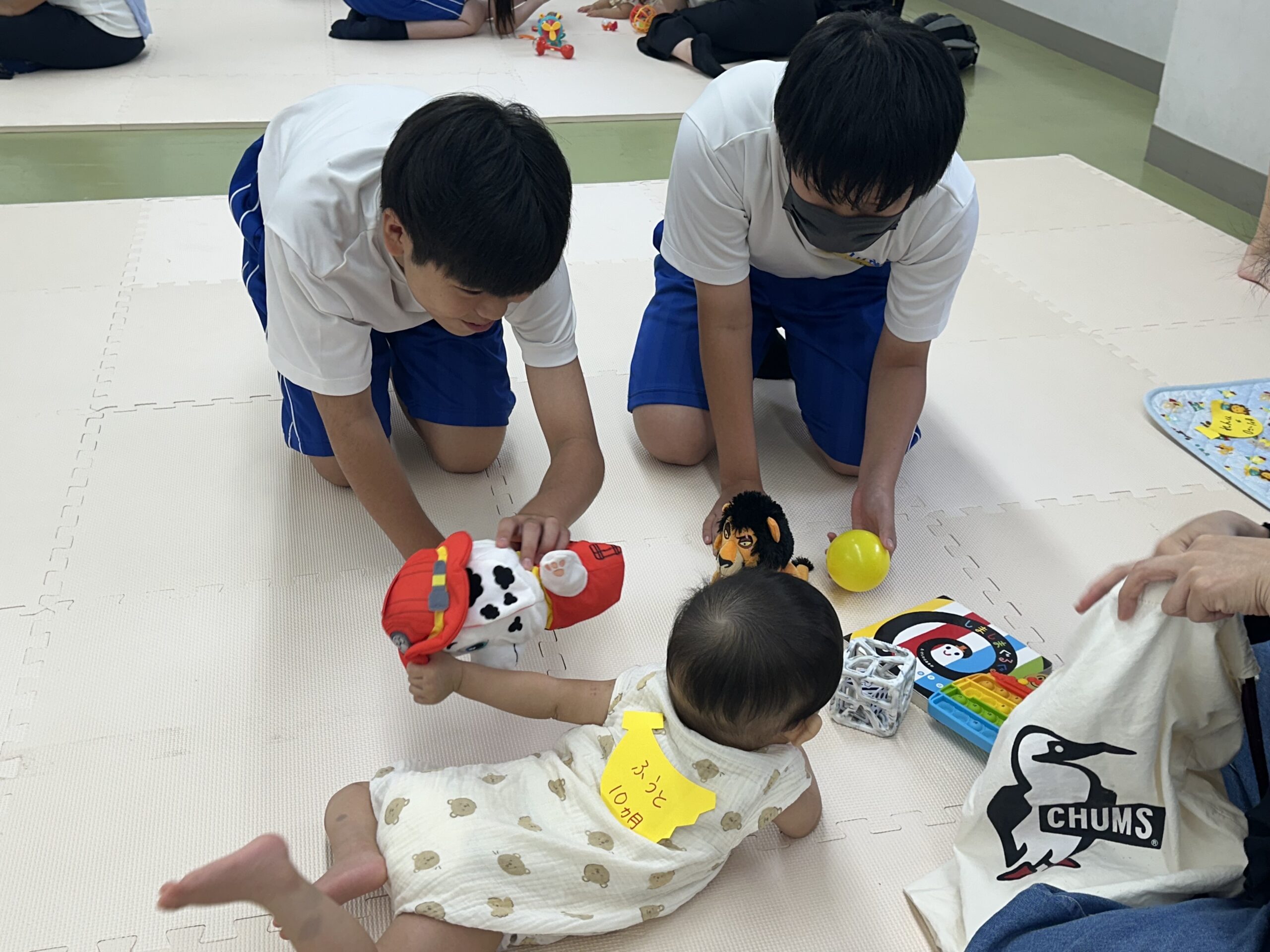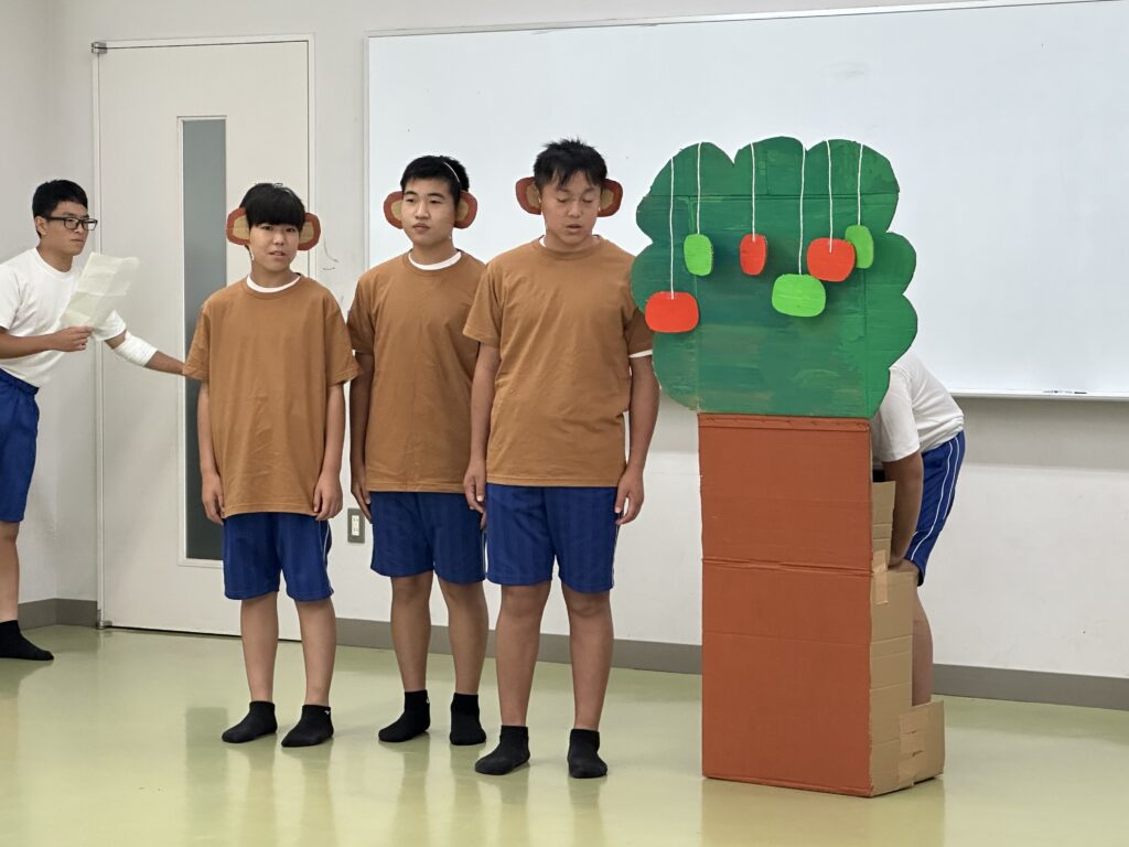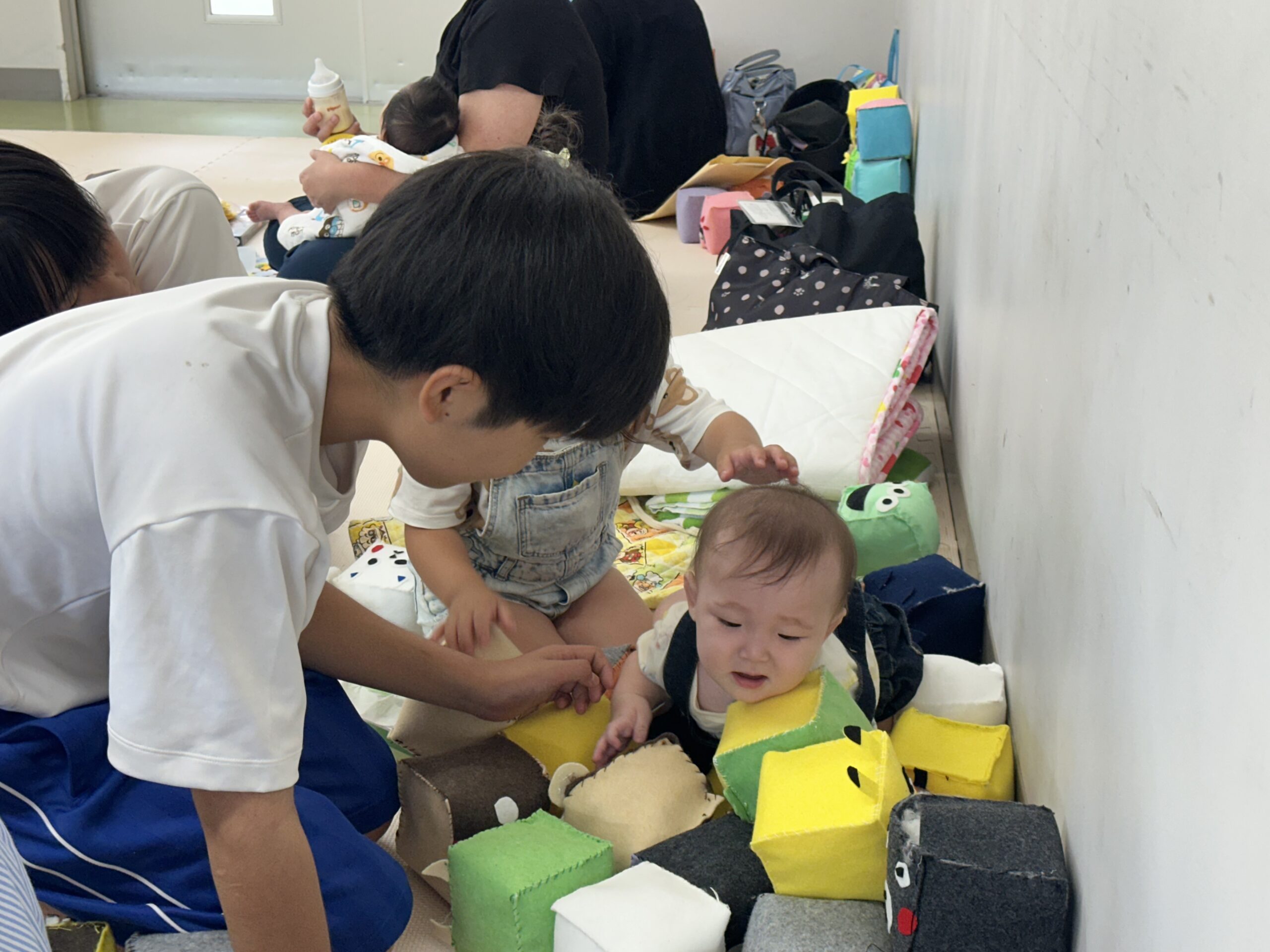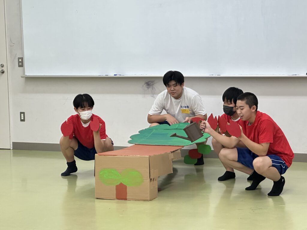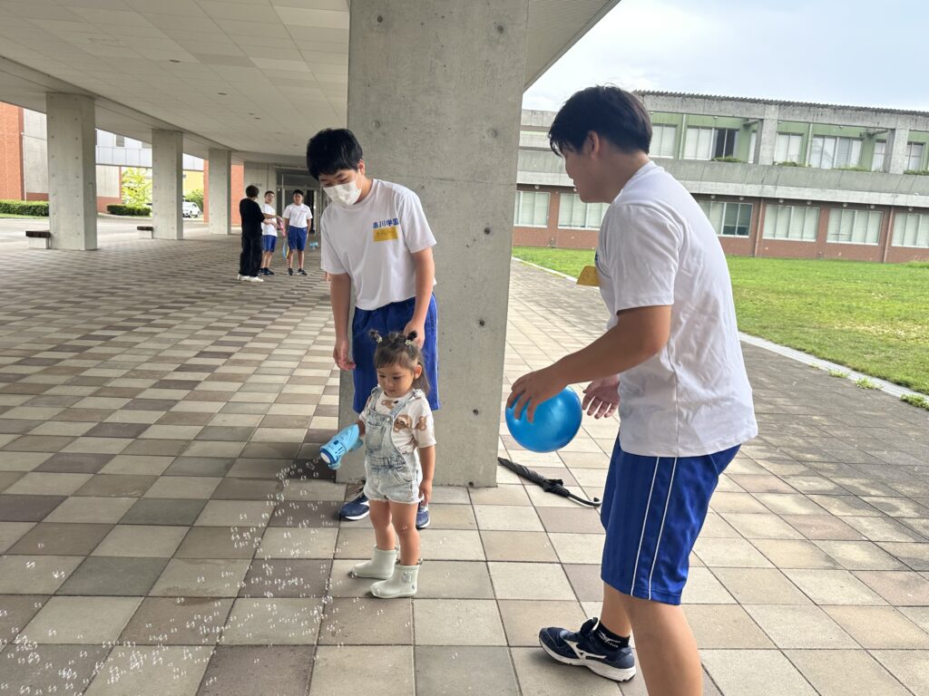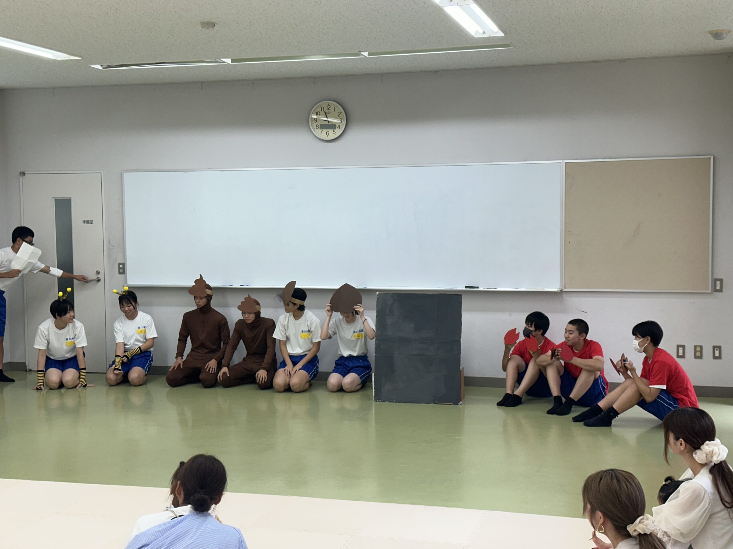 9月18日(木)に乳幼児とのふれあい体験を実施しました。3日目は3年2組でした。クラスの出し物は劇「さるかに合戦」。かにの爪、かるの耳、ふんのお面、栗のお面・・・段ボールの手作りがかわいいですね。出し物の後はふれあいタイム。朝から天候が悪かったので心配していましたが、ちょうど雨があがり外遊びができました。短い時間でしたが、お父さんお母さんから子育てについて色々な話を聞くことができ、楽しい時間を過ごすことができました。来週もやりますので、ぜひご参加ください。
