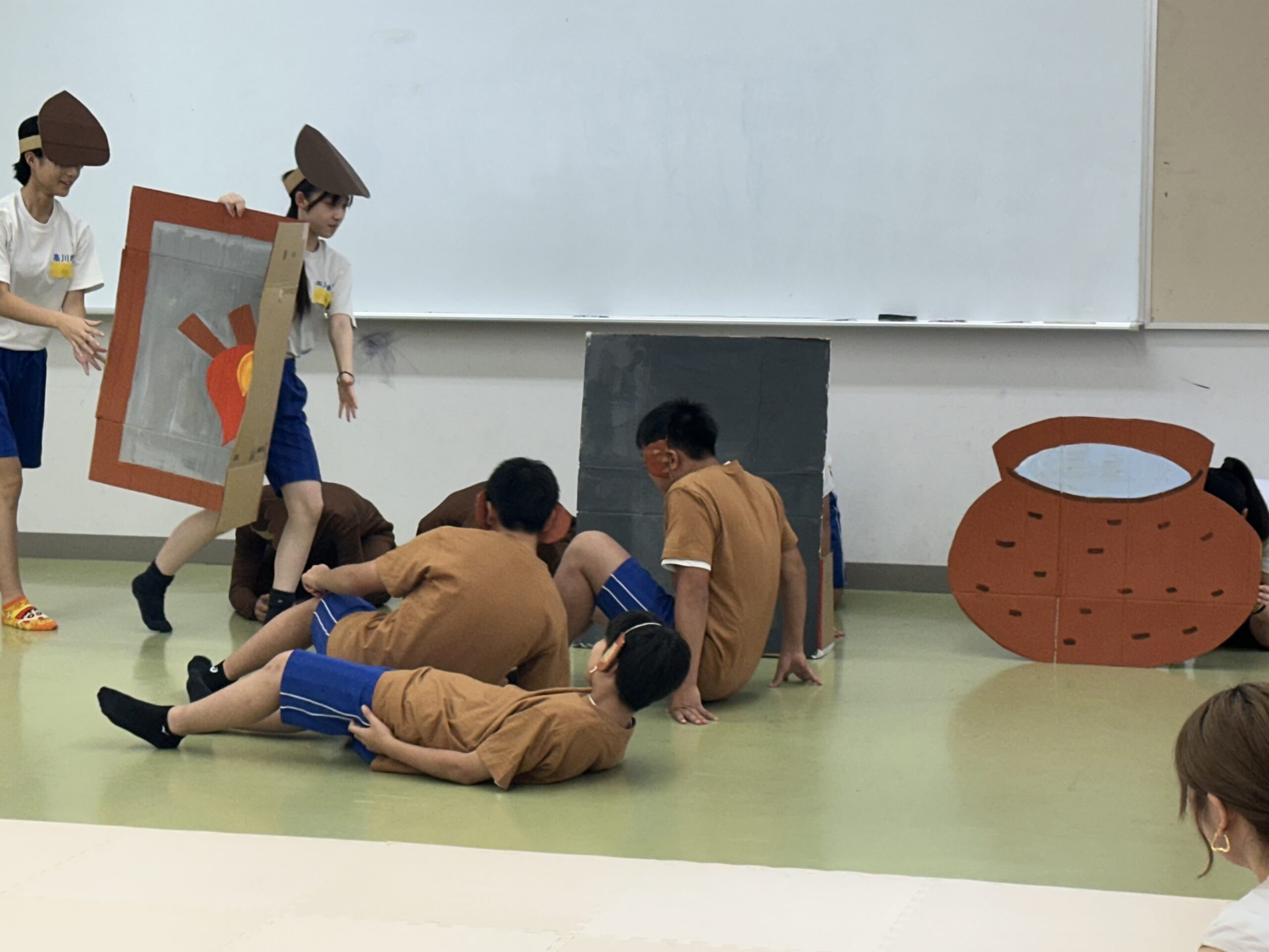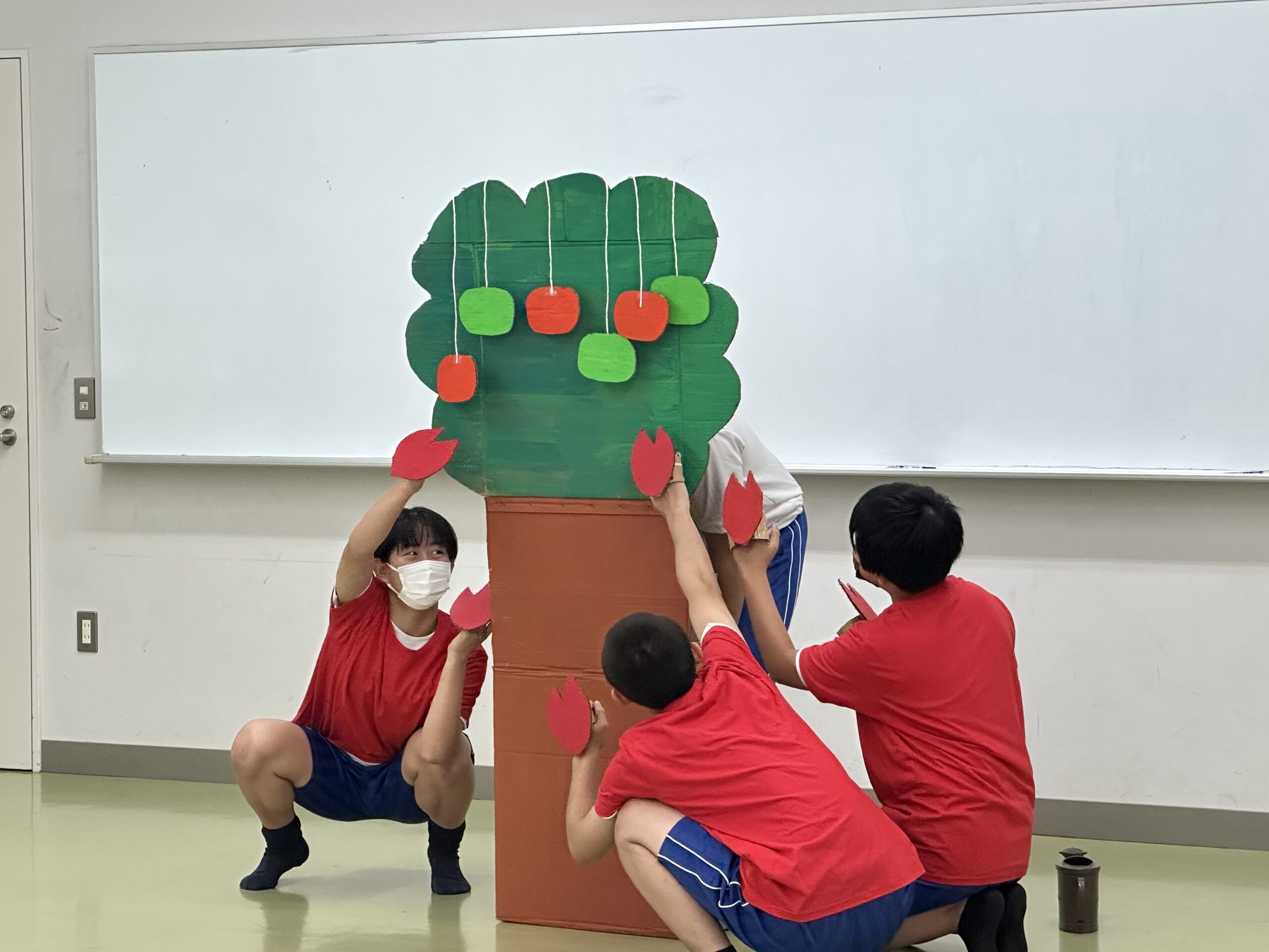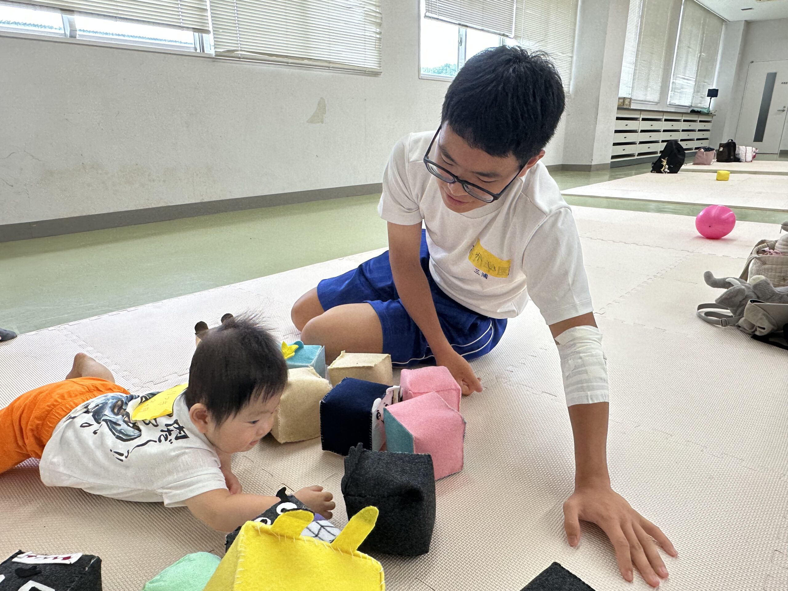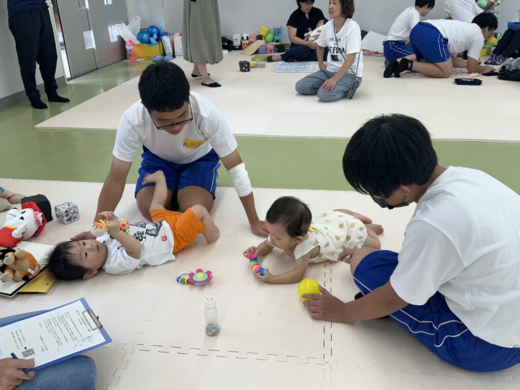 9月18日(木)に乳幼児とのふれあい体験を実施しました。3日目は3年2組でした。クラスの出し物は劇「さるかに合戦」。かにの爪、かるの耳、ふんのお面、栗のお面・・・段ボールの手作りがかわいいですね。出し物の後はふれあいタイム。朝から天候が悪かったので心配していましたが、ちょうど雨があがり外遊びができました。短い時間でしたが、お父さんお母さんから子育てについて色々な話を聞くことができ、楽しい時間を過ごすことができました。来週もやりますので、ぜひご参加ください。