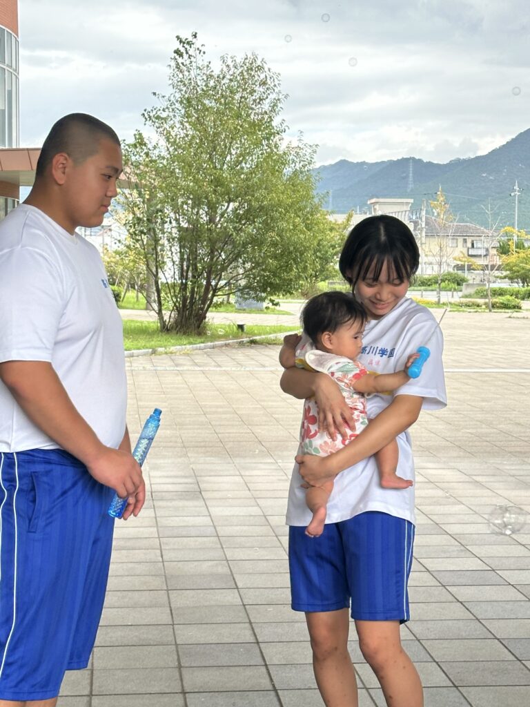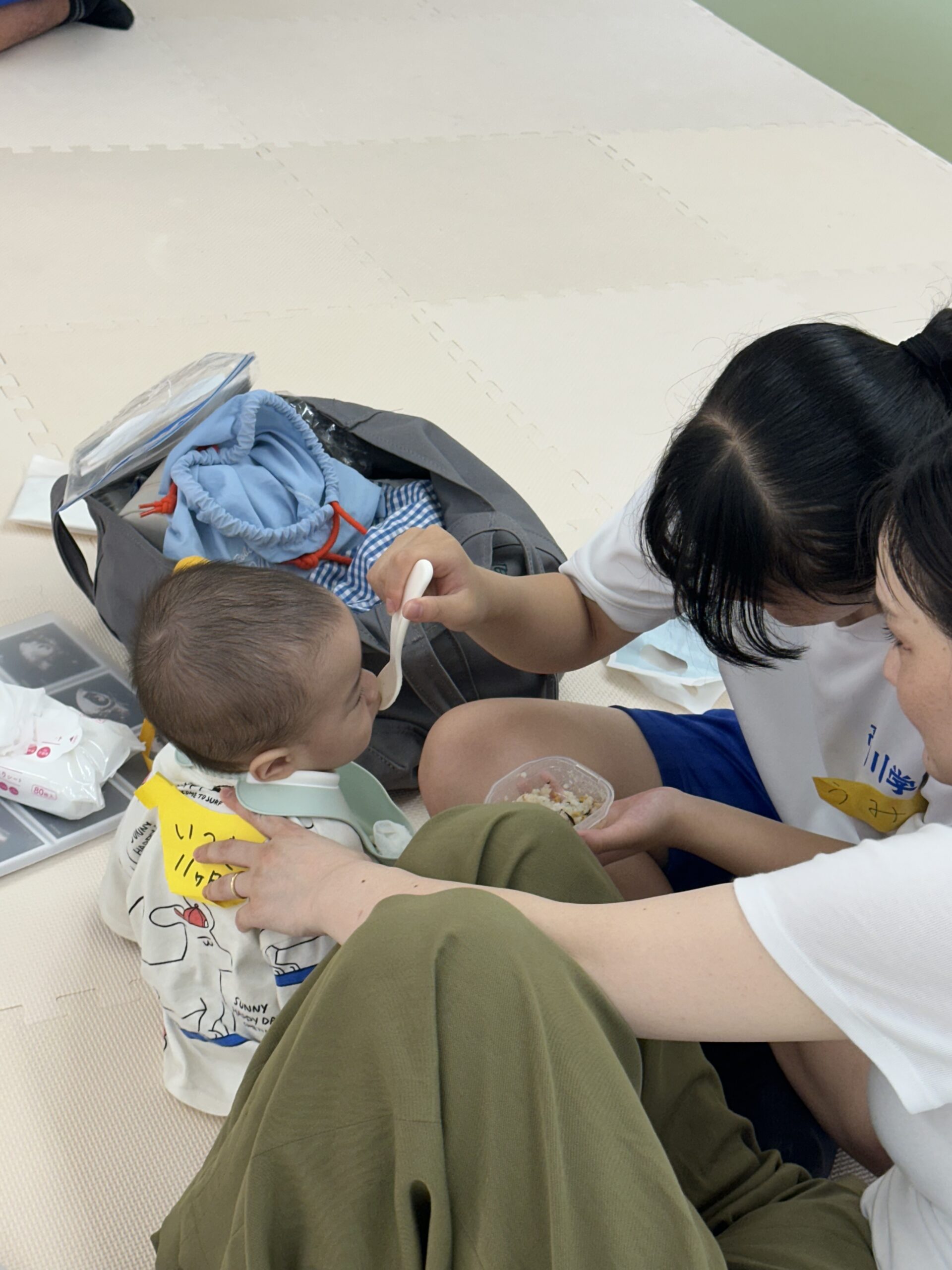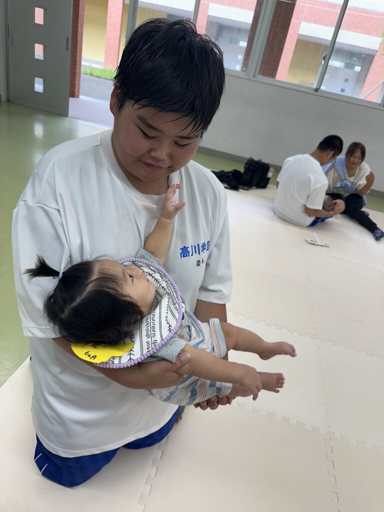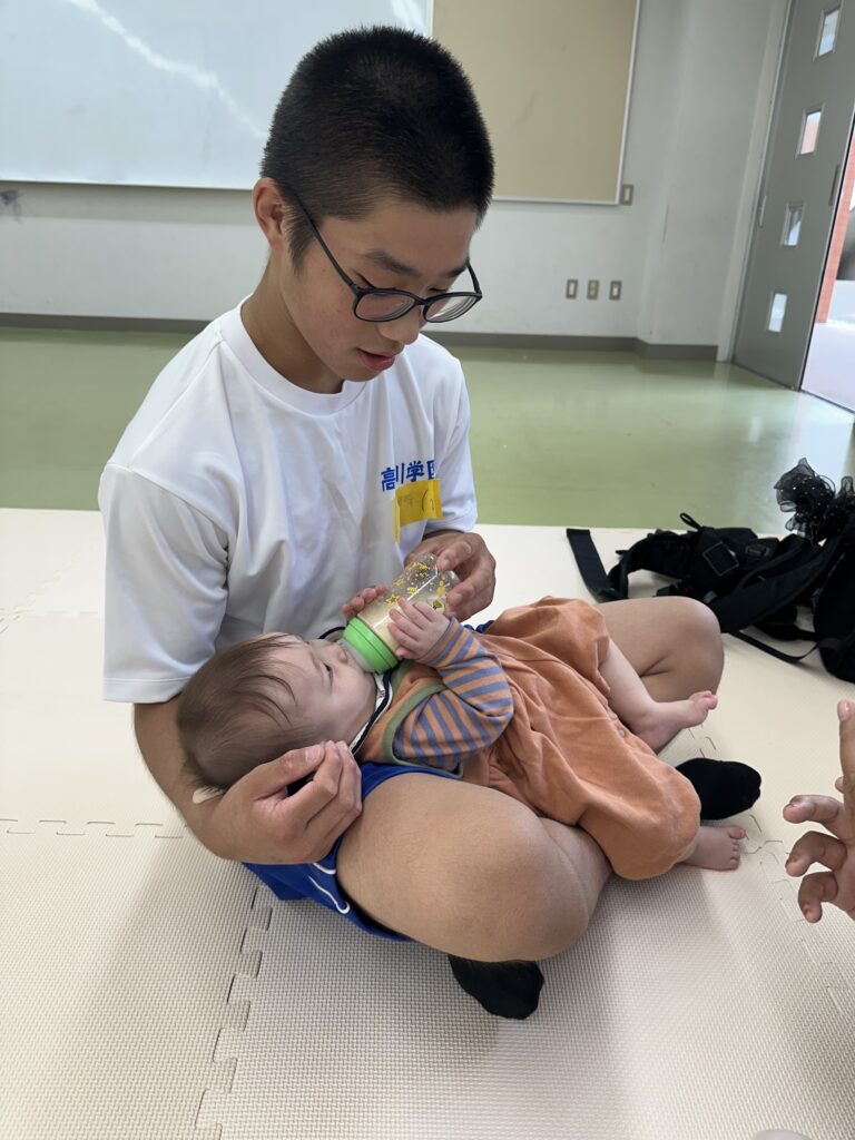 ミルクをあげたり、抱っこして寝かしつけたり、おむつを替えたり・・・遊ぶだけではなく育児の楽しさと大変さを感じることができるとても貴重な時間となりました。
