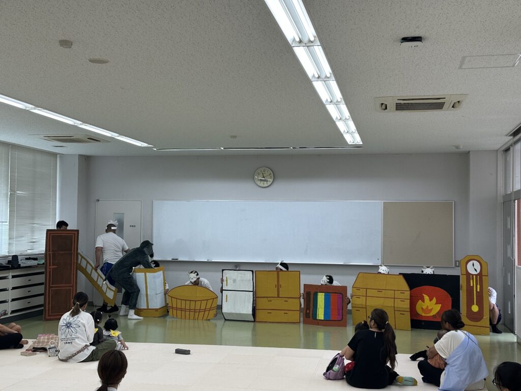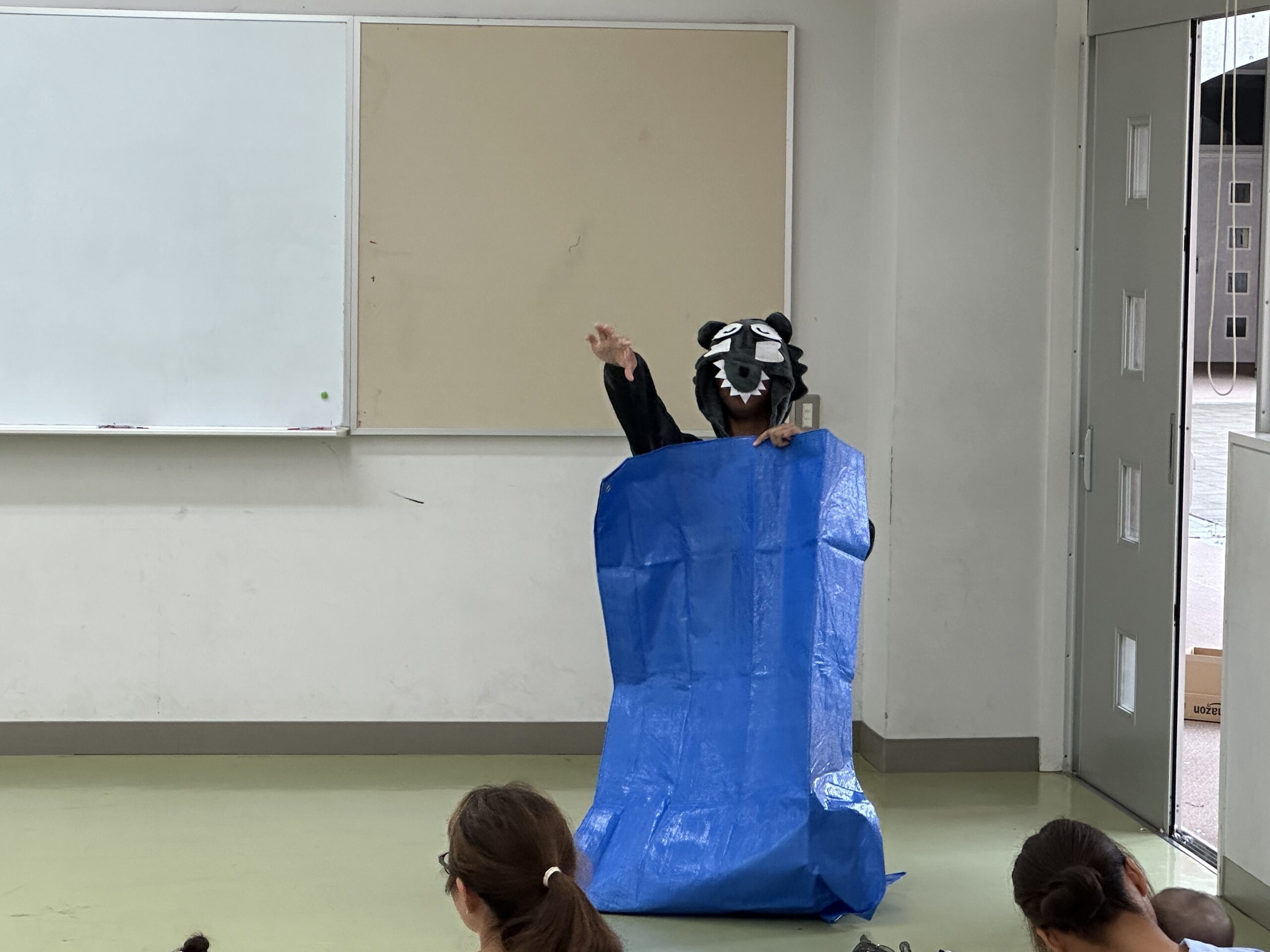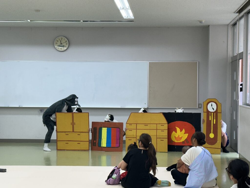劇は「おおかみと9匹のこやぎ」でした。7匹では?と思われるところですが、出演者の人数を調整するために、こやぎを増やしてみました。