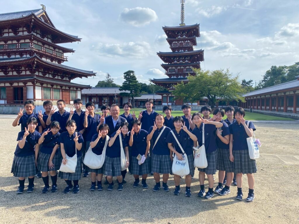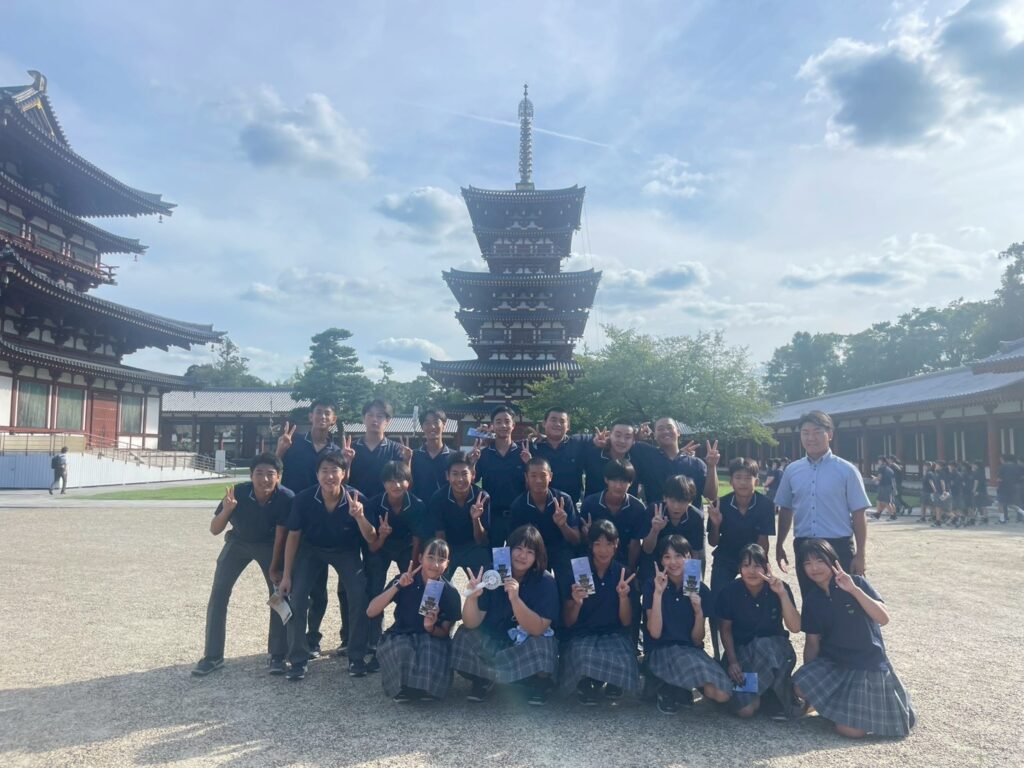 バスで移動して薬師寺へ。説法体験をしました。そして、宿泊先である京都「宇多野ユースホステル」へ。2日目は大阪万博です。一生に一度かもしれない貴重な体験ができますね!
