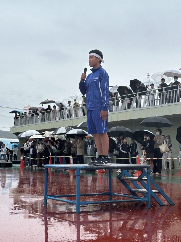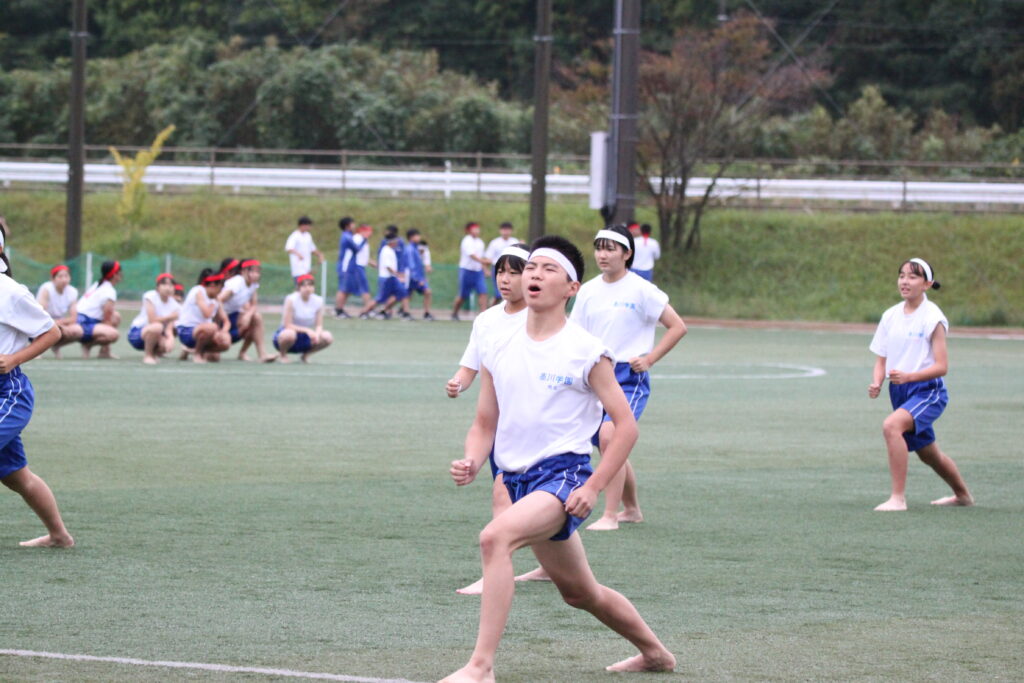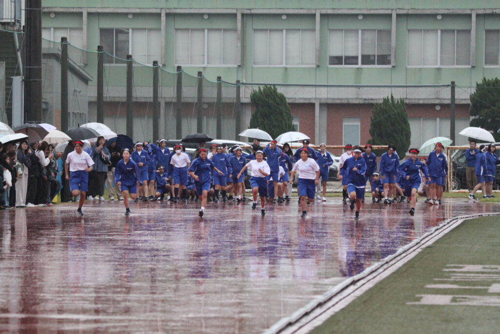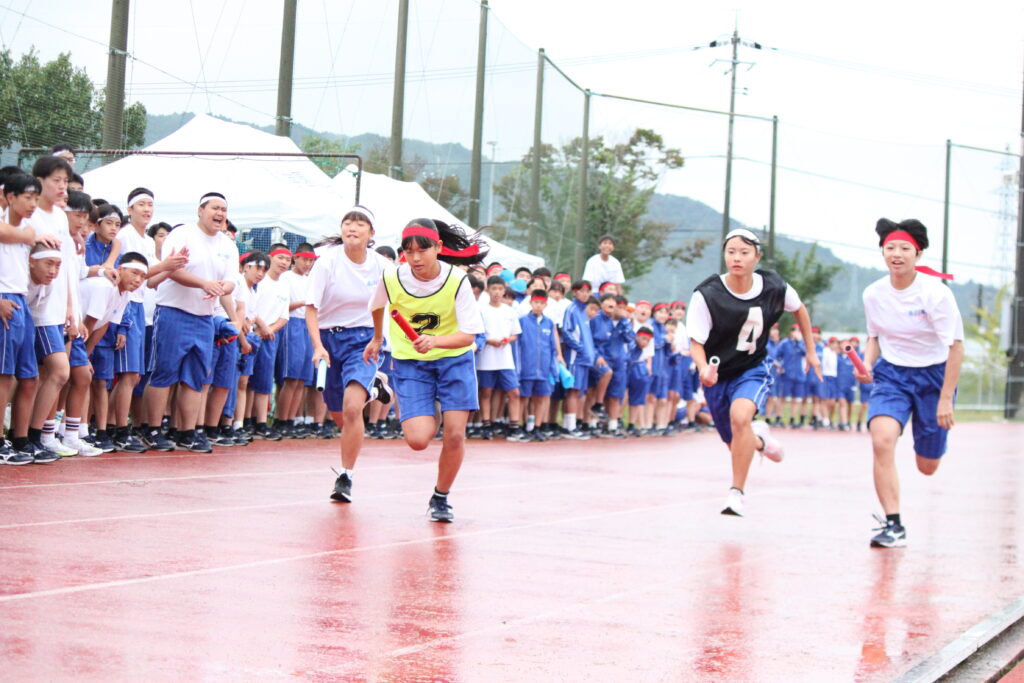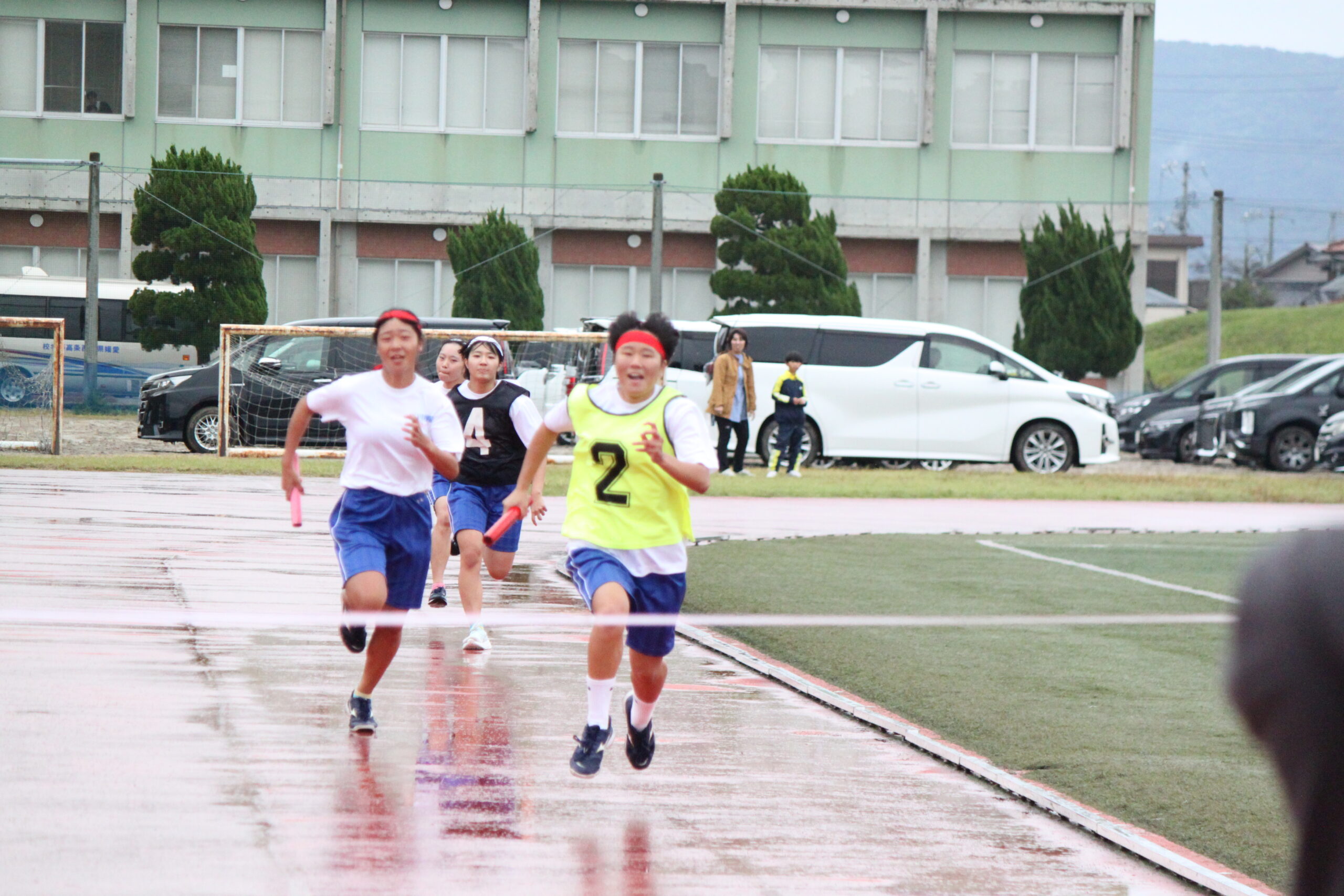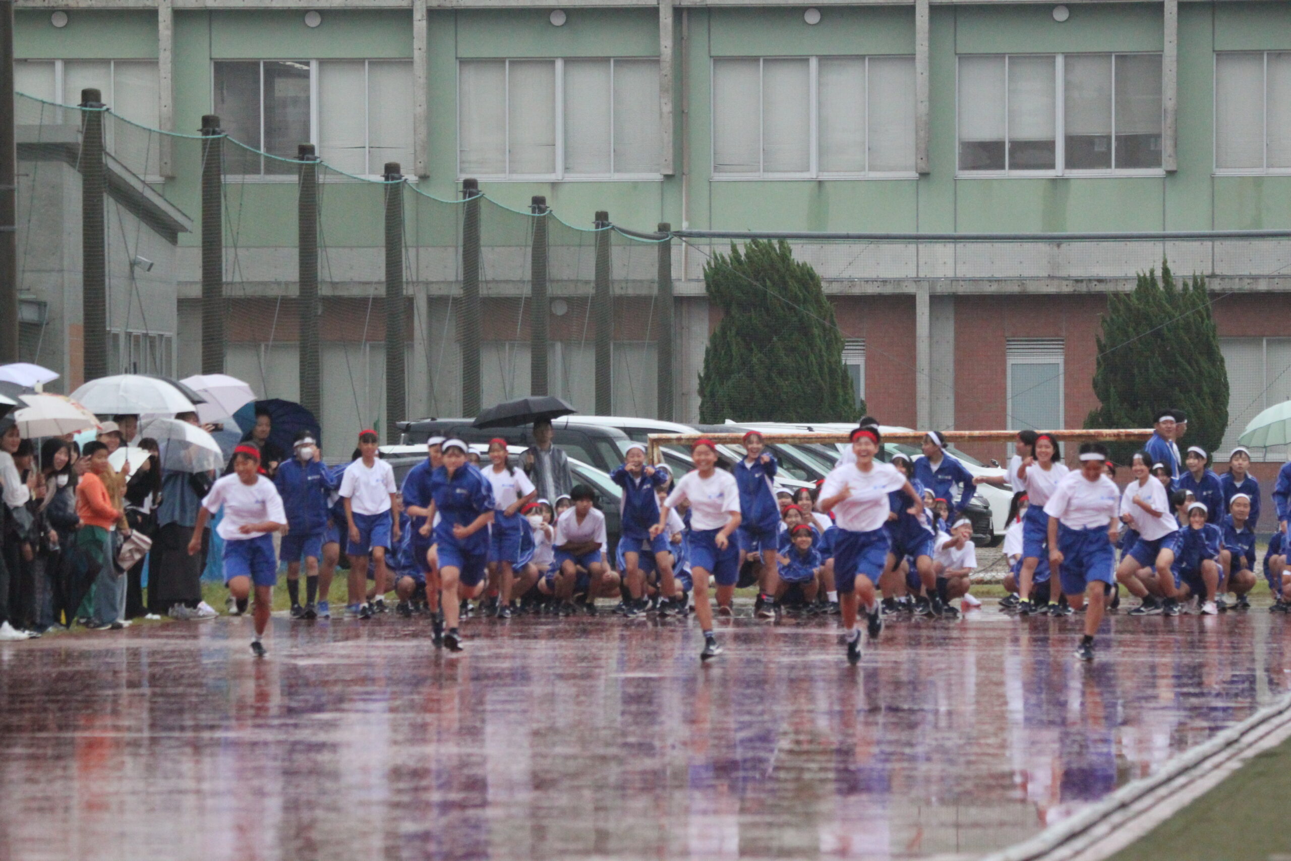 10月25日(土)中学校体育祭が行われました。朝から大雨で順延も検討されましたが、保護者の皆様も多数来校されており1時間遅れになりましたが、決行することとなりました。