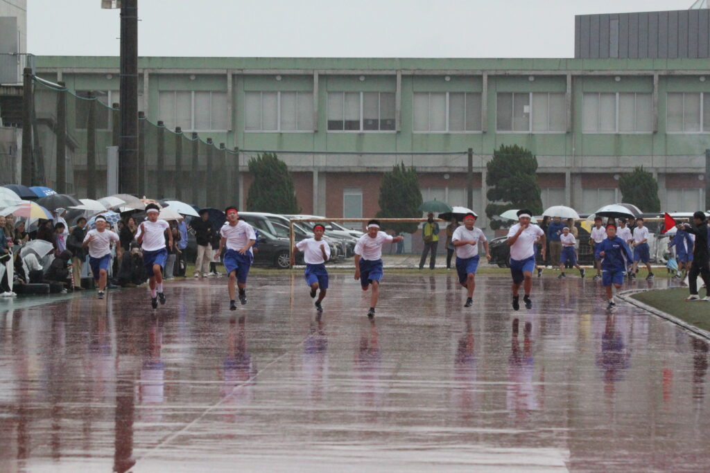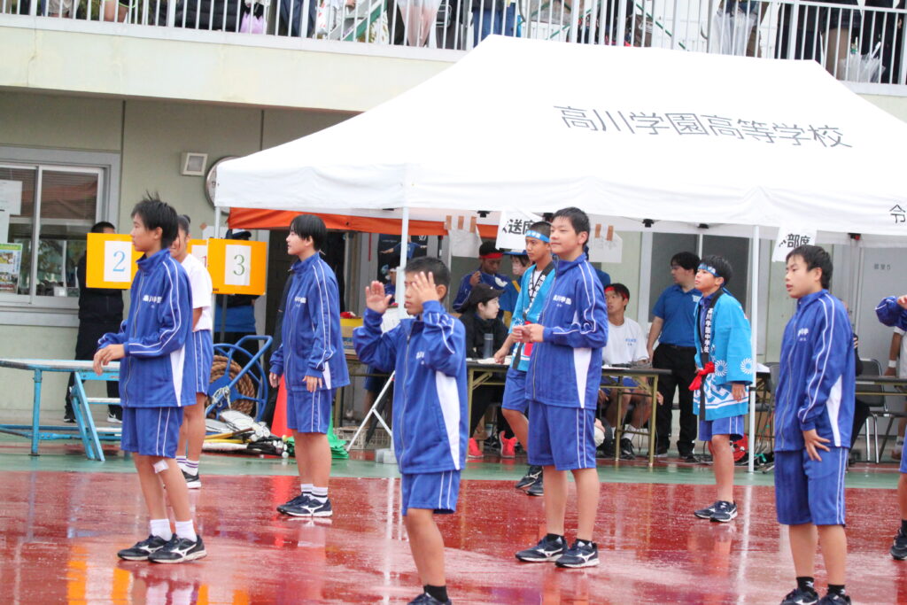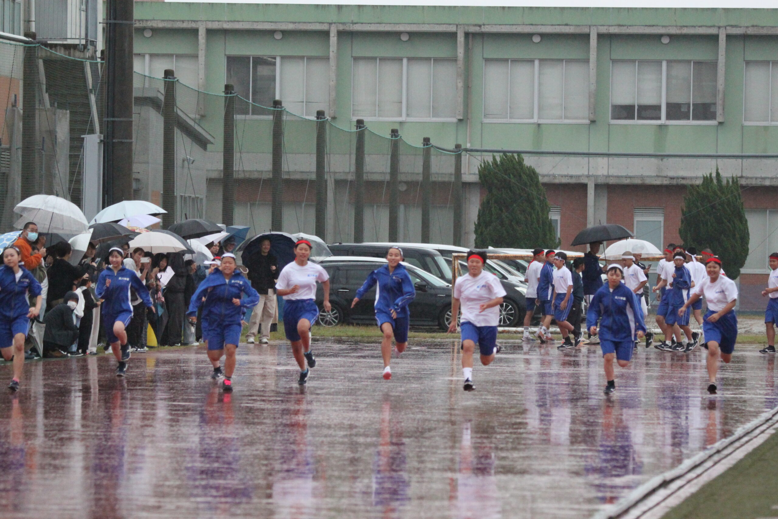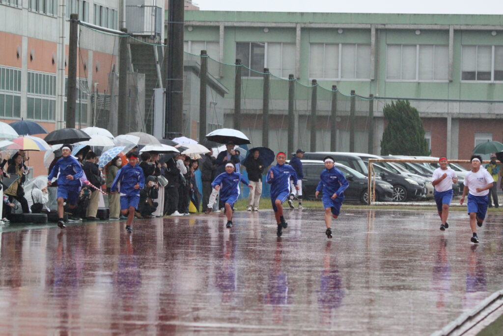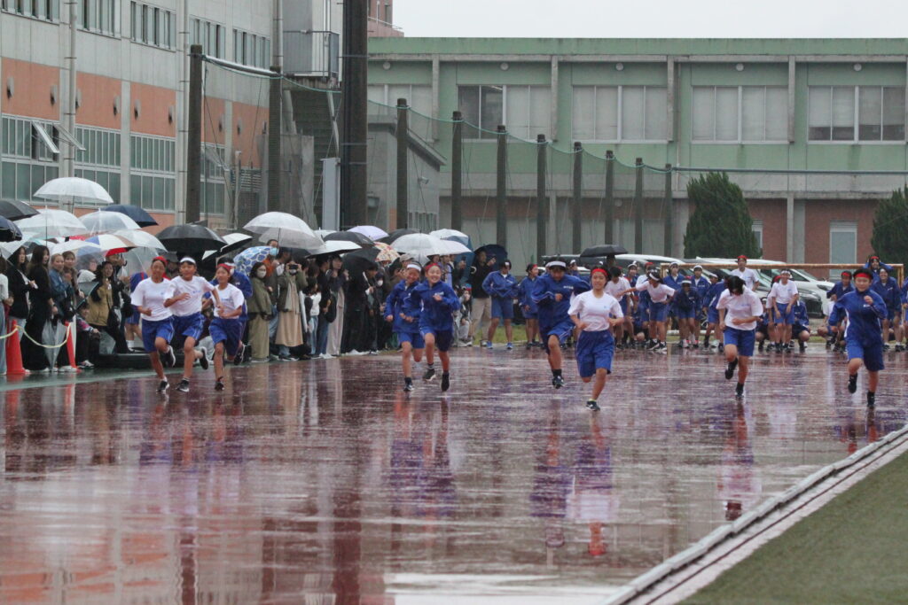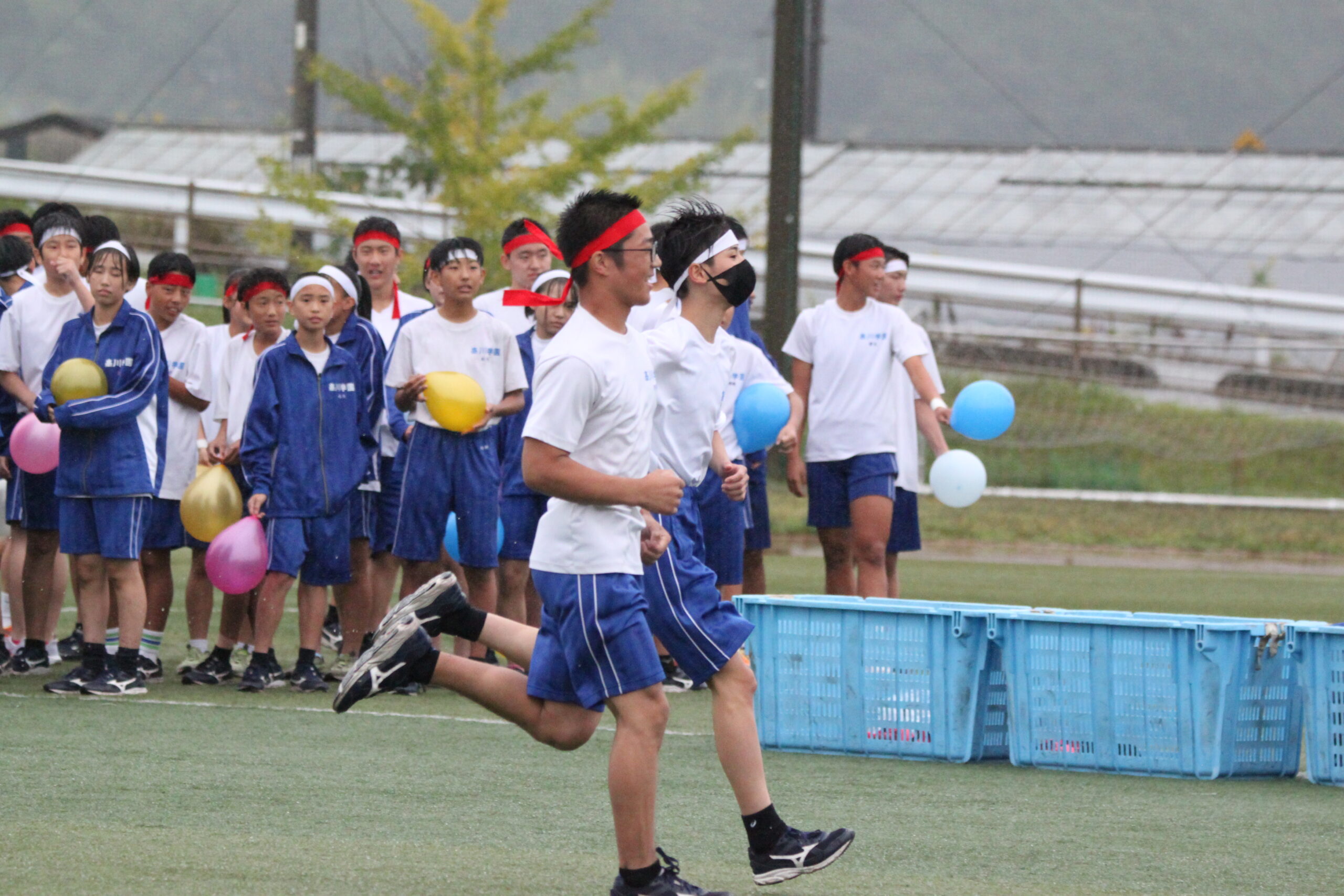 10月25日(土)中学校体育祭が行われました。朝から大雨で順延も検討されましたが、保護者の皆様も多数来校されており1時間遅れになりましたが、決行することとなりました。