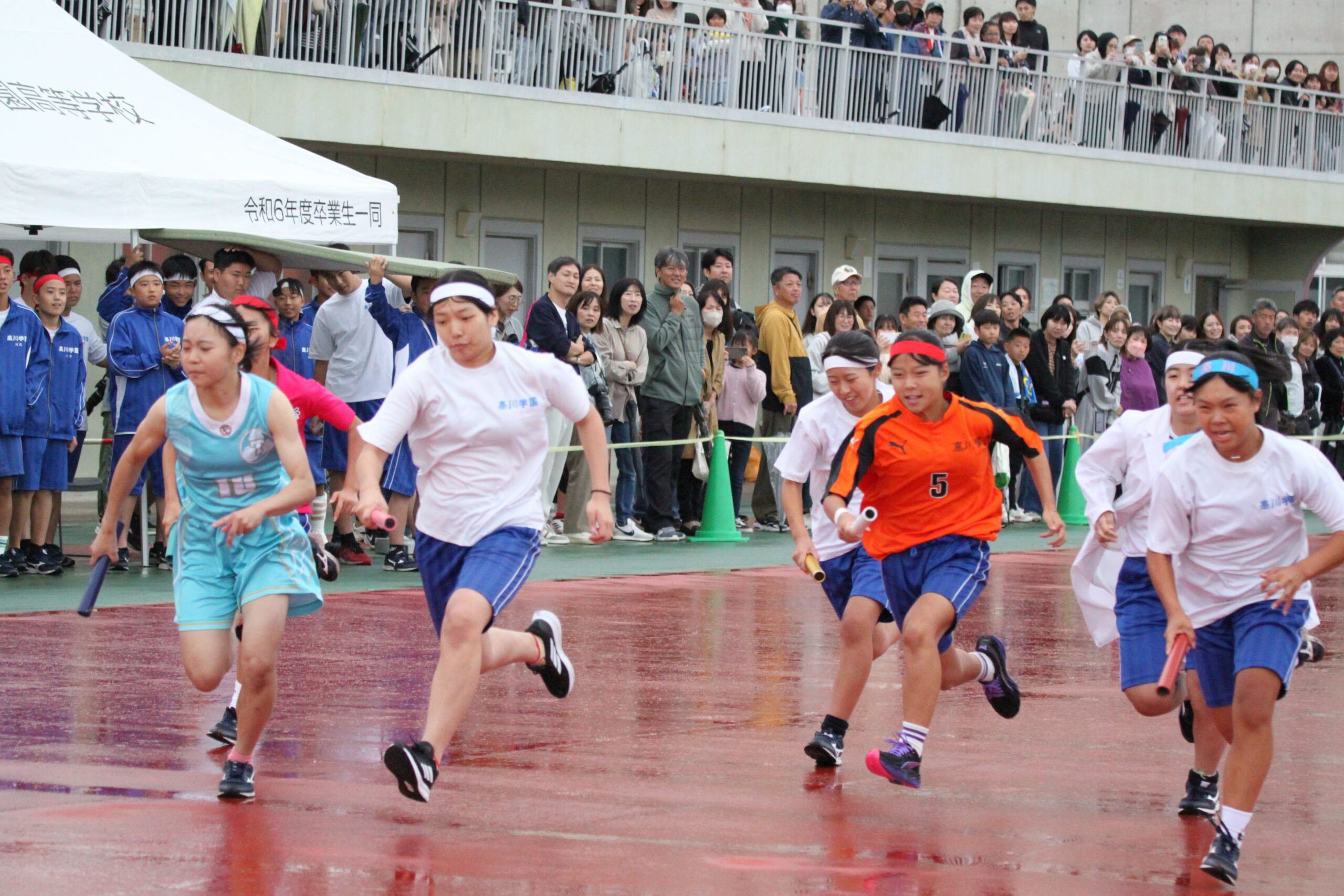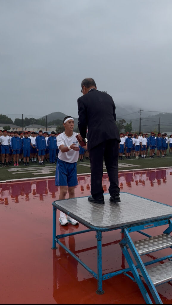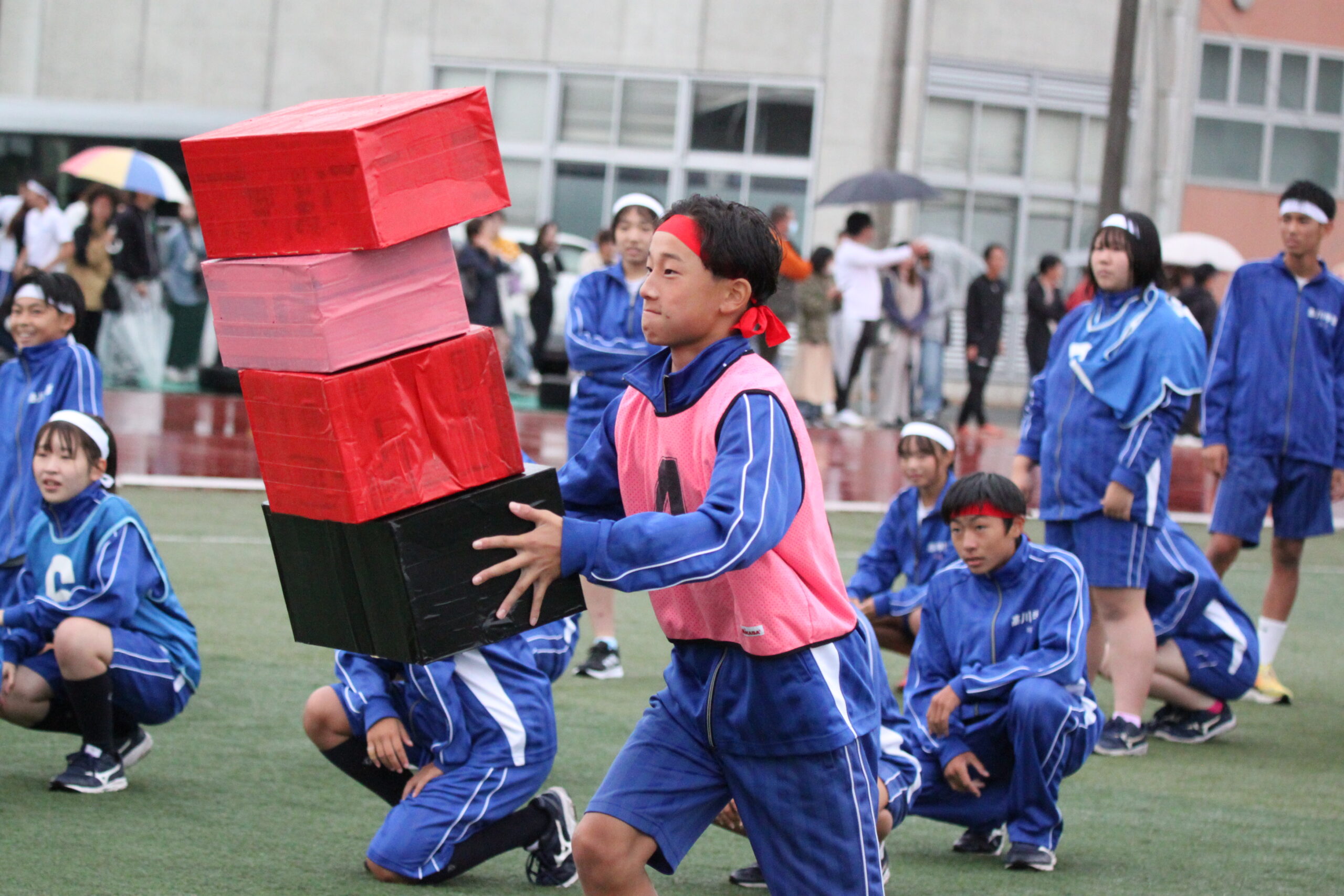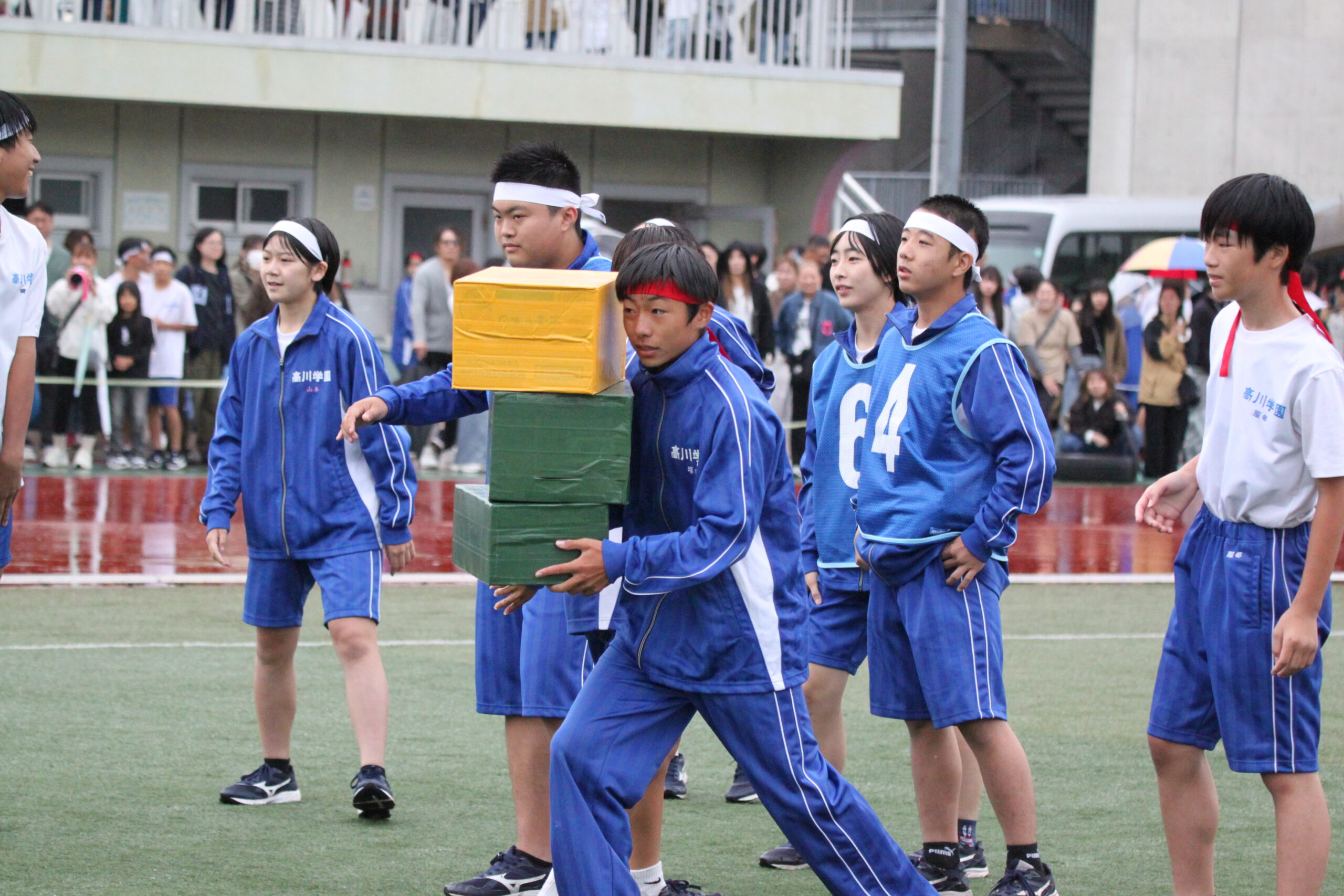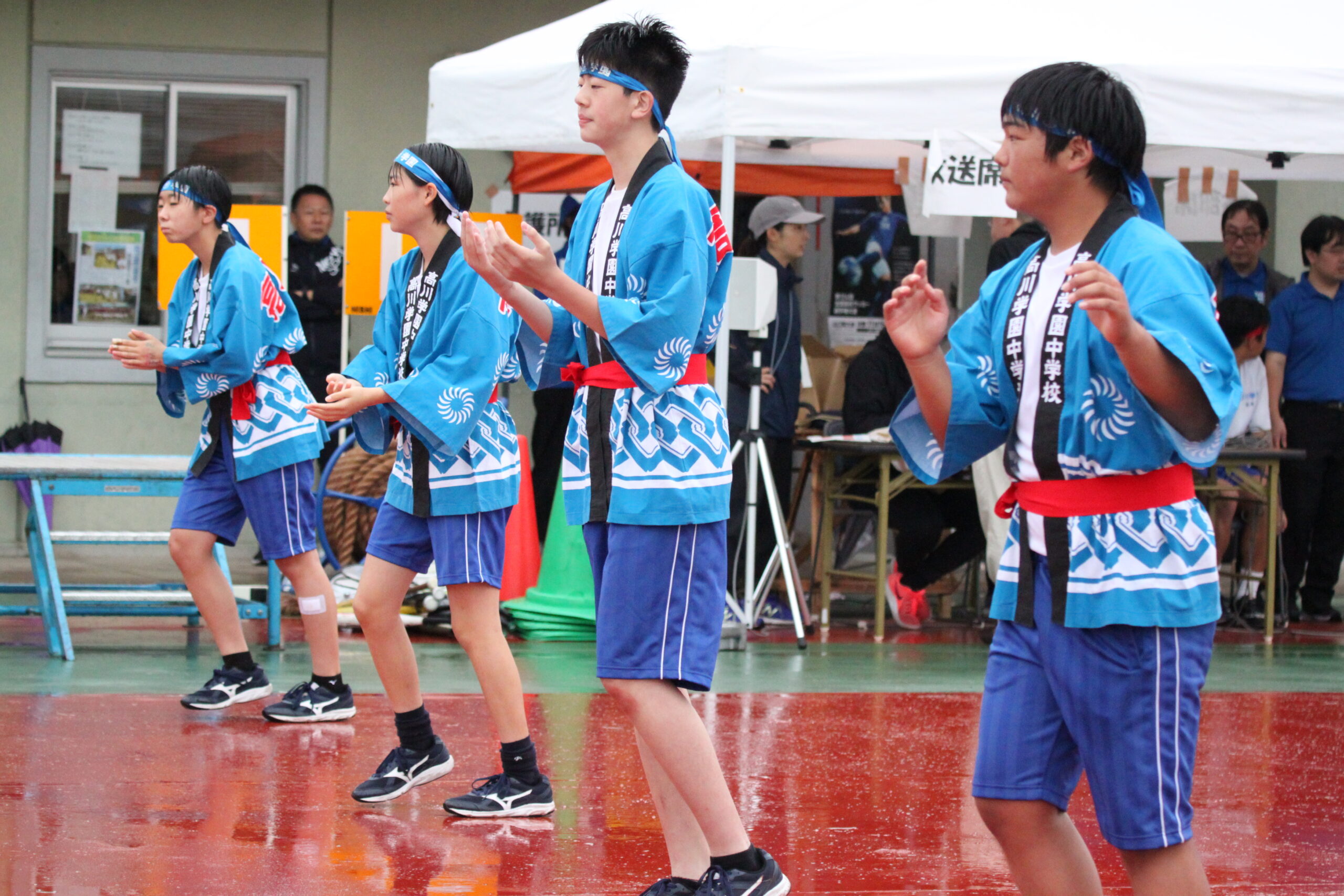 10月25日(土)中学校体育祭が行われました。朝から大雨で順延も検討されましたが、保護者の皆様も多数来校されており1時間遅れになりましたが、決行することとなりました。