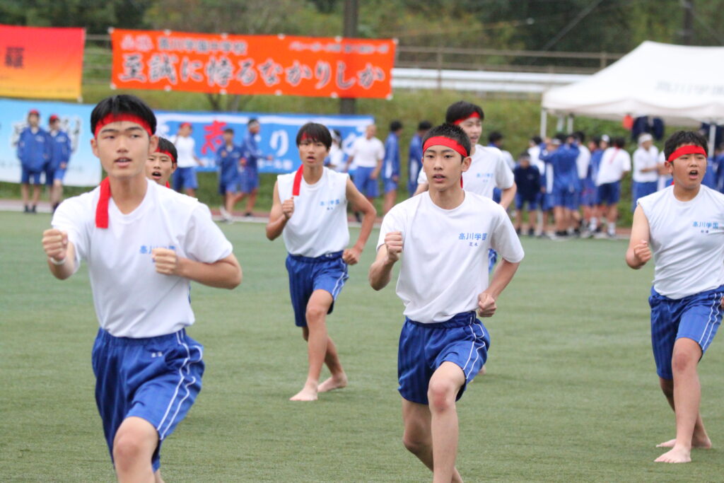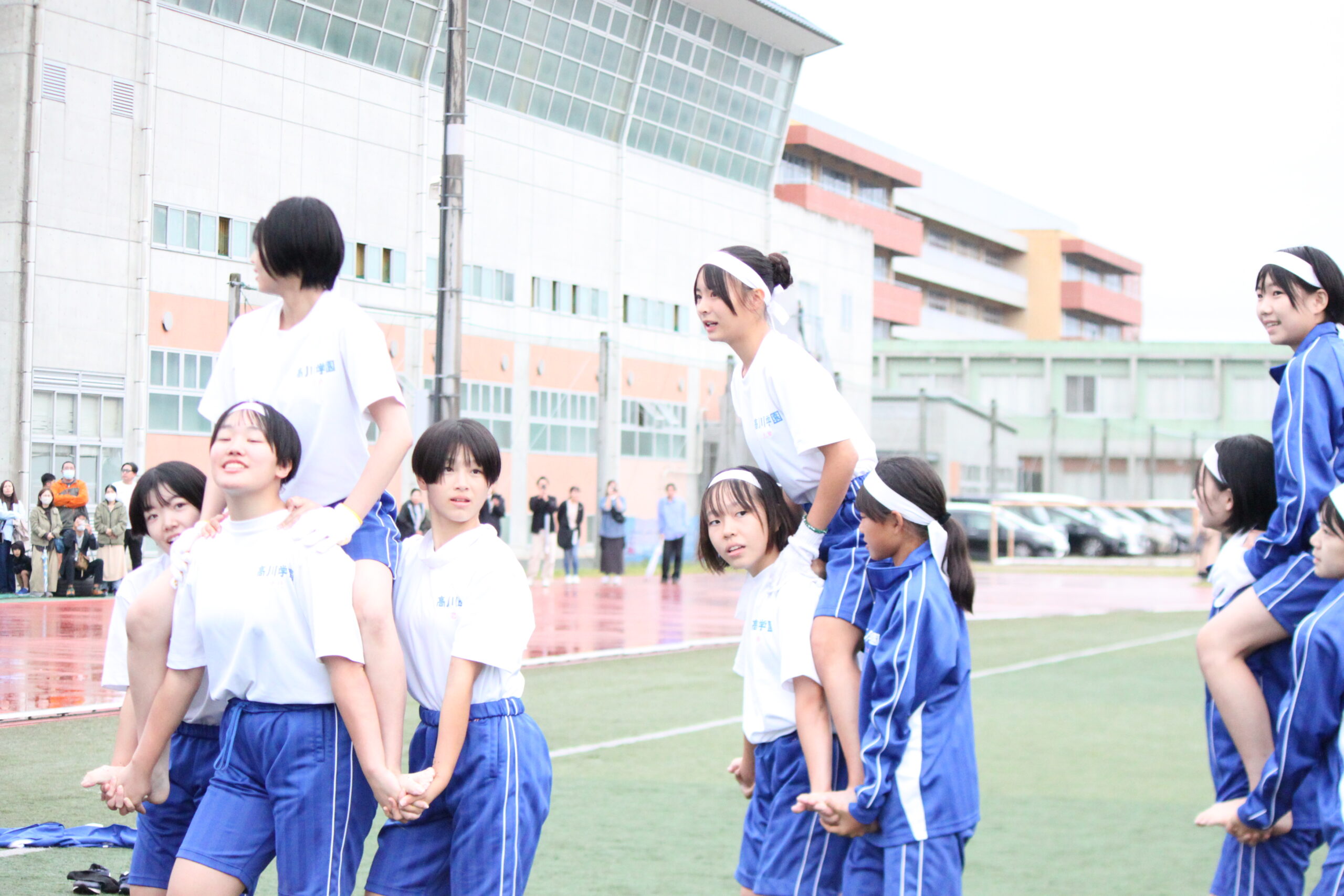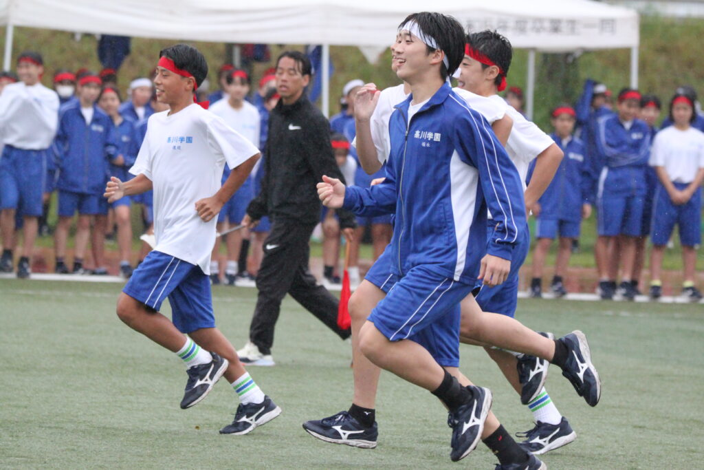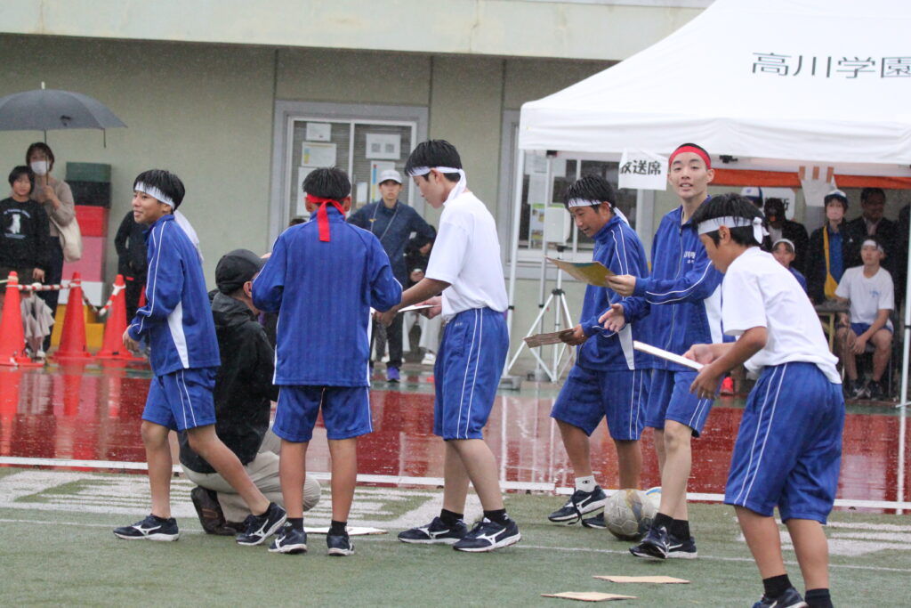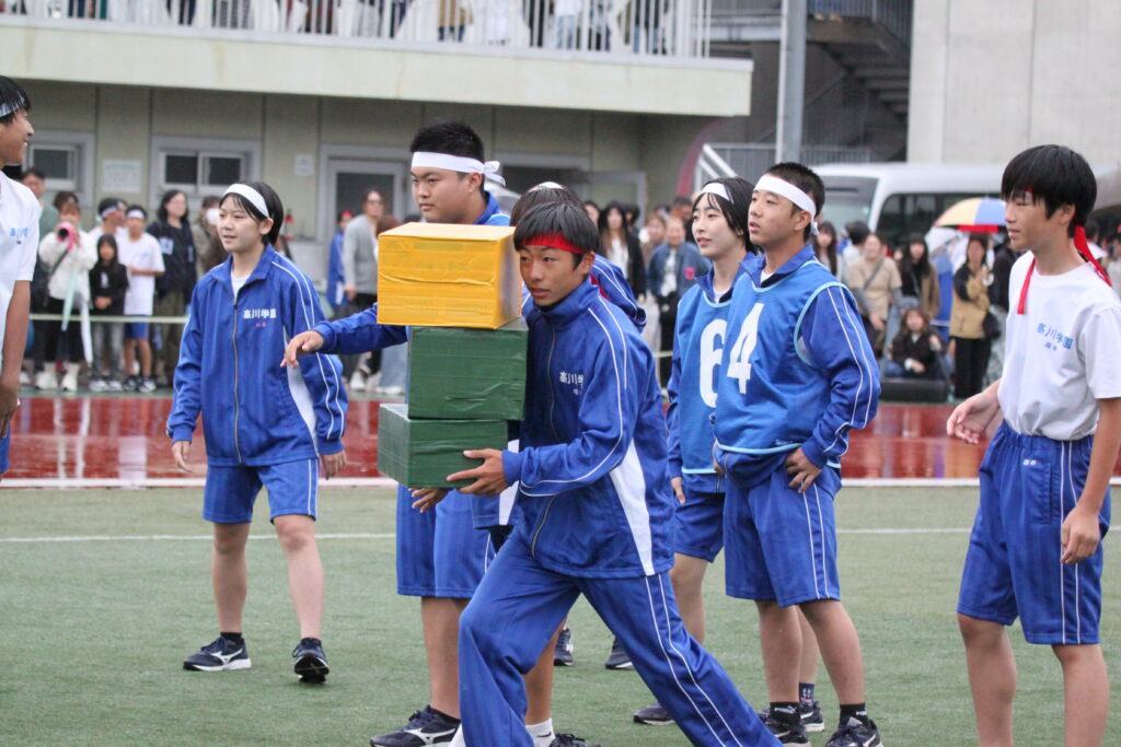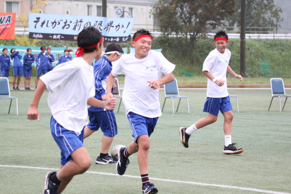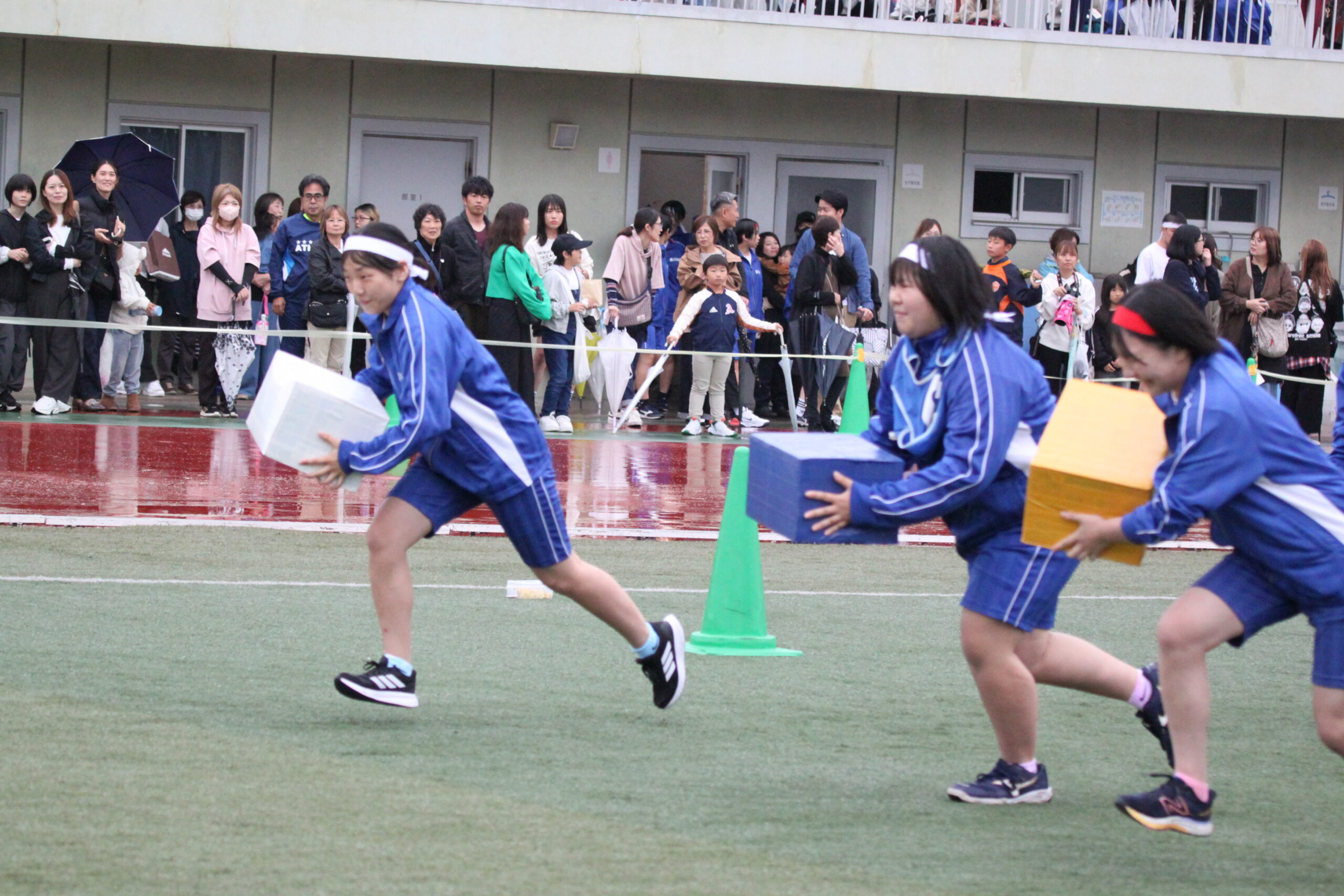 10月25日(土)中学校体育祭が行われました。朝から大雨で順延も検討されましたが、保護者の皆様も多数来校されており1時間遅れになりましたが、決行することとなりました。