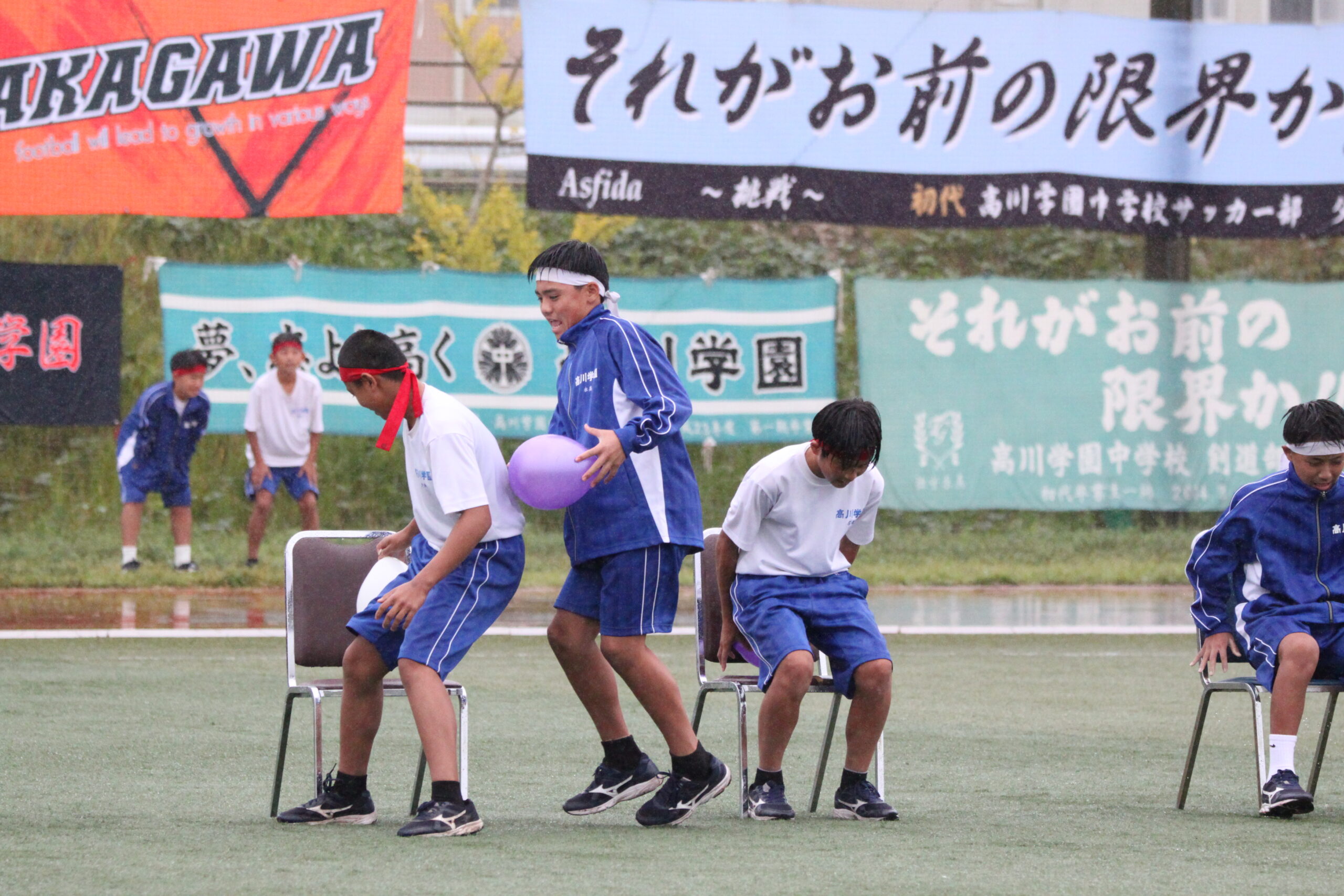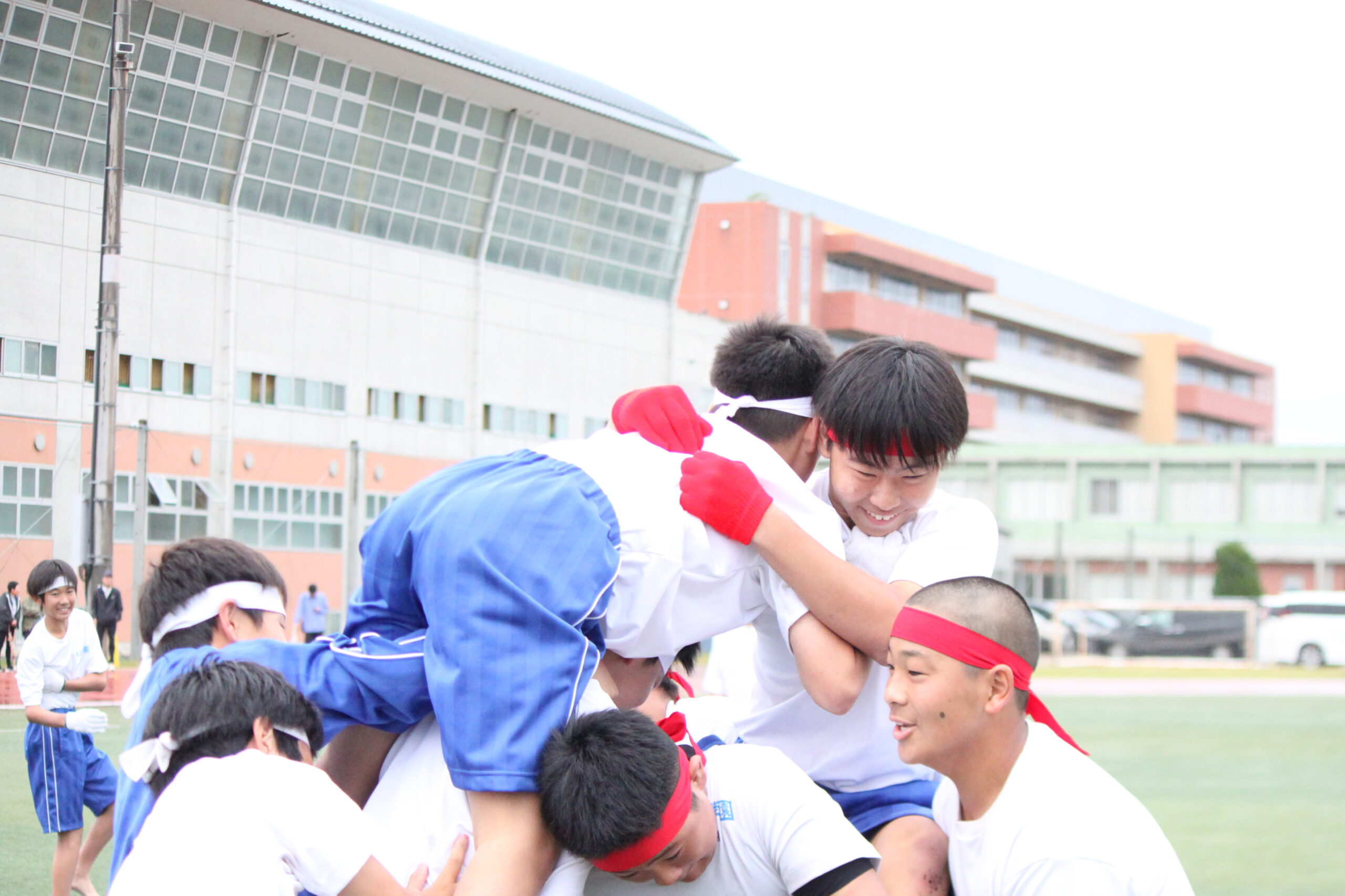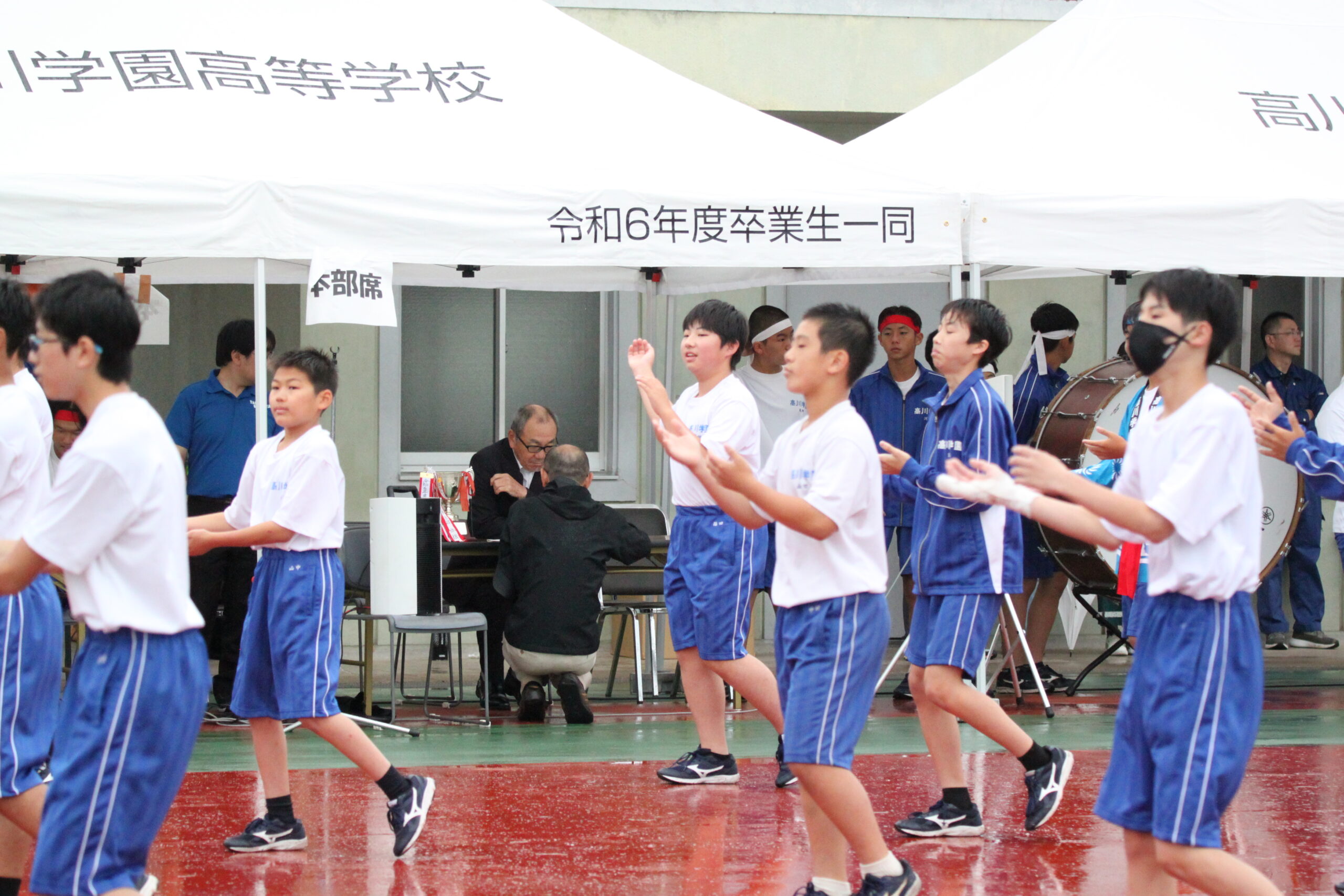 <開会式><100m走><障害物走><宅配リレー><1年生による防府踊り><2年生による高川旋風><3年生によるエッサッサ><部活動リレー><綱引き><騎馬戦><紅白対抗リレー><閉会式>無事に全競技を終えることができました。最後まで多くの保護者の方に見守っていただきました。ありがとうございました。