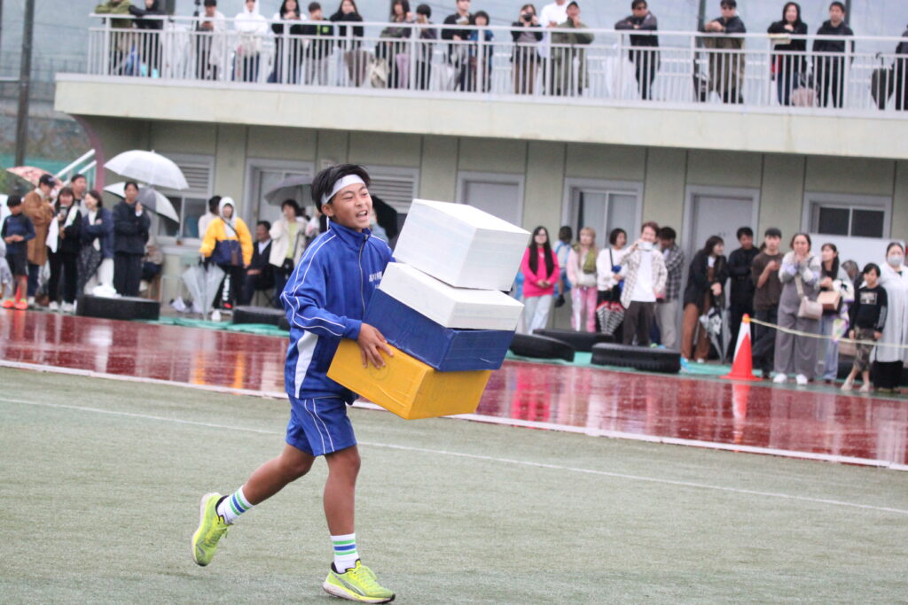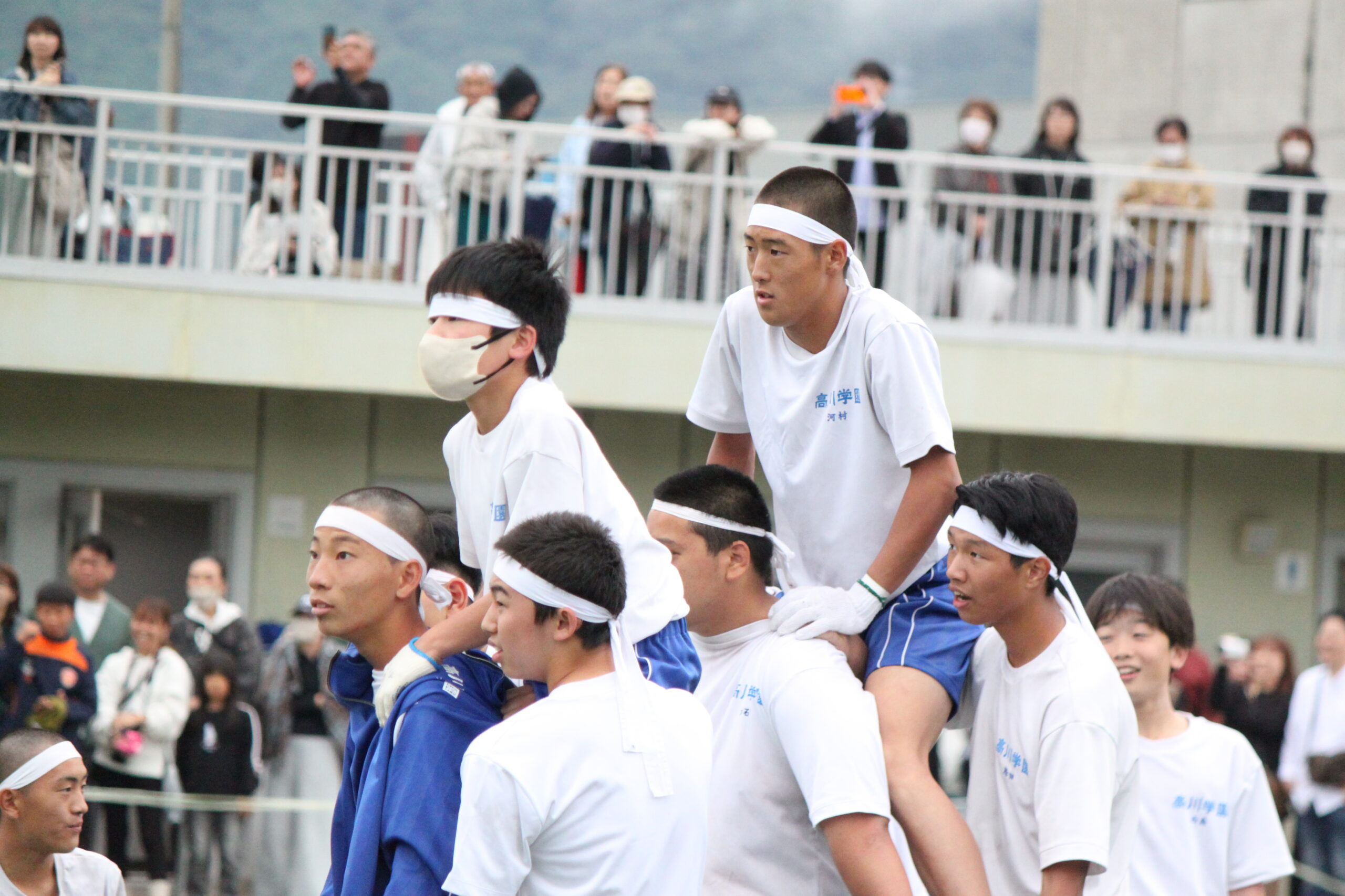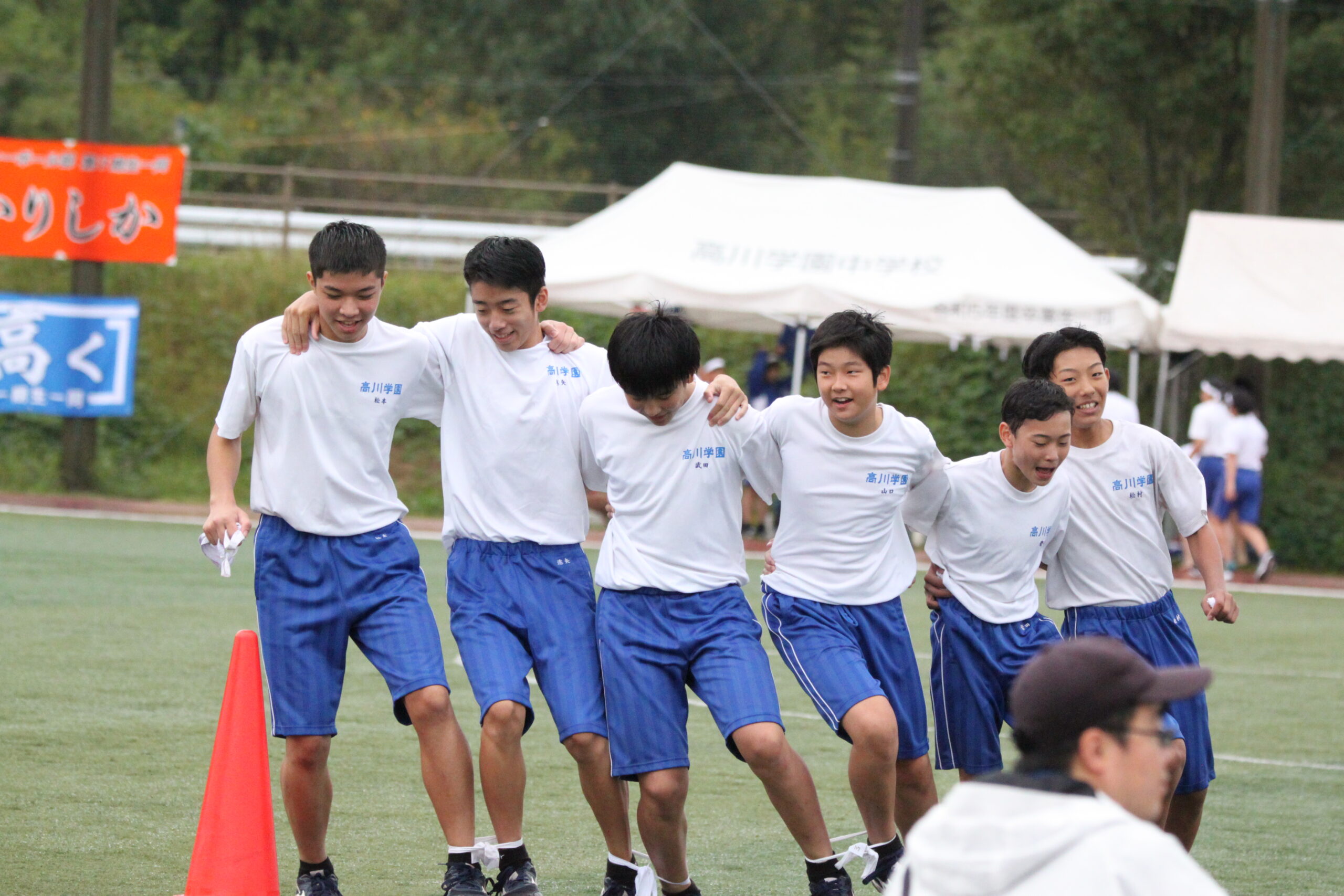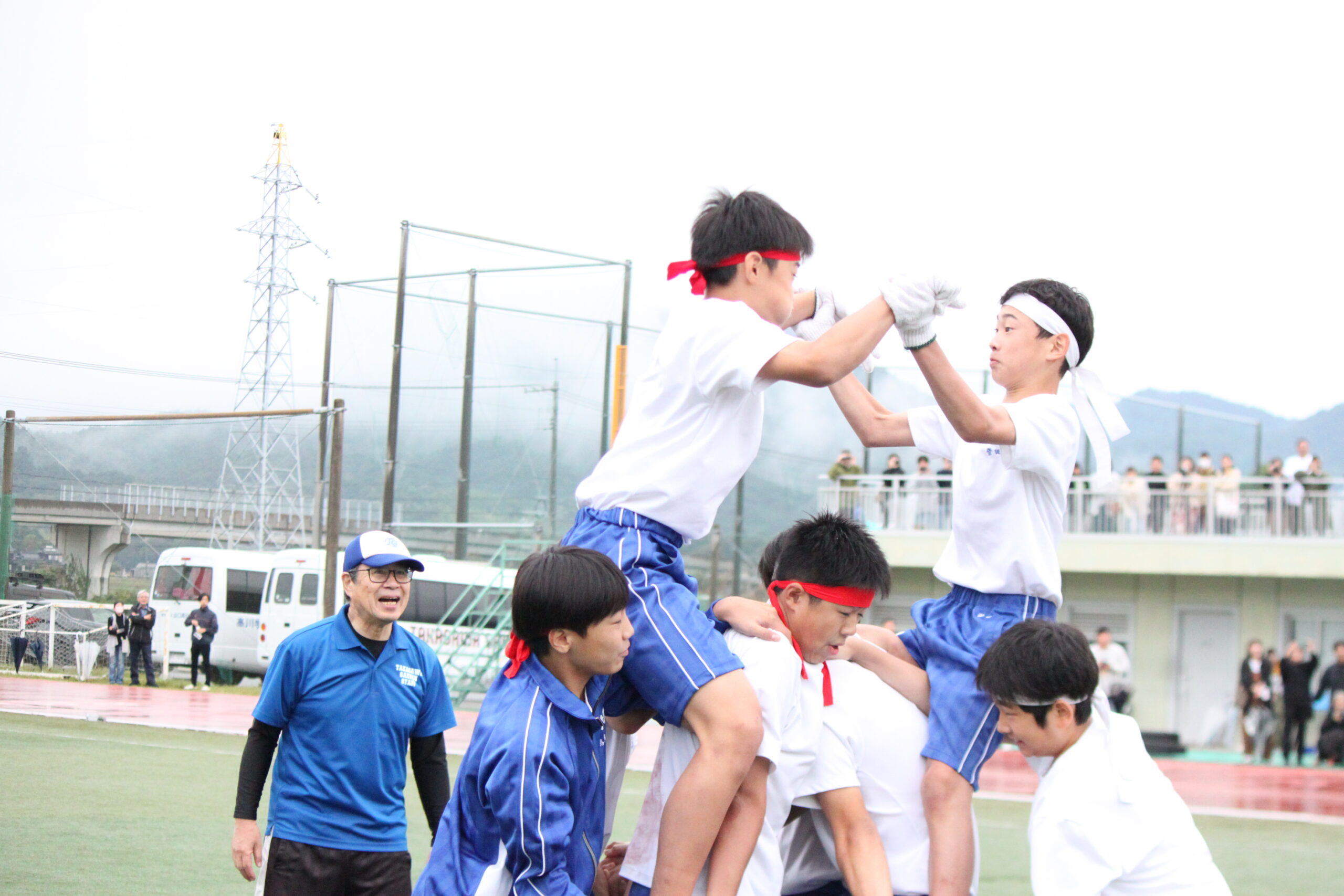 <開会式><100m走><障害物走><宅配リレー><1年生による防府踊り><2年生による高川旋風><3年生によるエッサッサ><部活動リレー><綱引き><騎馬戦><紅白対抗リレー><閉会式>無事に全競技を終えることができました。最後まで多くの保護者の方に見守っていただきました。ありがとうございました。