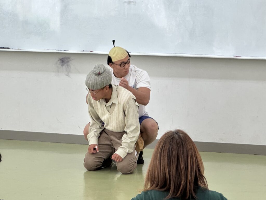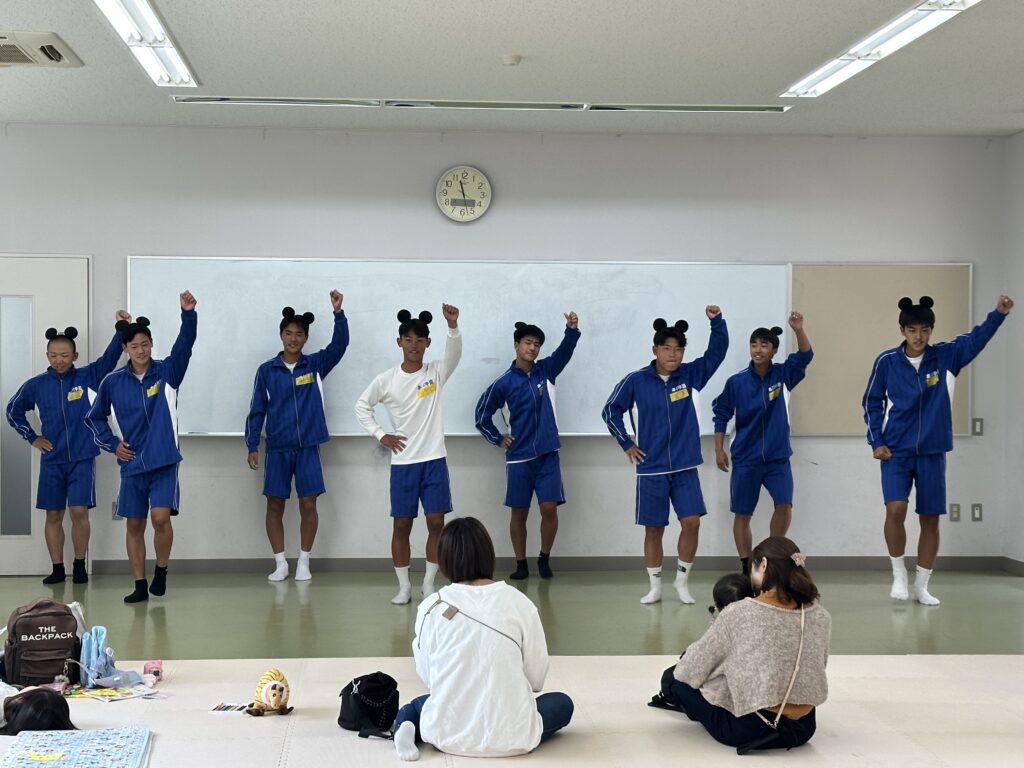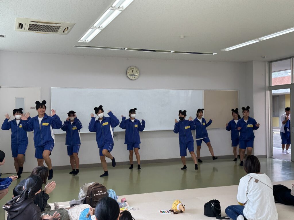 11月4日(火)に高校1年4組がふれあい体験を実施しました。定員いっぱいで、大盛況となりました。まずはクラスで準備した出し物を披露しました。