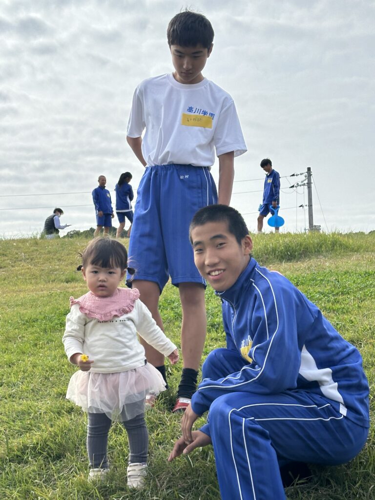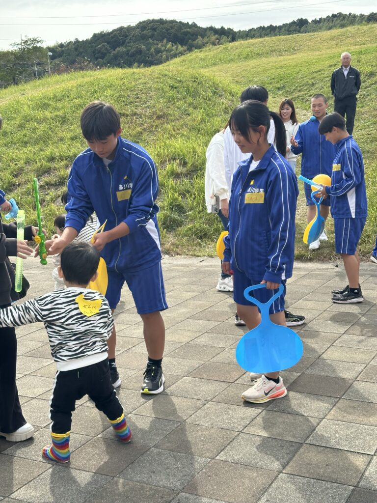 終わったら、ふれあいタイム。天気が良くて外遊びを楽しみました。