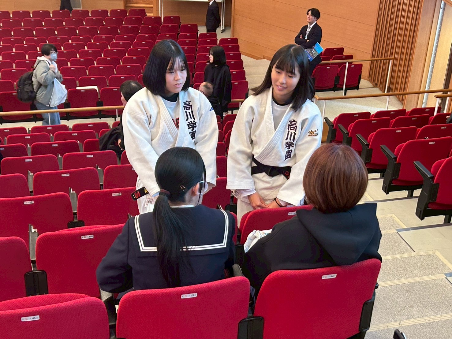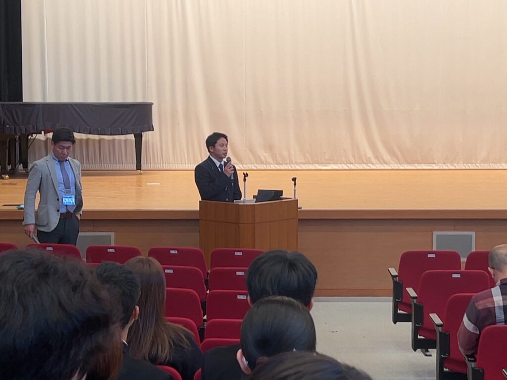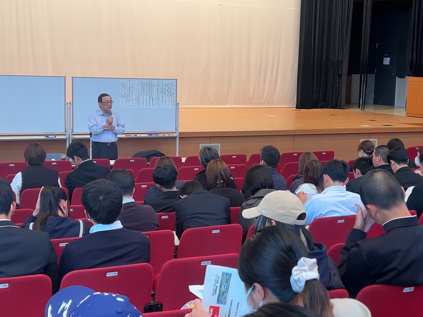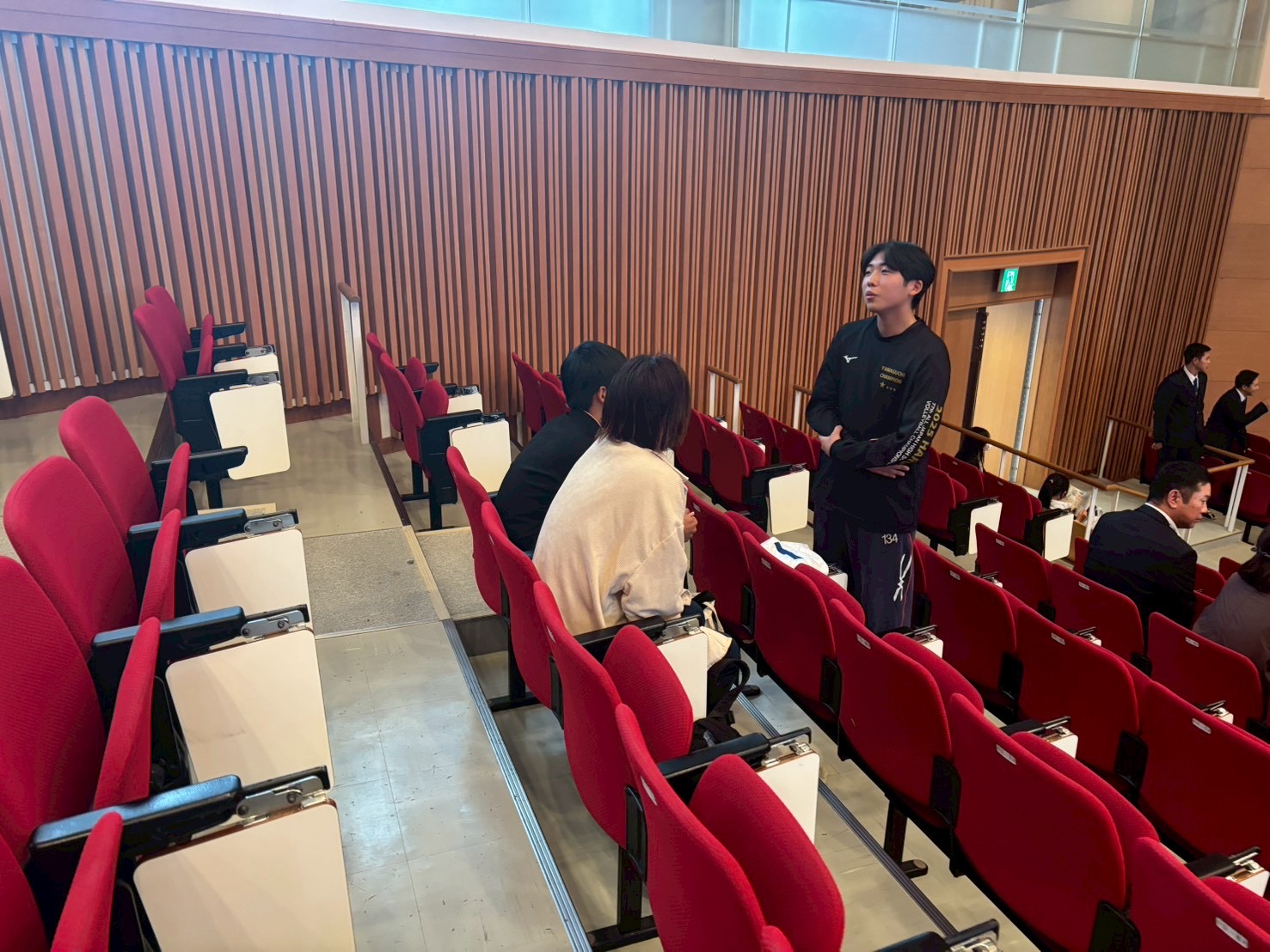 たくさんの方にご参加いただきました。生徒によるクイズコーナーでは、食堂の人気メニューや講堂内の収容人数など、面白い内容が出題され、参加者の中から笑いが漏れる場面もありました。学食体験では5つのセットメニューの中から選んで試食していただきました。残念ながら、クイズコーナーで紹介された一番人気のメニュー「油そば」は、今回のメニューには入っていませんでした。ぜひ、入学後に食堂で食べてみてください。