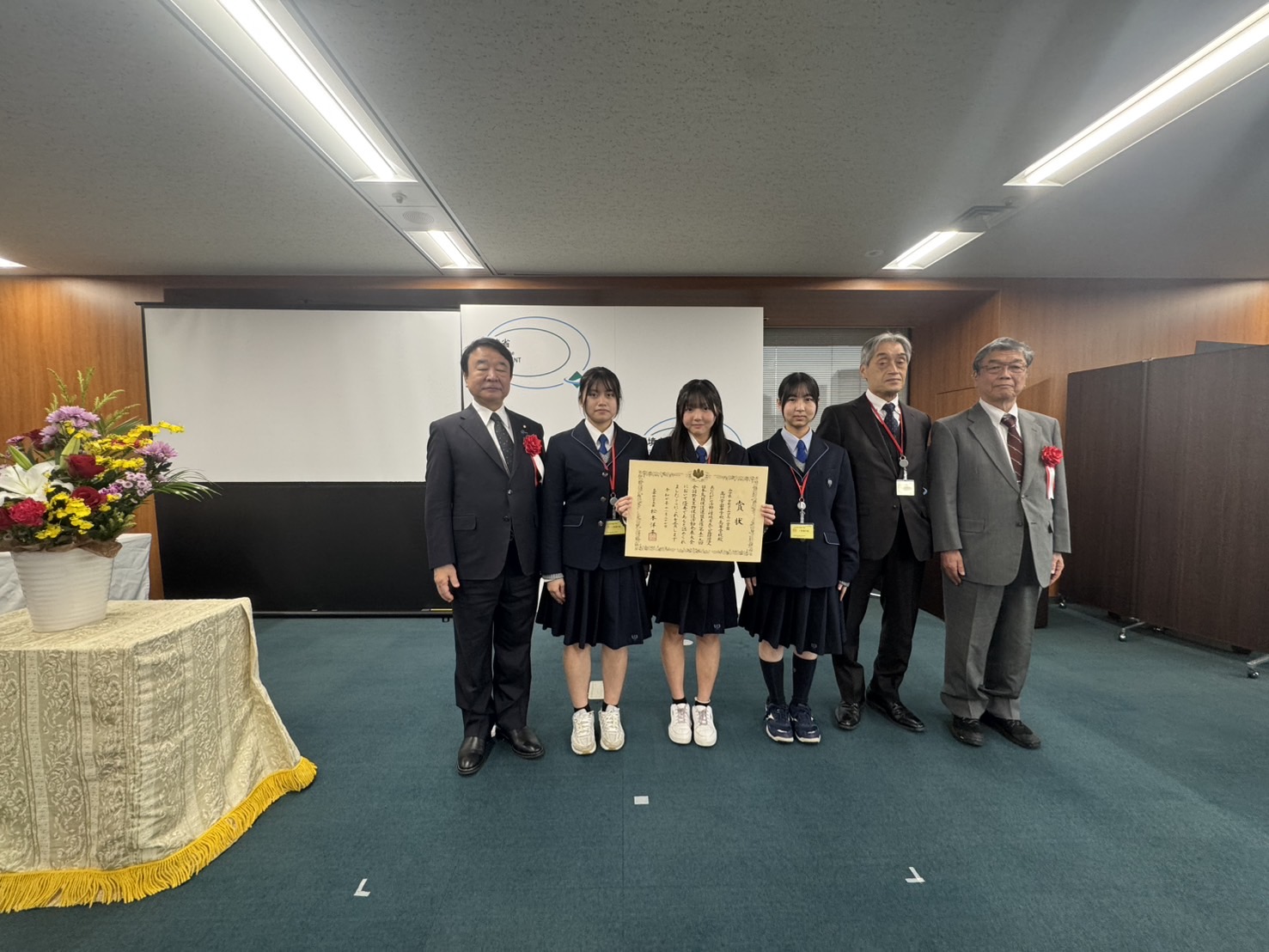 11月27日(木)環境省第1会議室にて令和7年度第59回全国野生生物保護活動発表大会」が開催されました。この大会は、小中高の野生生物保護活動を募集し、有識者が審査します。今回、科学部は「文部科学大臣賞」をいただきました。発表大会では、受賞校9校が集まり、活動内容を報告し表彰されました。本校科学部は中高の部員3名が「本州西端のオオサンショウウオをまもる再生活動と観察会の主催」について発表しました。
