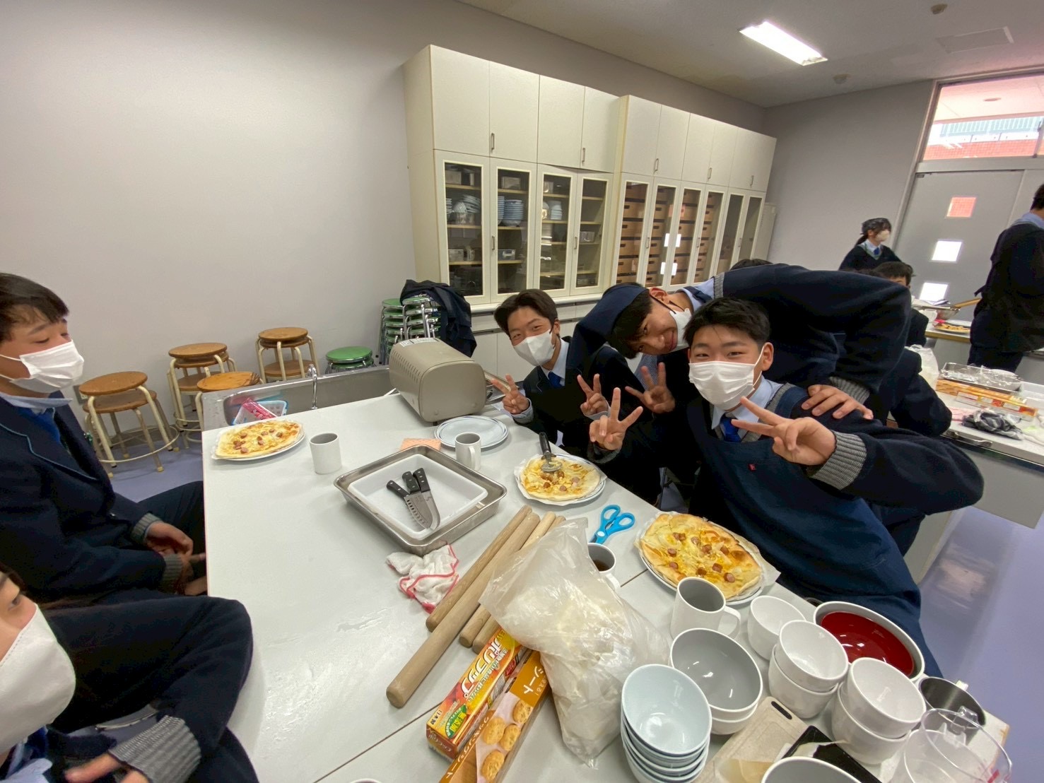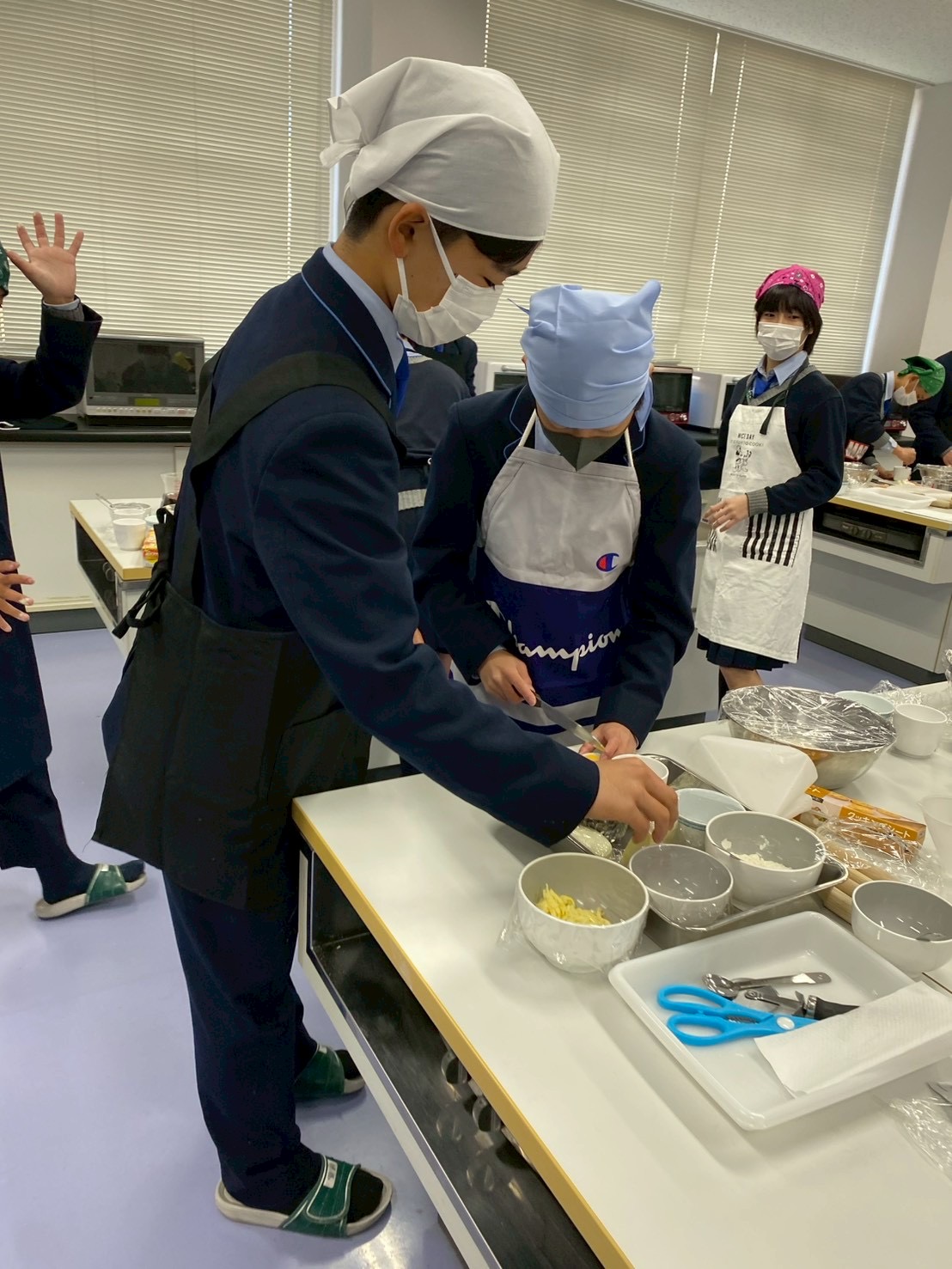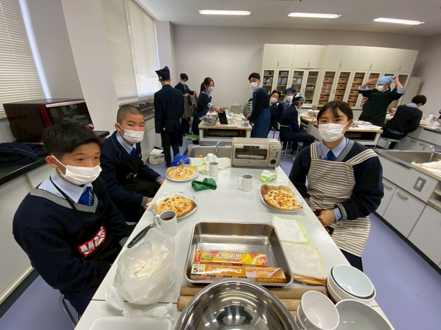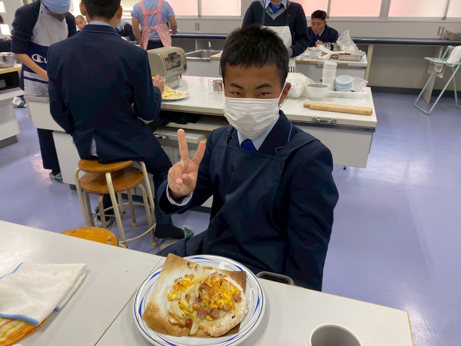 1月14日(水)に中学2年4組が調理実習を行いました。もちろん、作るのはピザ!!