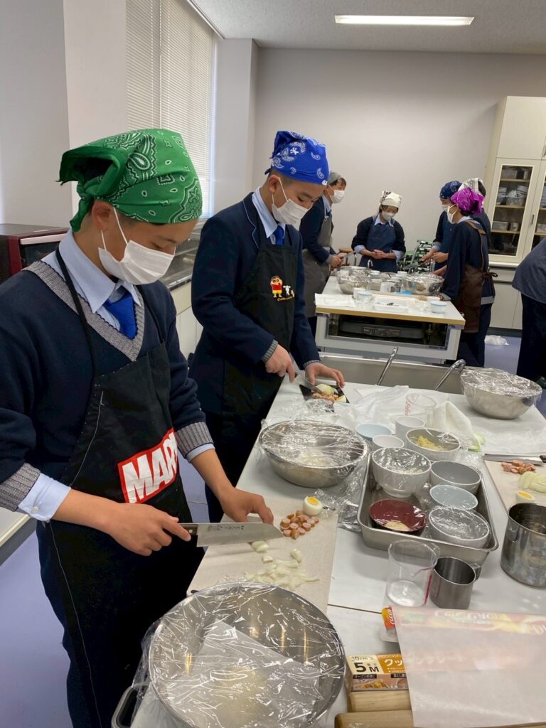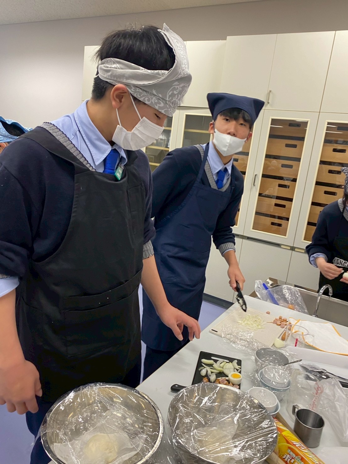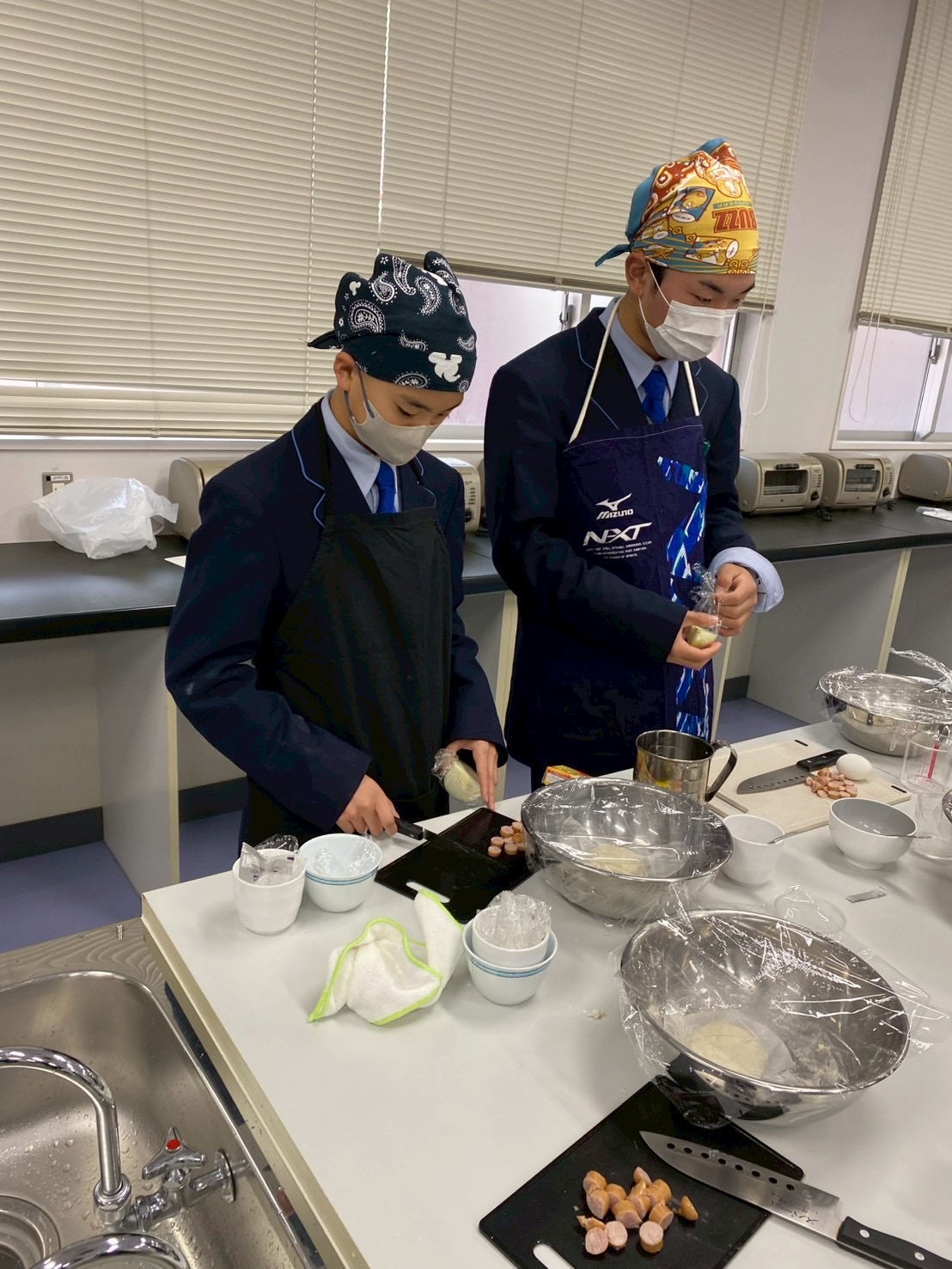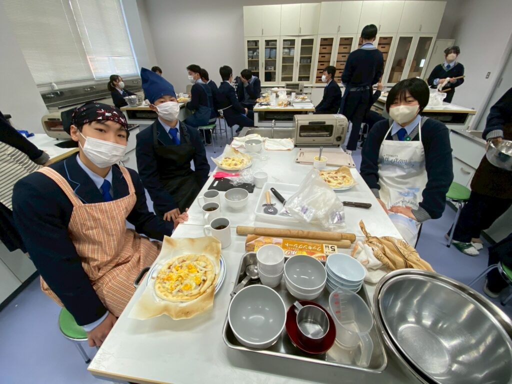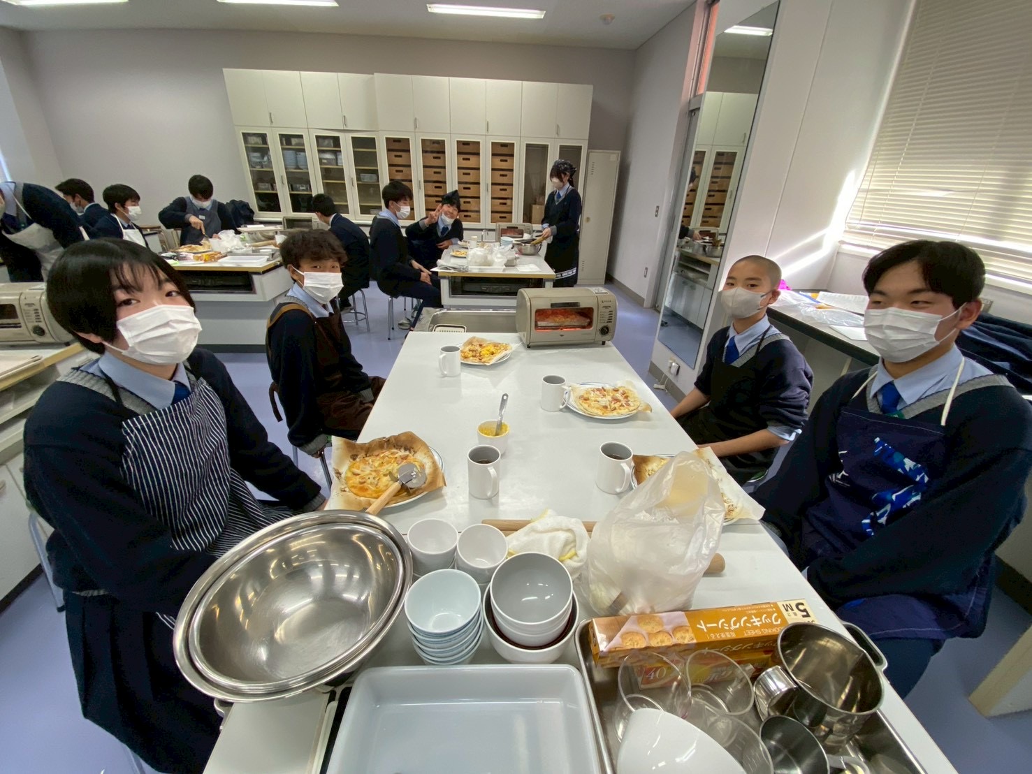 1月14日(水)に中学2年4組が調理実習を行いました。もちろん、作るのはピザ!!