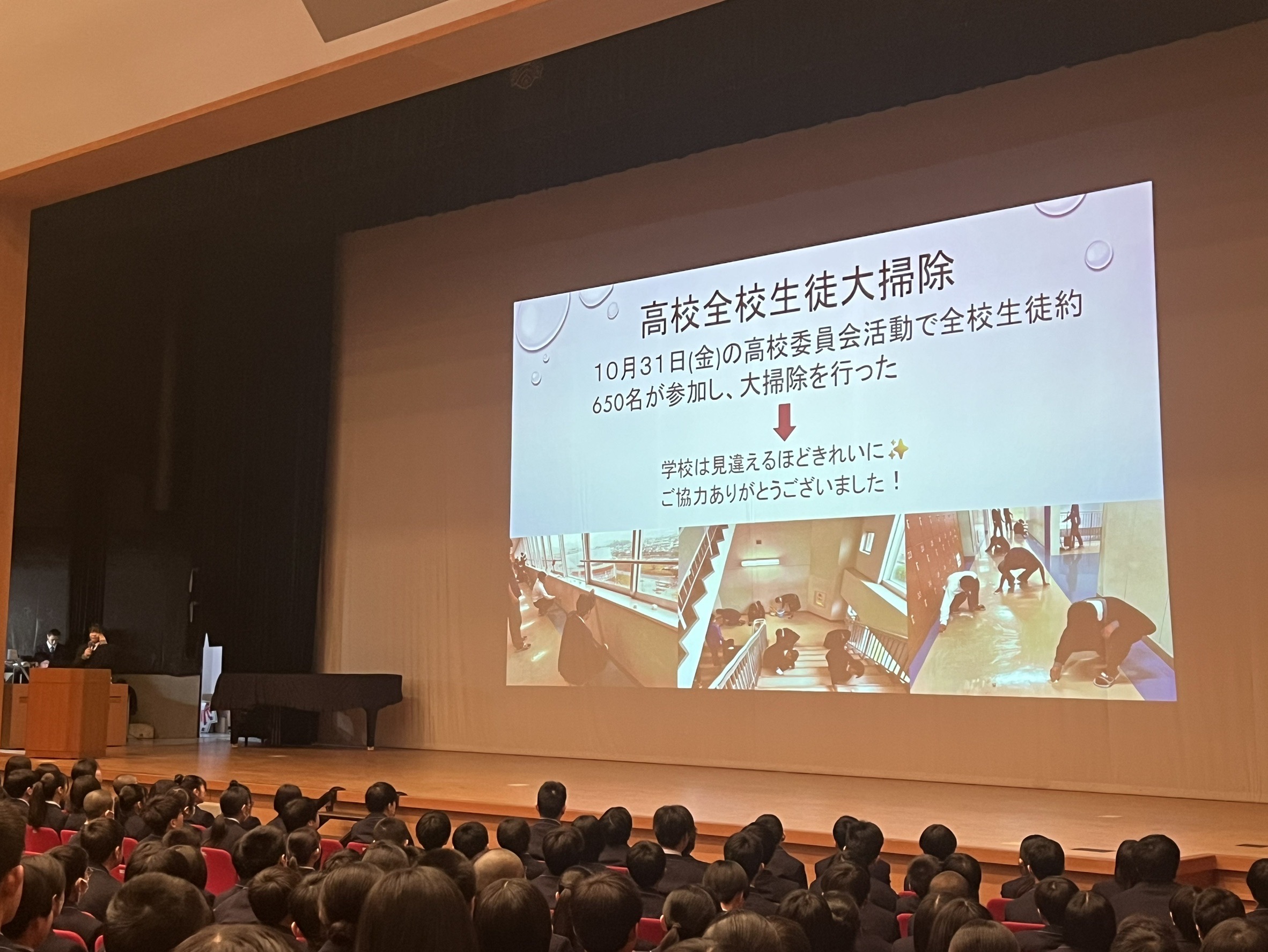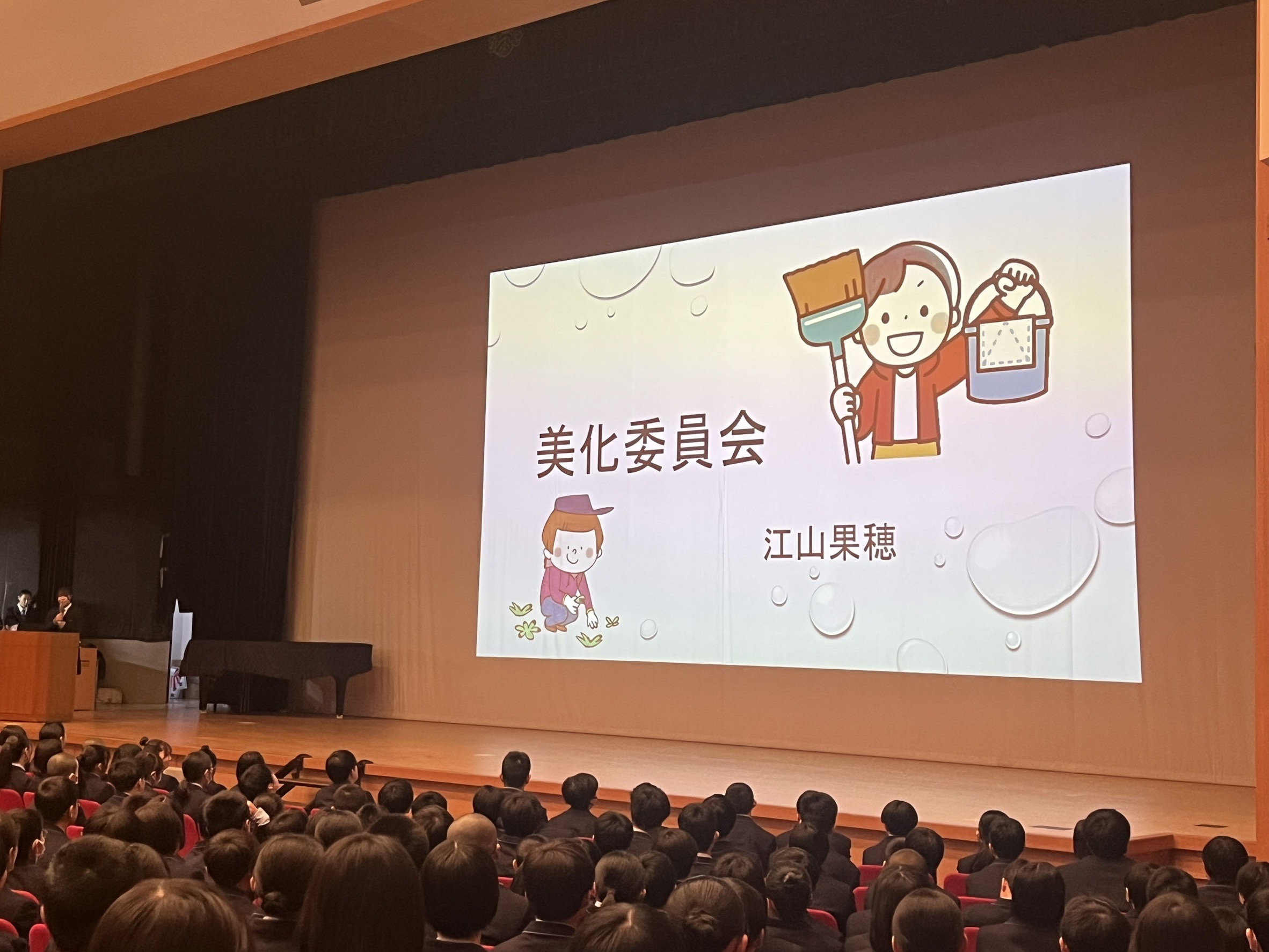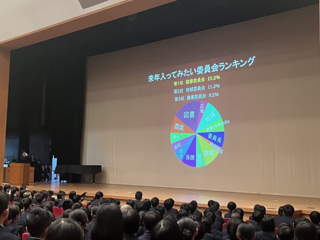 1月16日(金)1時間目に、中高合同で部署活動報告会を行いました。各委員会ごとにリーダーが1年間の活動内容や成果、来年度に向けての抱負を話しました。来年度も、よきリーダーのもと、よりよい学校にする為に生徒一人一人が主体的に活動していきたいですね。