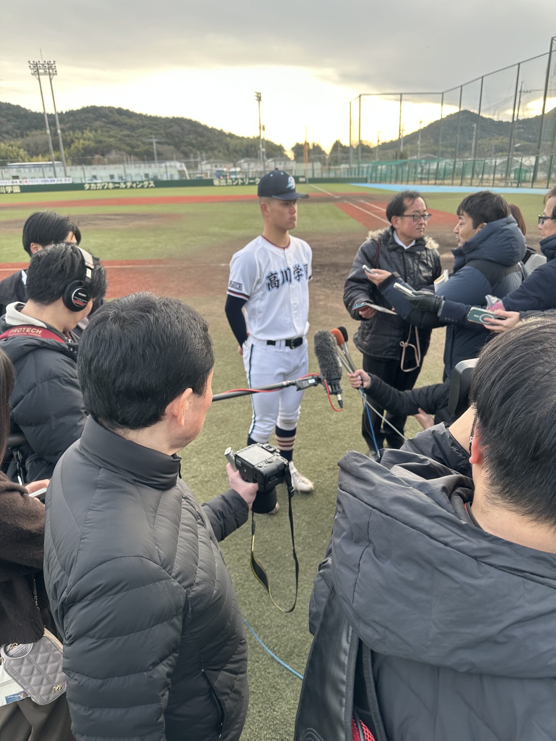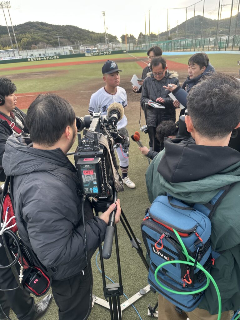 発表される瞬間を中高硬式野球部と高校硬式野球部保護者で見守りました。取材陣にも見守られるなかで、無事に「高川学園」の名前が呼ばれました。