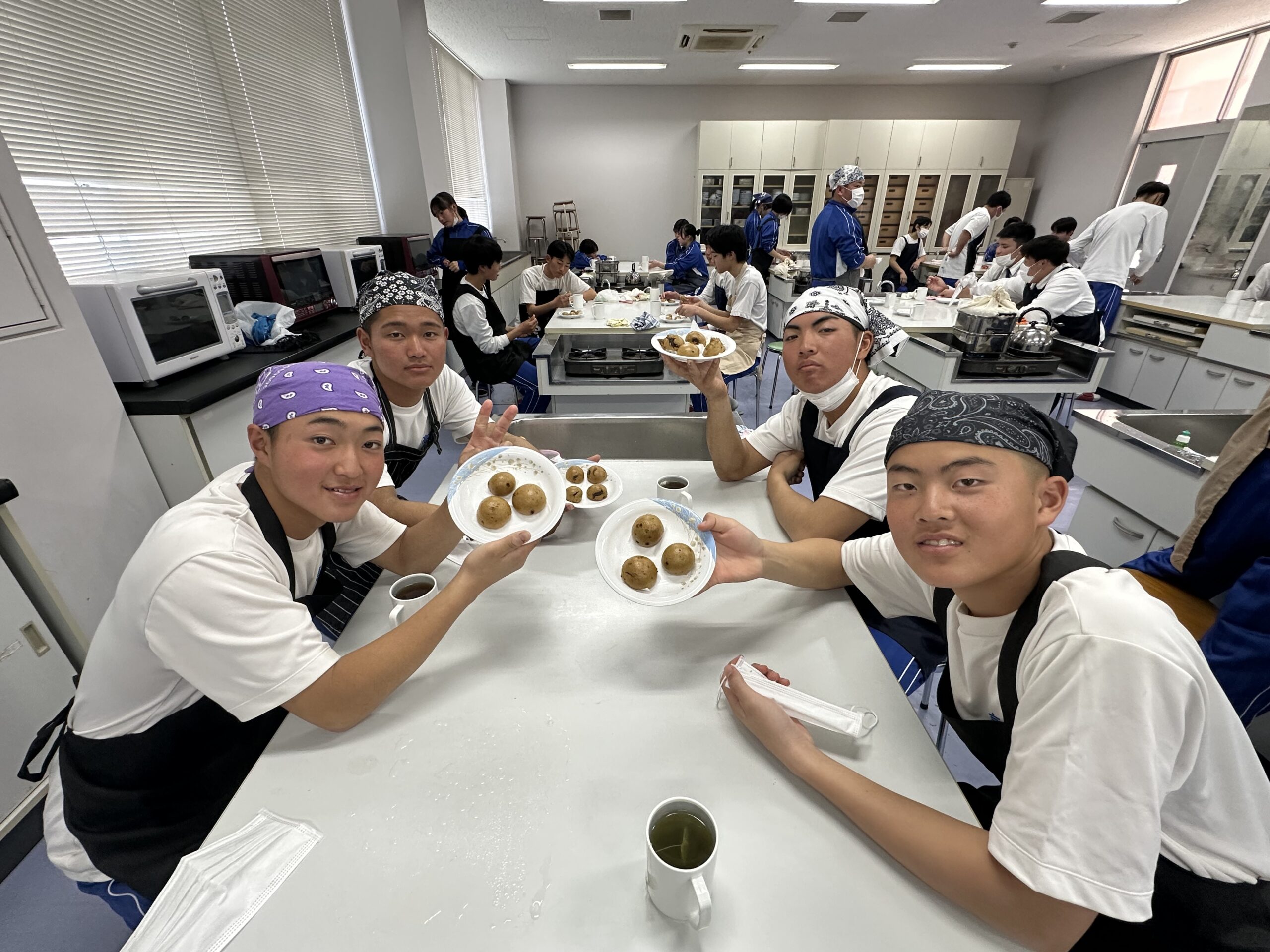 2月4日(水)に高校1年2組が調理実習をしました。今年度最終日。ほとんどの生徒が、人生で最後の調理実習でした。