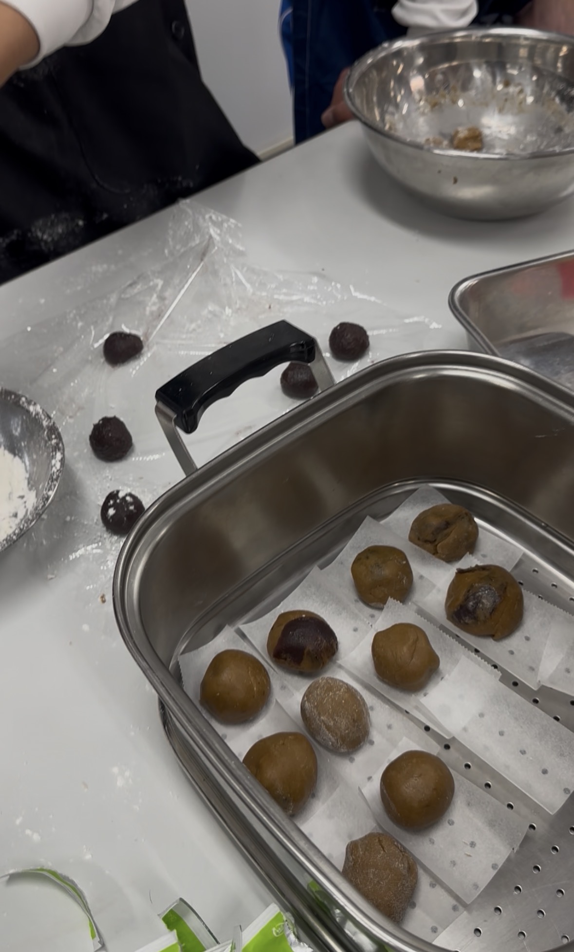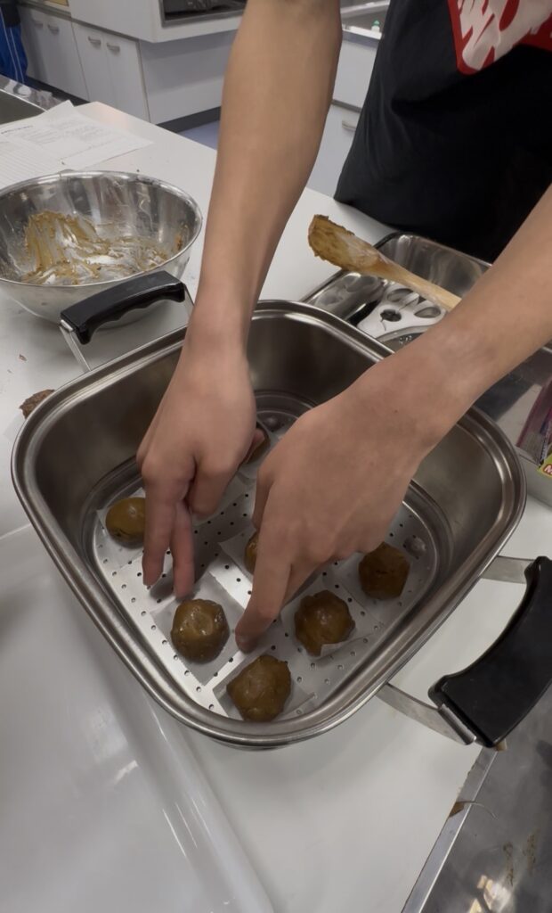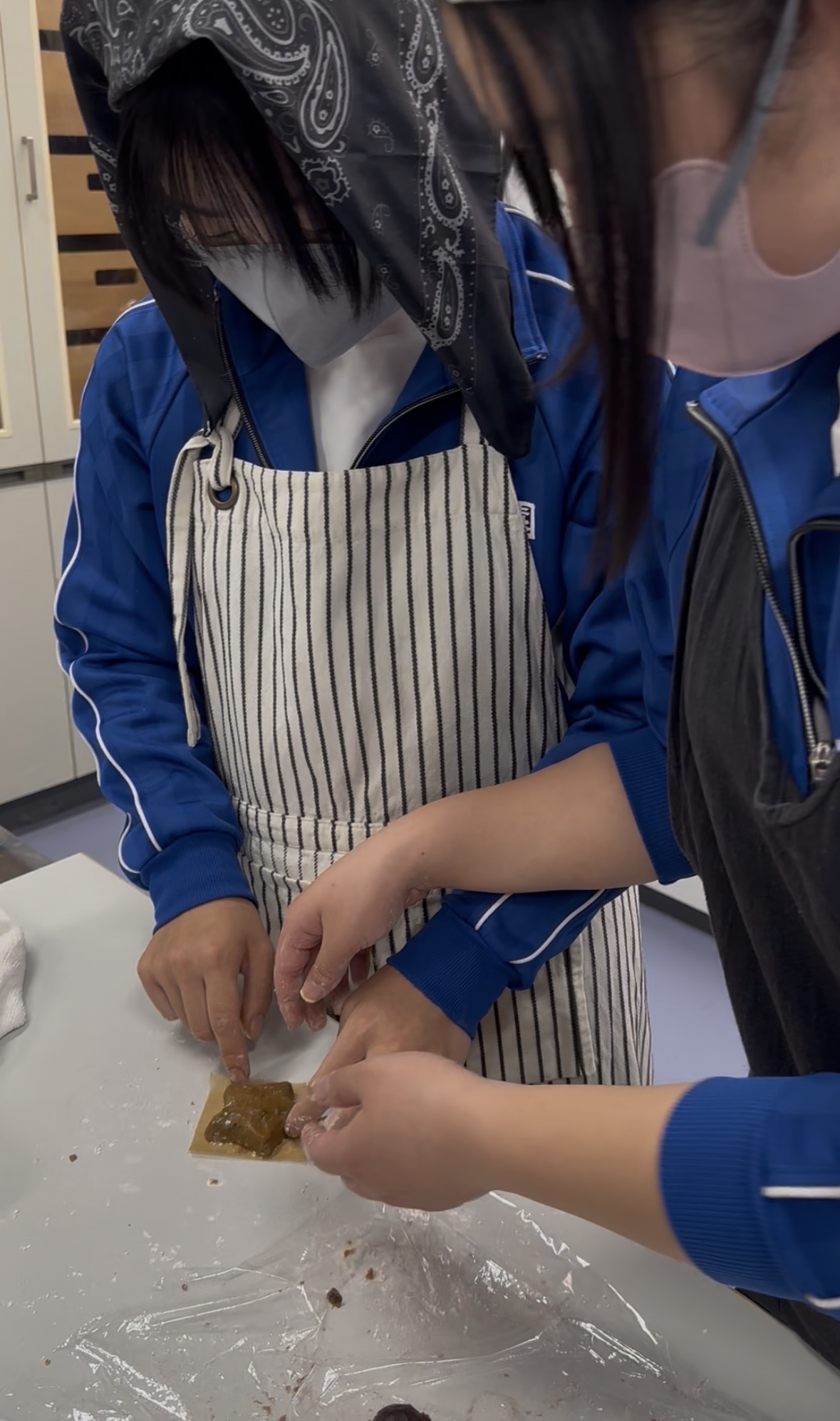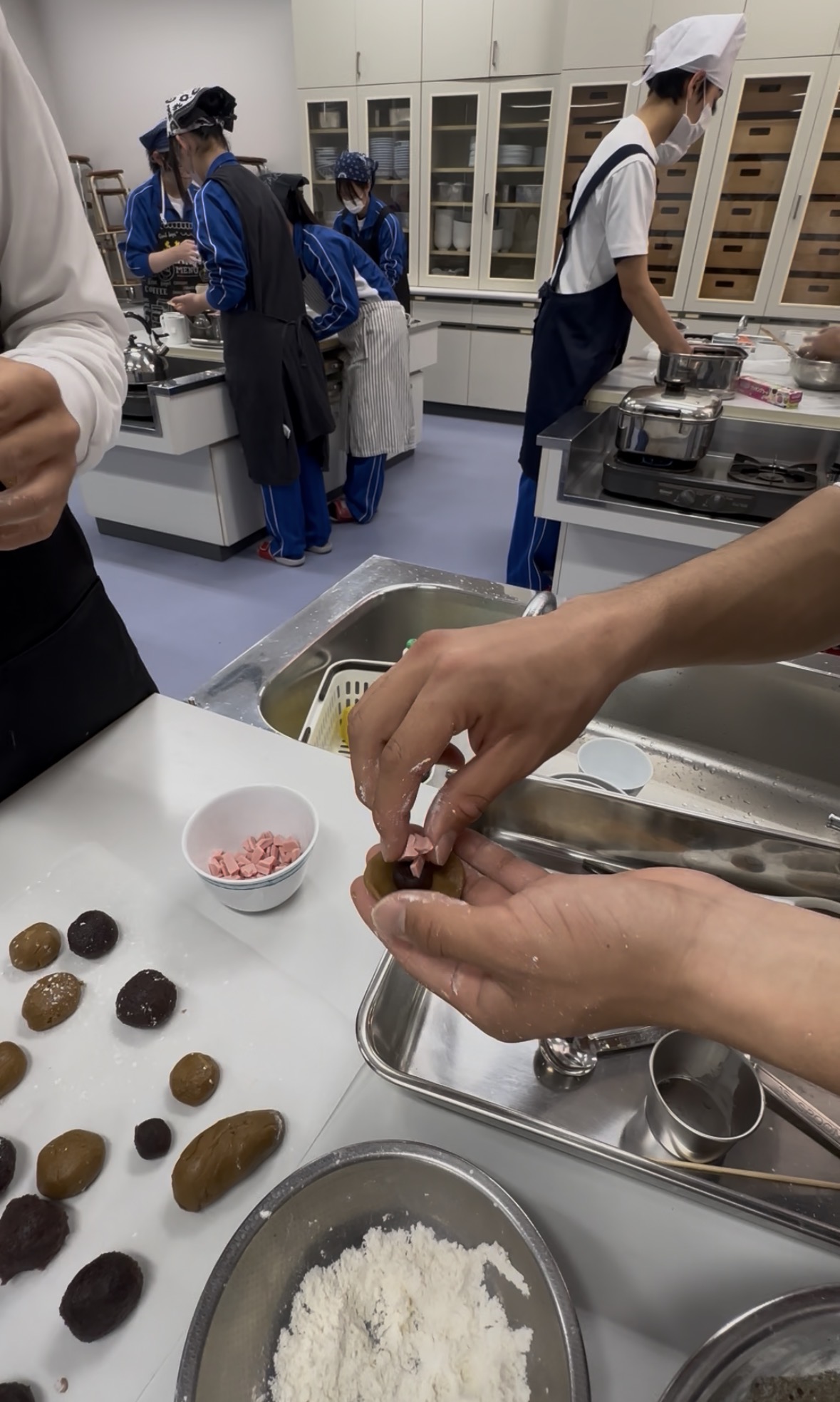 イチゴチョコを持参して、あんこと一緒に包んでいる班がありました。