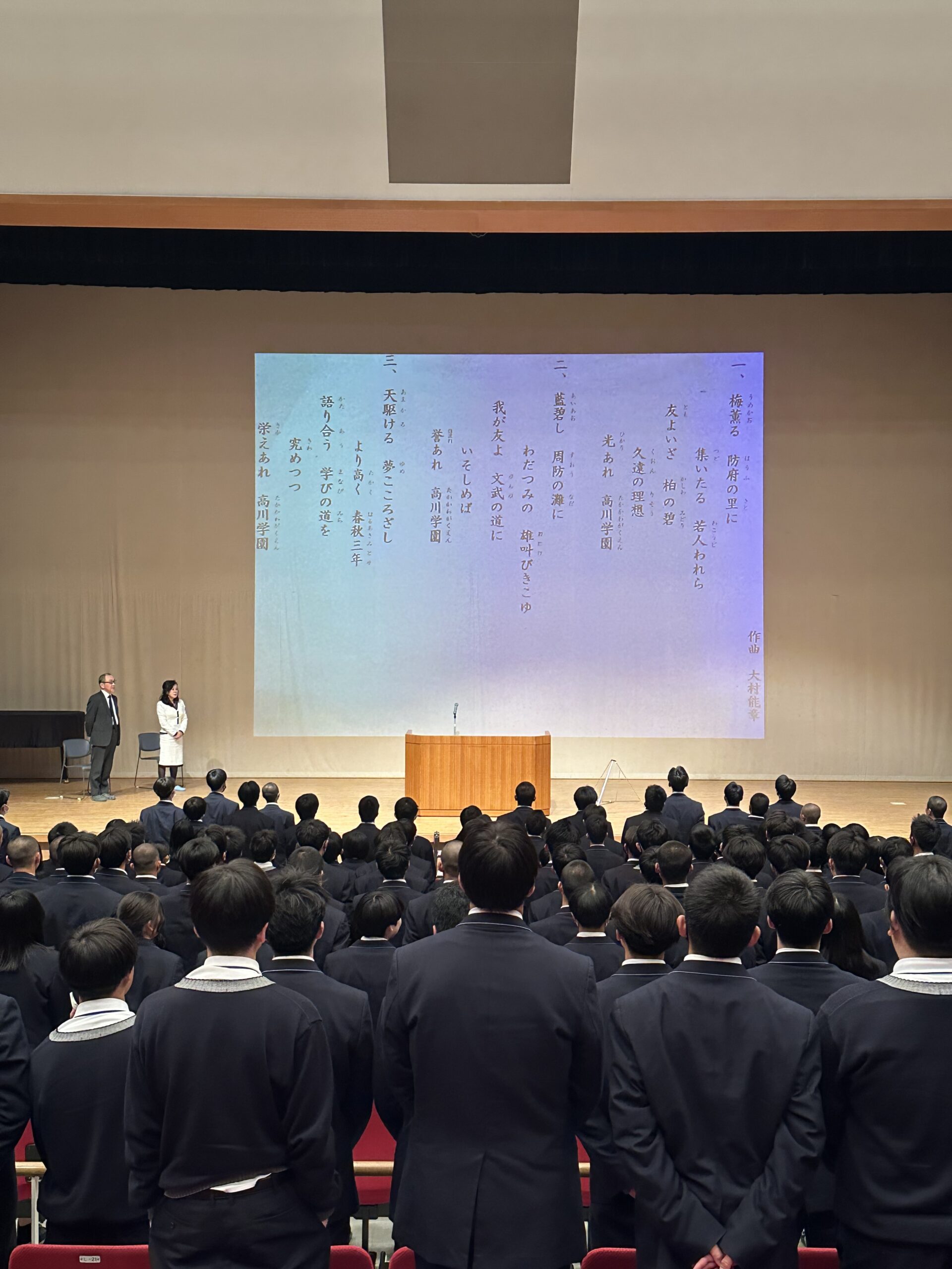 おはようございます。3年生がいなくなってどんな様子か気になっていましたが、座る姿がきちんとしていていいですね。毎日寒い日が続いていますね。昨日、高校サッカー部と高校硬式野球部の部活の様子を見に行きました。男子サッカー部が寒い中で走っていてすごかったですね。