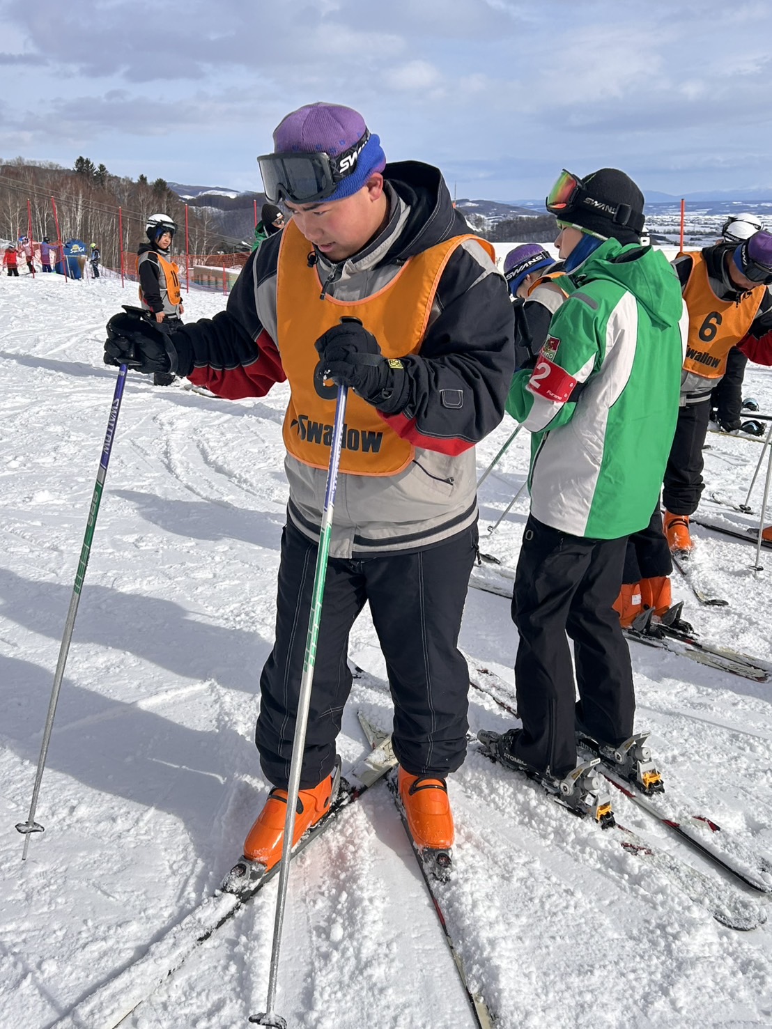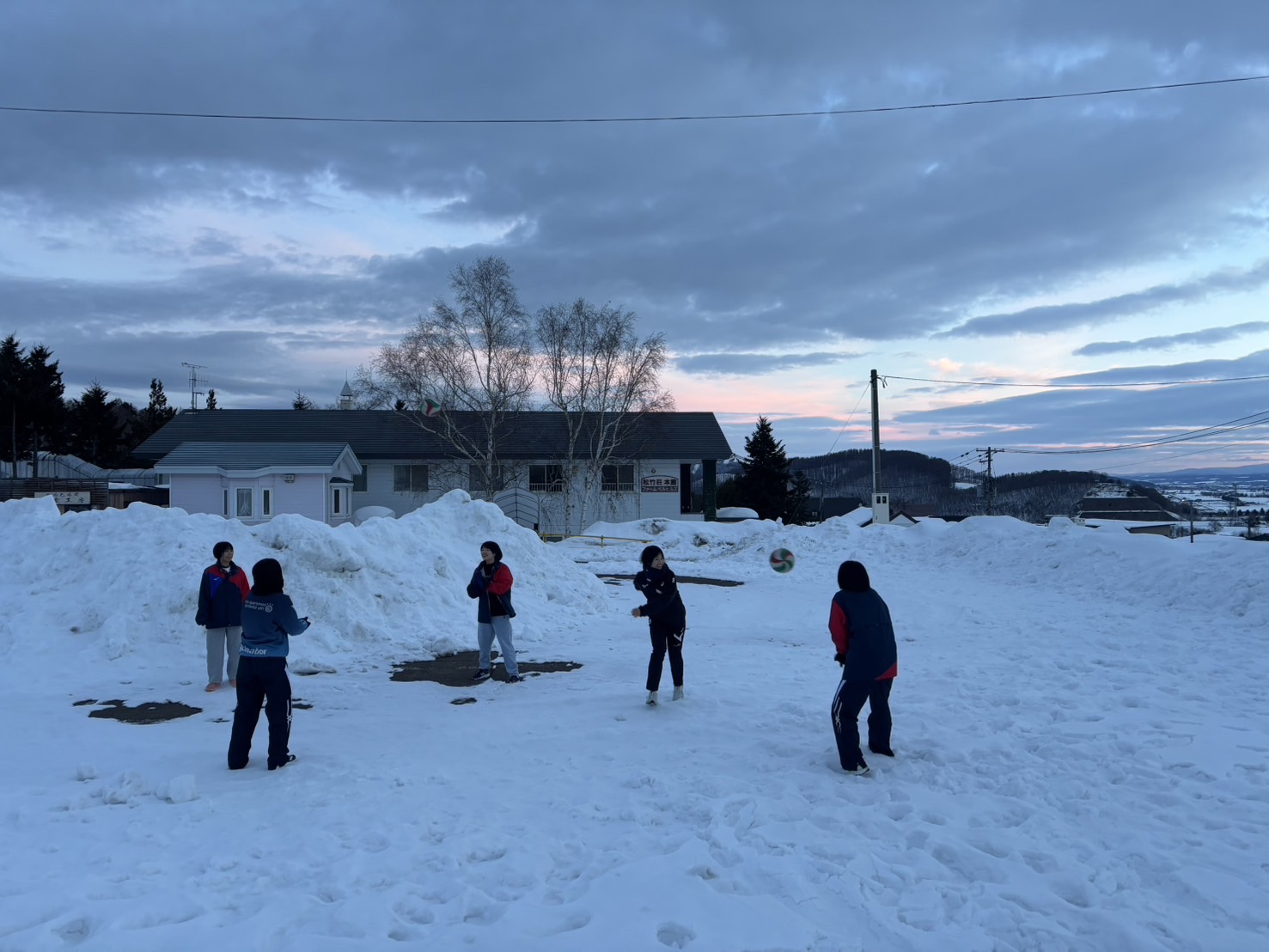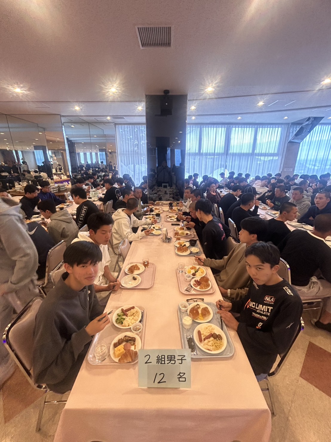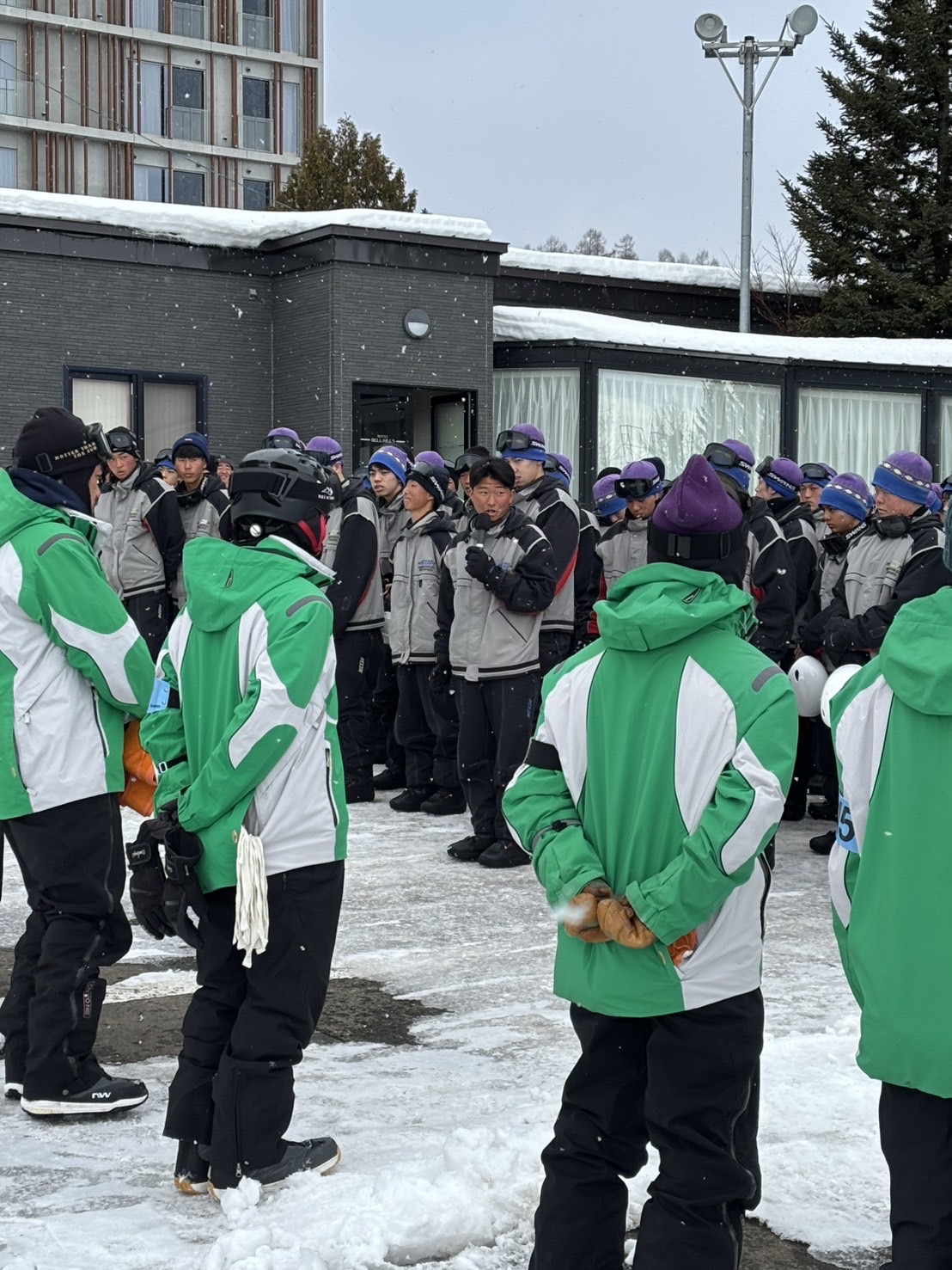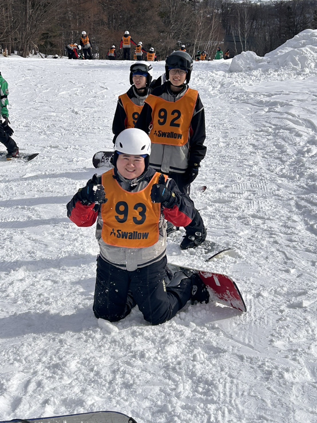 2月18日(水)修学旅行2日目。アスリートの朝は早い。走り込みや必勝祈願をして、朝ご飯。腹ごしらえをしたら、研修組は早速ゲレンデへ。スノーボードとスキーに分かれて特訓です。コツを掴むのが早いようで、ほとんどの生徒が初心者でしたが、とても楽しそうに滑っています。お昼ご飯はカレーでした。