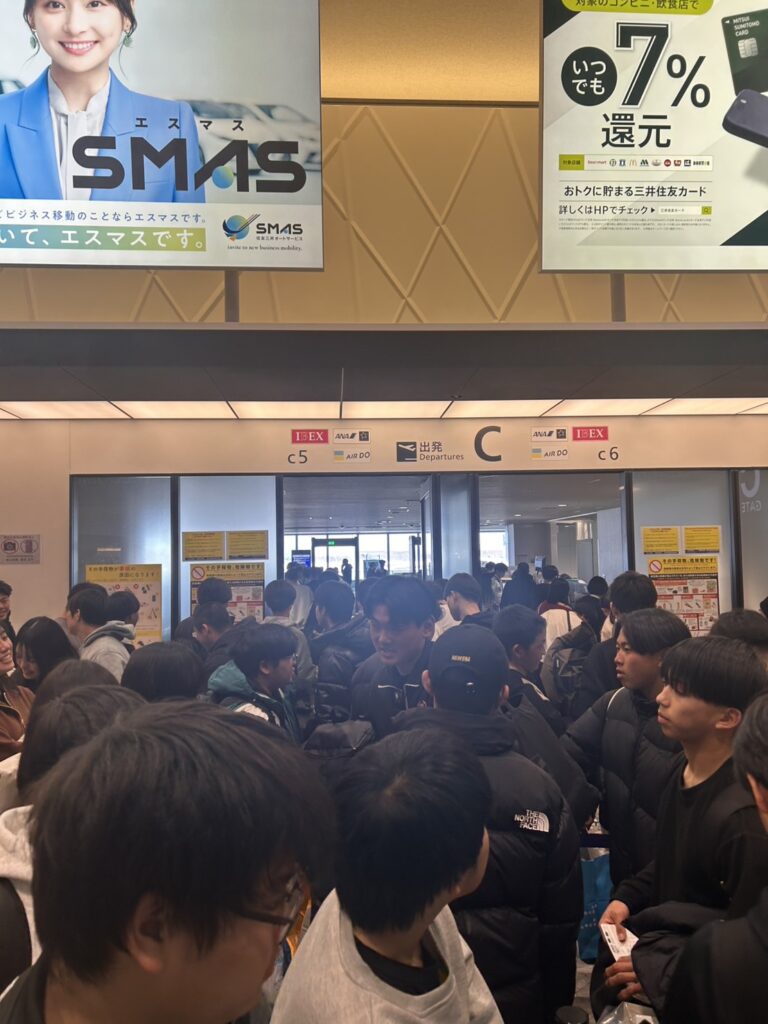 空港ではかなりの待ち時間があるので、しっかり物色してお土産を買いました。福岡空港に着いたのは夕方。学園まではバスで移動しました。お土産袋を大量に持っているので、移動も車中も大変でしたが全員無事に帰校しました。どっと疲れが出るところですが、学年末試験を控えているので、気持ちを切り替えて試験勉強をしよう