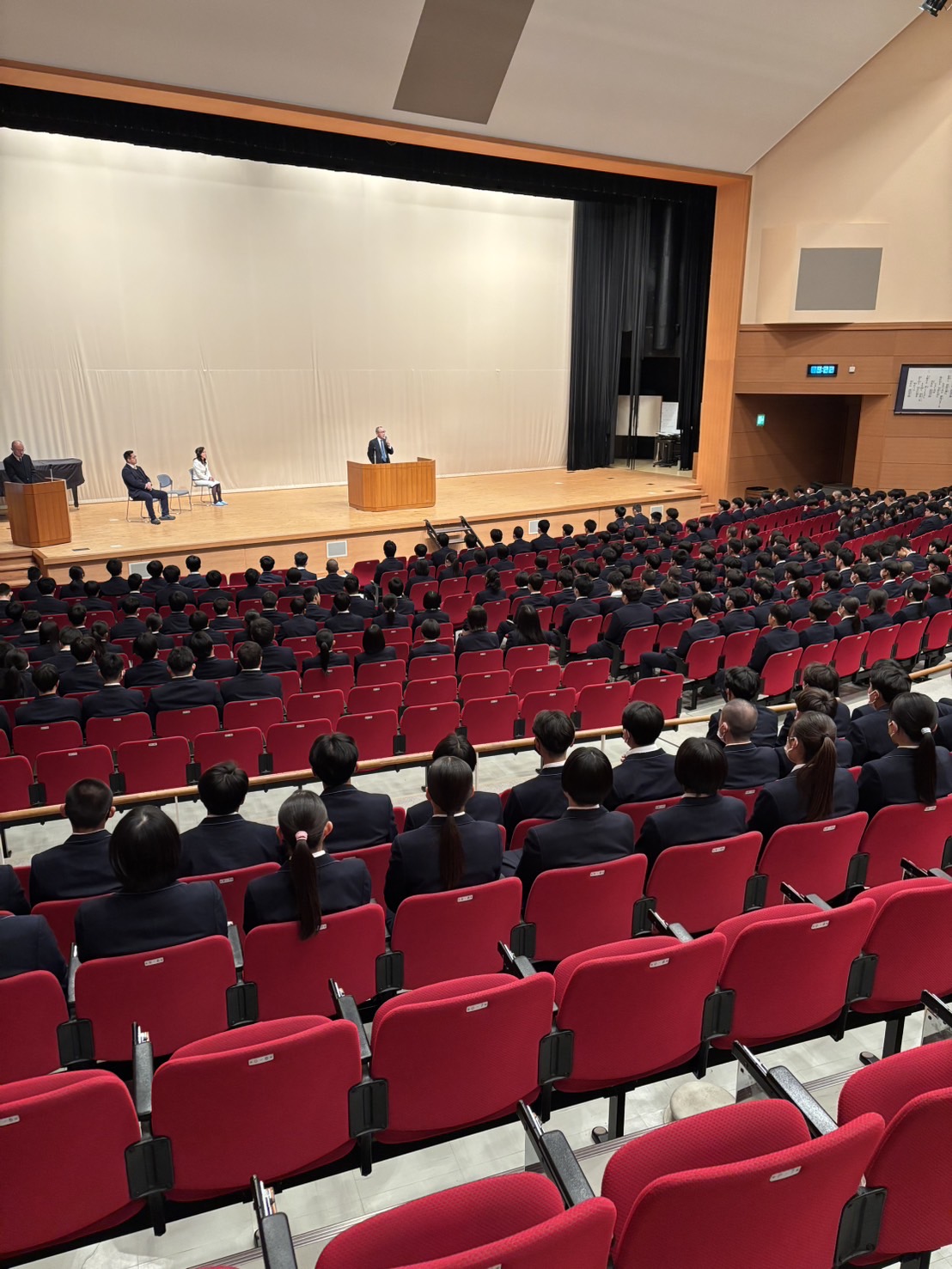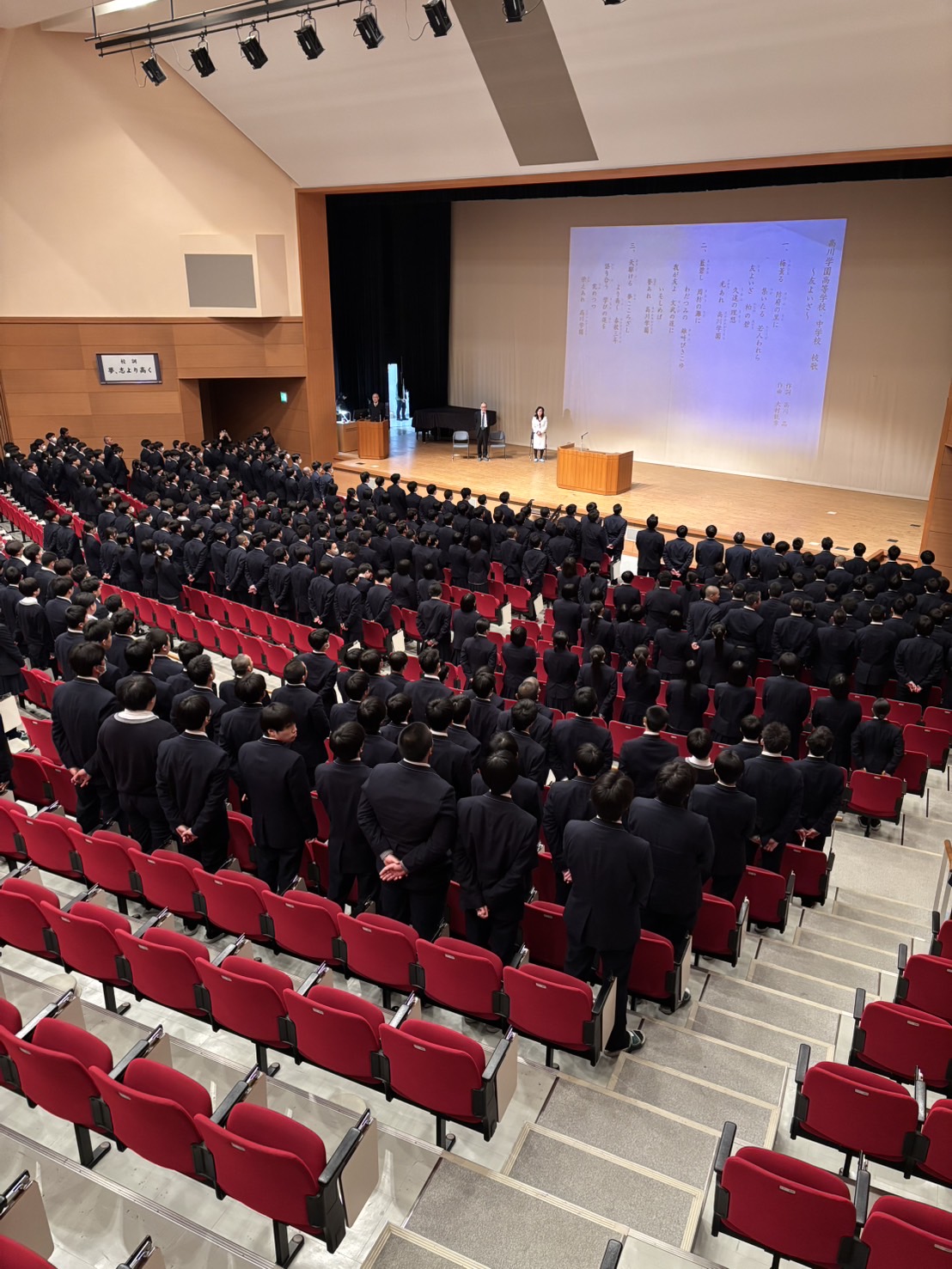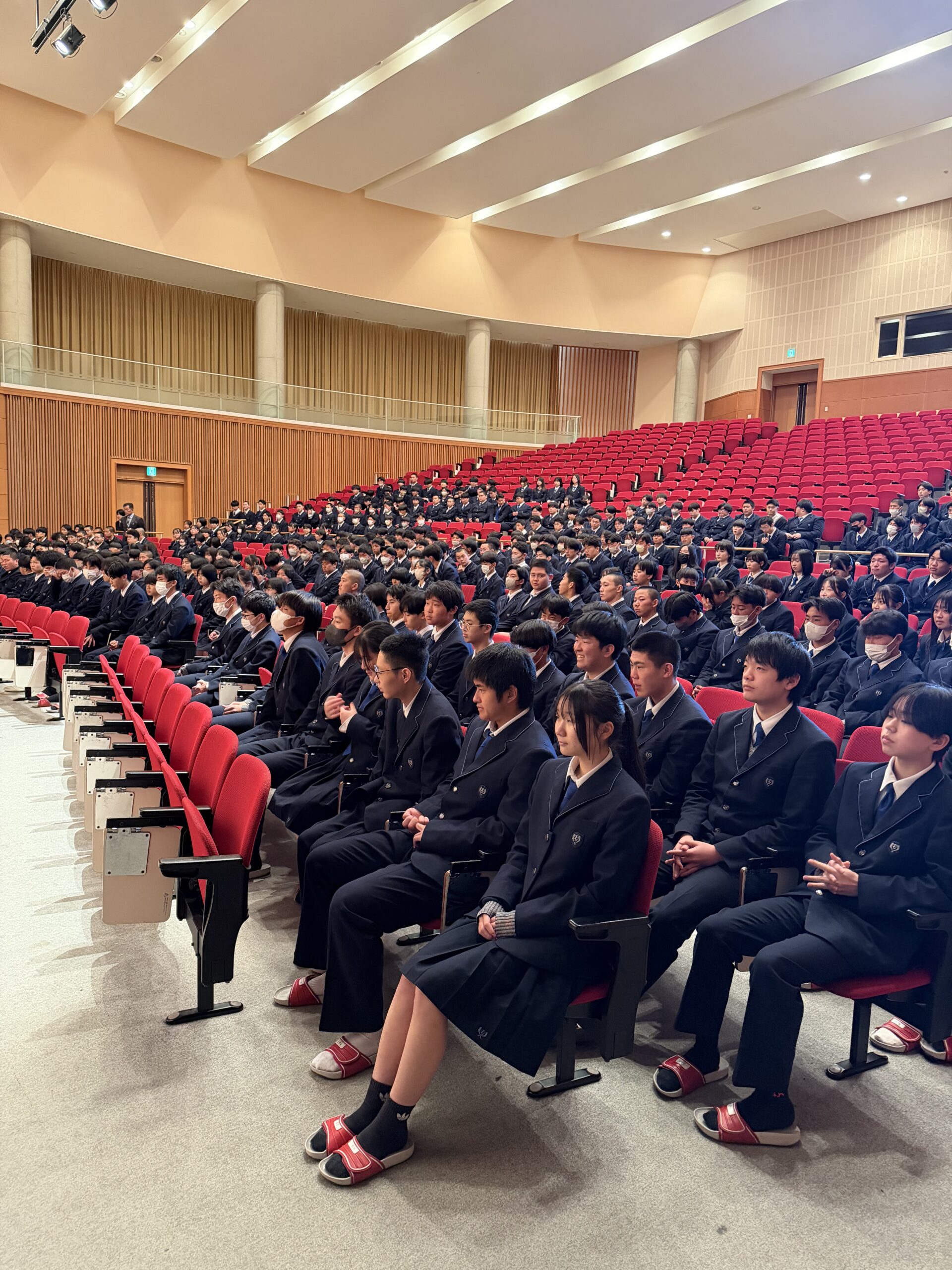 今、センバツの開会式をやっています。高川学園の行進を動画配信で観たところです。この後、献血の表彰があると聞いています。伝統が引き継がれているのは、素晴らしいことですね。今年度最後の行事ですが、講堂内の人数が少ないので寂しいですね。この1年を振り返ってどうですか。きっと勉強に運動に頑張ってきたと思います。うまくいくこともいかないこともあったと思いますが、確実に成長していると思います。